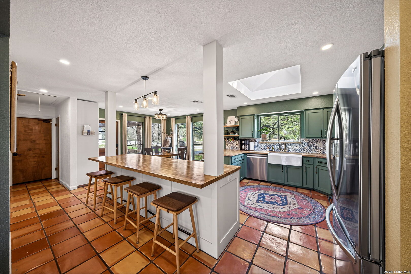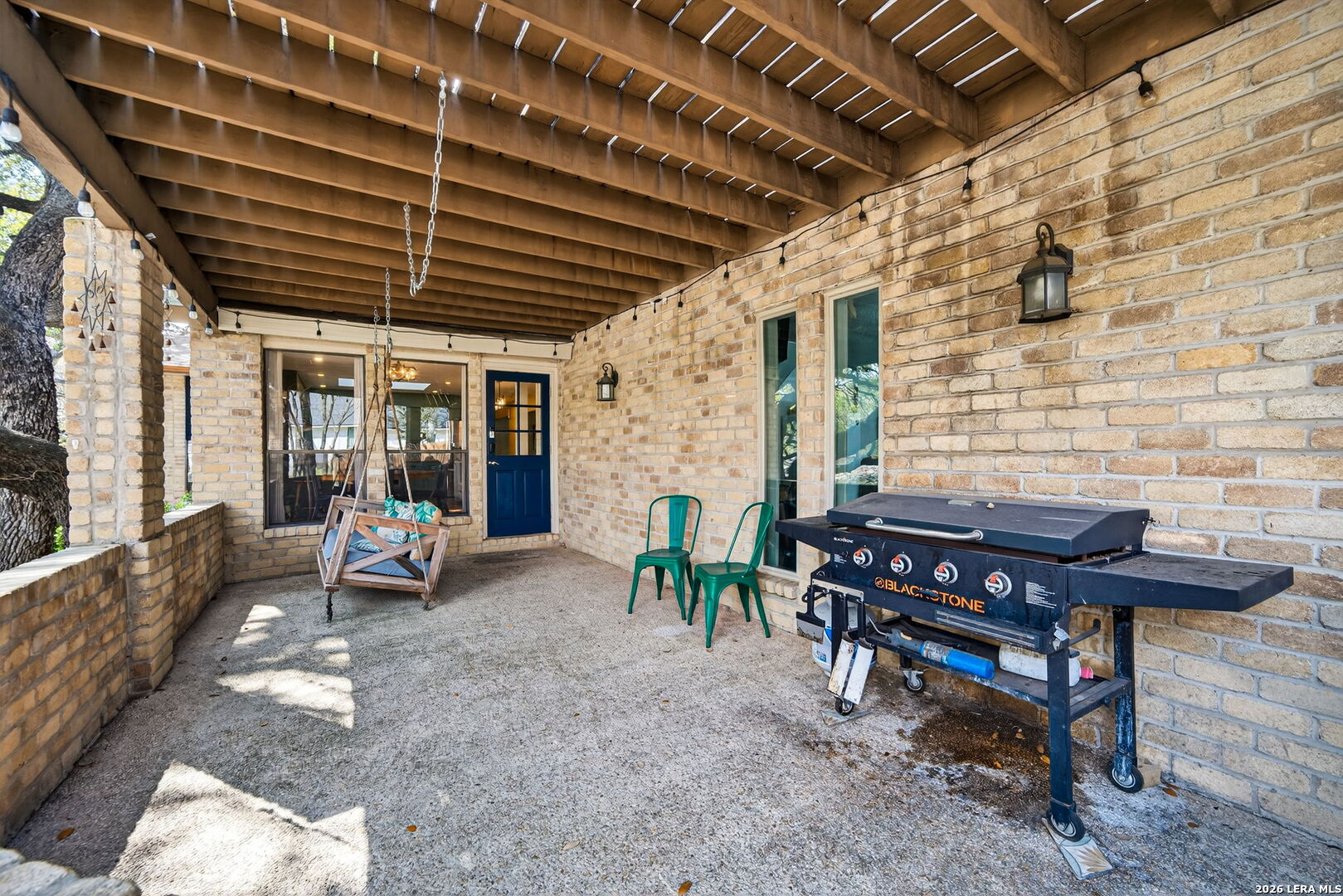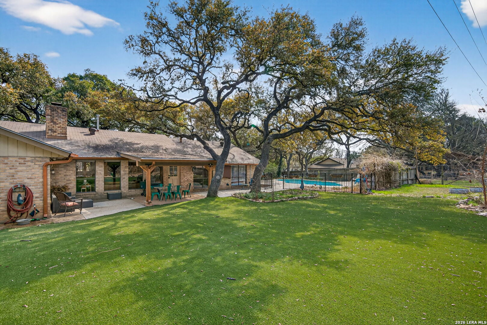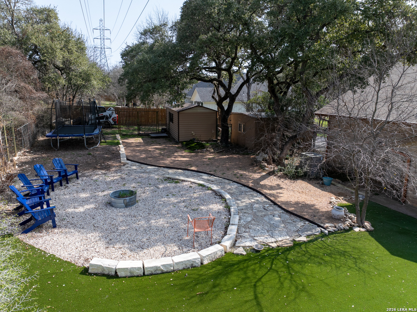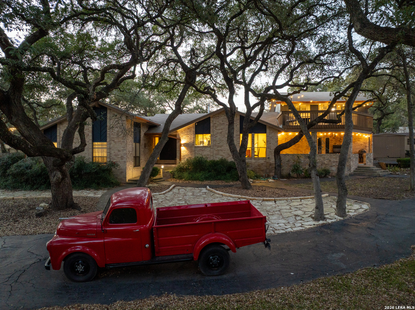 From the moment you step inside, you'll notice this is anything but a "vanilla" home. Unique architectural touches, artistic details, and cozy character are woven throughout, creating a space that inspires and feels instantly welcoming. This warm and inviting 4-bedroom residence offers a thoughtfully designed layout perfect for multigenerational living, including a private, separate bedroom space ideal for extended family, guests, or a home office. At the heart of the home is a beautifully updated kitchen where everyone will want to gather. Featuring a handcrafted butcher block counter and an expansive five-person island, this space is perfect for entertaining, cooking, and everyday living. The primary suite boasts a stylishly updated bathroom, while the additional two full bathrooms retain their vintage charm with cool, distinctive finishes. Upstairs, a spacious half-story bonus room provides the ultimate flex space-perfect as a playroom, studio, or media room. Step outside to your private backyard oasis. Enjoy a fully fenced pool, a cozy fire pit for evening gatherings, and multiple outbuildings including sheds and a greenhouse-ideal for gardening enthusiasts or easily convertible into a chicken coop. The fully turfed yard ensures low maintenance and year-round beauty. Nestled on a beautifully heavily treed lot, the property offers incredible natural shade and a serene, established feel. A circular drive adds both convenience and curb appeal, making arrivals and departures effortless. Located in a charming, established neighborhood this home sits right in the heart of community life-just down the street from Paul Davis Park. Enjoy front-row access to beloved local traditions, including high school pep rallies and the city's Fourth of July parade route. Experience true small-town charm while being just moments away from the vibrant energy, dining, and amenities of San Antonio.