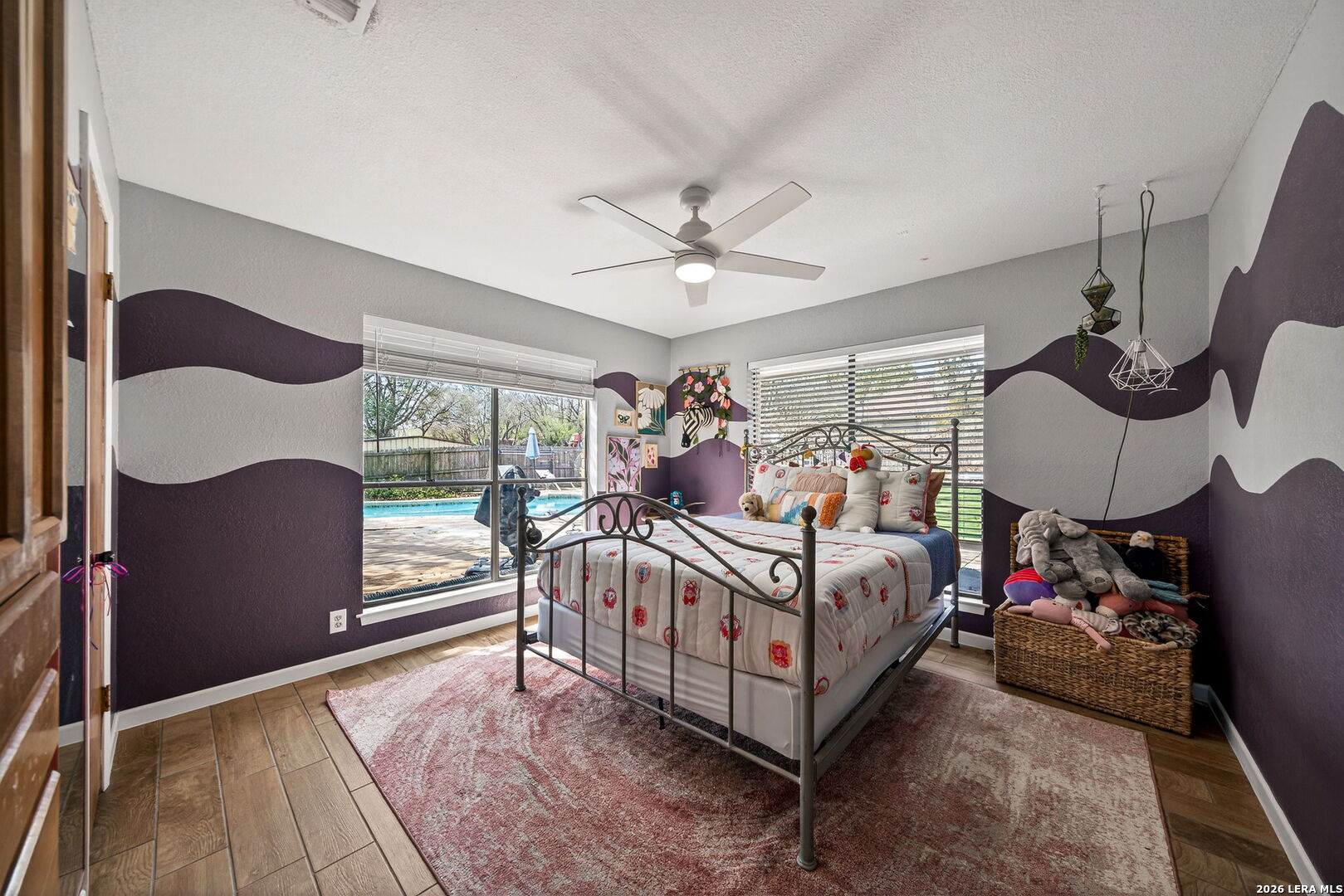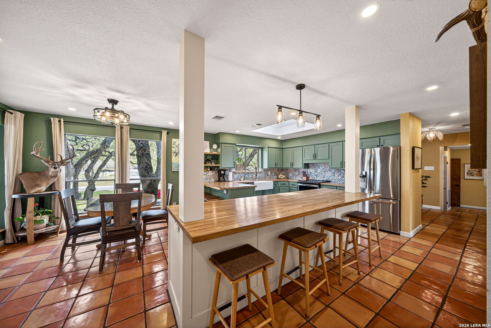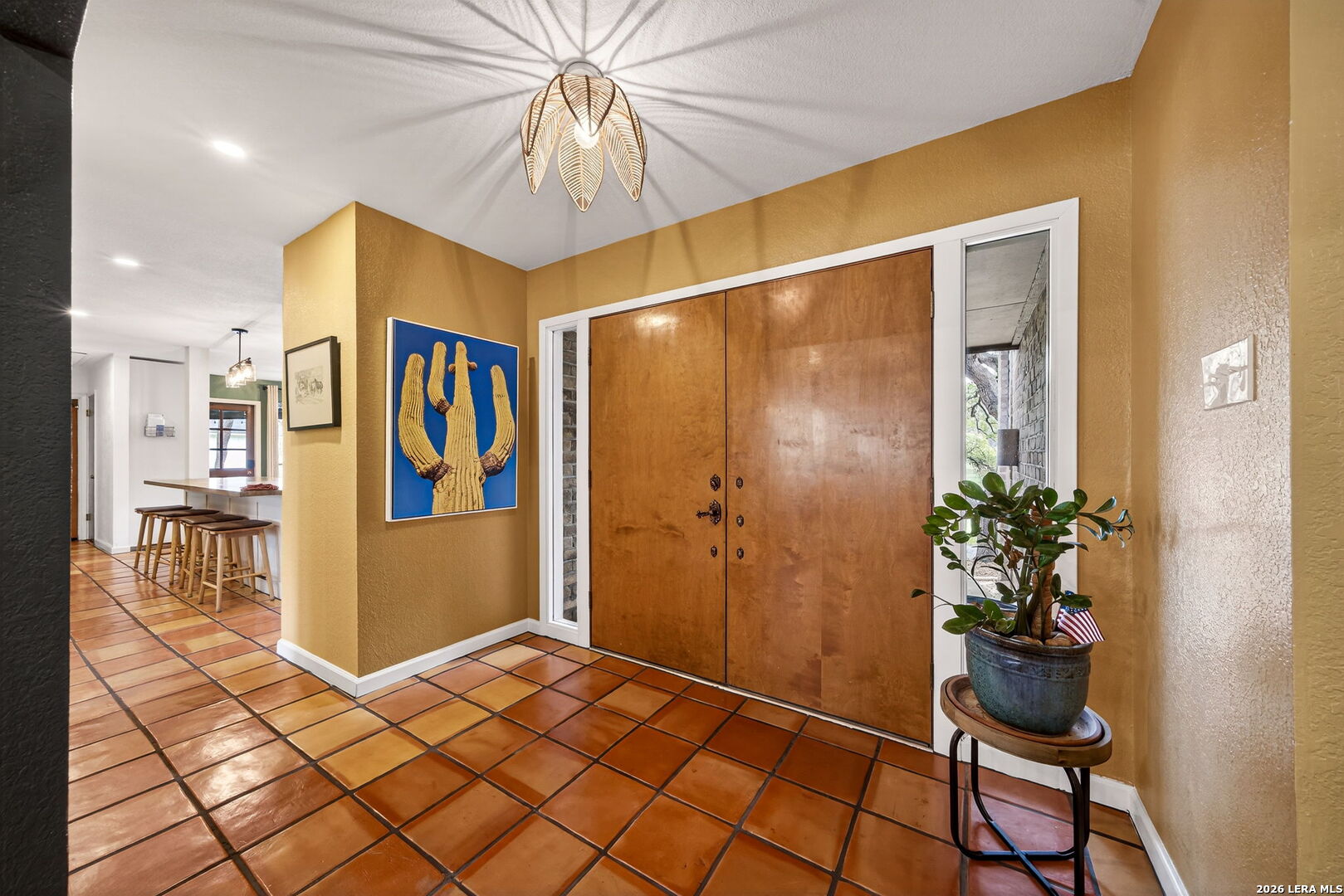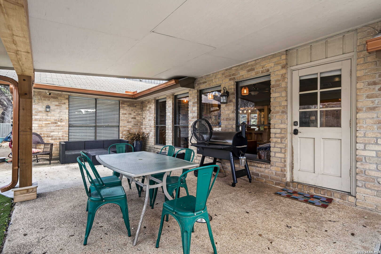 From the moment you step inside, you'll notice this is anything but a "vanilla" home. Unique architectural touches, artistic details, and cozy character are woven throughout, creating a space that inspires and feels instantly welcoming. This warm and inviting 4-bedroom residence offers a thoughtfully designed layout perfect for multigenerational living, including a private, separate bedroom space ideal for extended family, guests, or a home office. At the heart of the home is a beautifully updated kitchen where everyone will want to gather. Featuring a handcrafted butcher block counter and an expansive five-person island, this space is perfect for entertaining, cooking, and everyday living. The primary suite boasts a stylishly updated bathroom, while the additional two full bathrooms retain their vintage charm with cool, distinctive finishes. Upstairs, a spacious half-story bonus room provides the ultimate flex space-perfect as a playroom, studio, or media room. Step outside to your private backyard oasis. Enjoy a fully fenced pool, a cozy fire pit for evening gatherings, and multiple outbuildings including sheds and a greenhouse-ideal for gardening enthusiasts or easily convertible into a chicken coop. The fully turfed yard ensures low maintenance and year-round beauty. Nestled on a beautifully heavily treed lot, the property offers incredible natural shade and a serene, established feel. A circular drive adds both convenience and curb appeal, making arrivals and departures effortless. Located in a charming, established neighborhood this home sits right in the heart of community life-just down the street from Paul Davis Park. Enjoy front-row access to beloved local traditions, including high school pep rallies and the city's Fourth of July parade route. Experience true small-town charm while being just moments away from the vibrant energy, dining, and amenities of San Antonio.