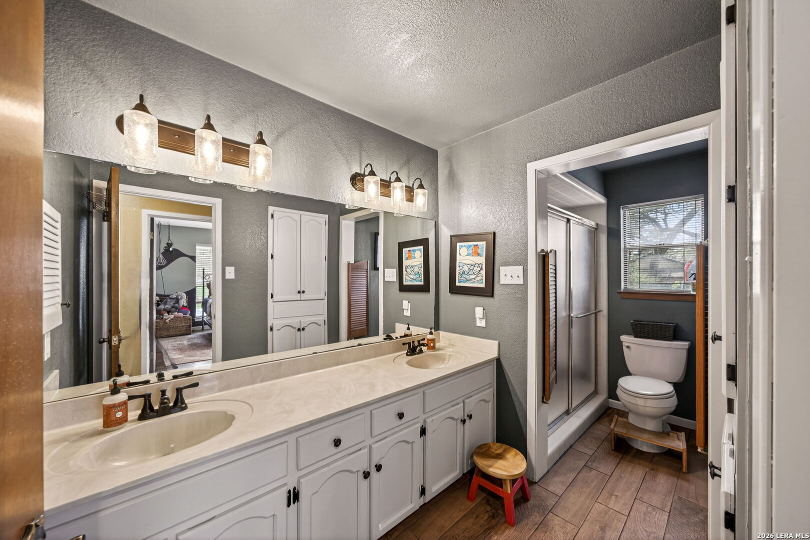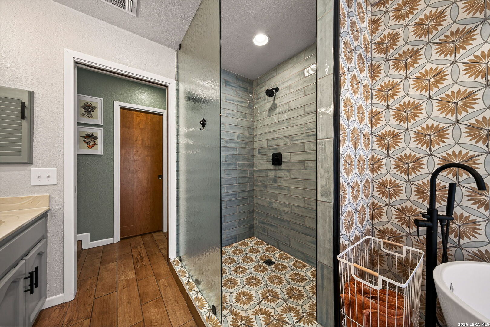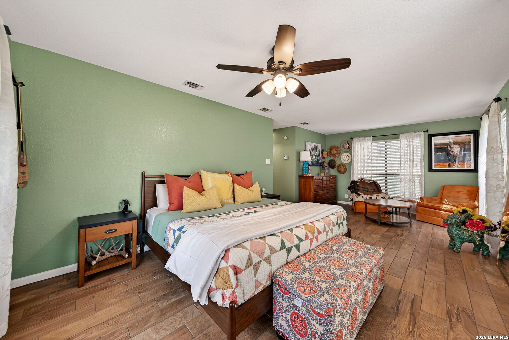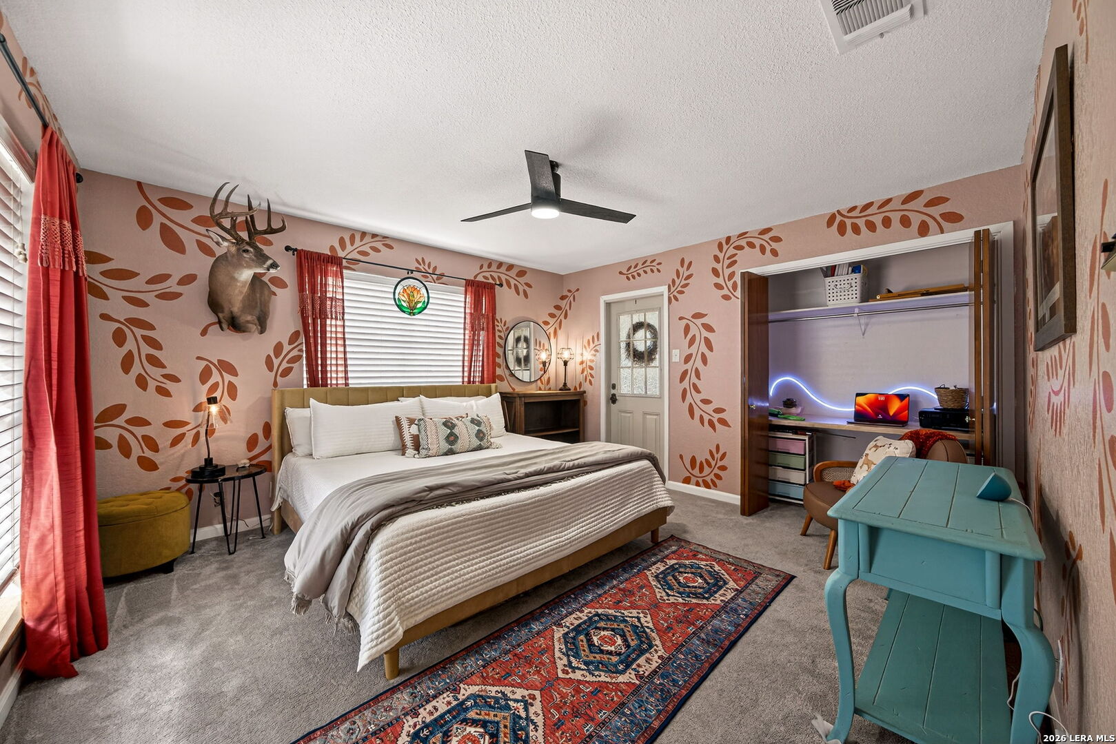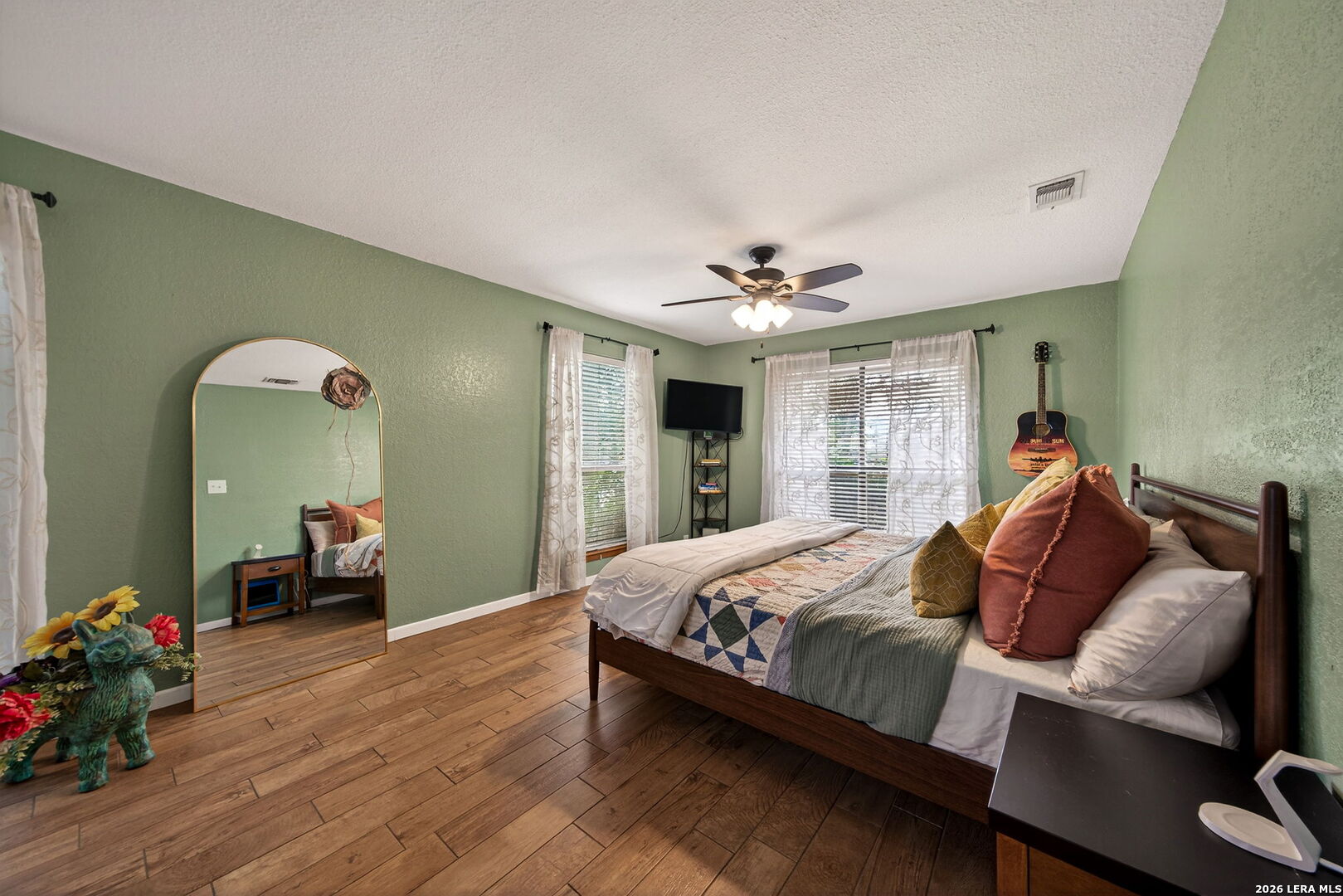From the moment you step inside, you'll notice this is anything but a "vanilla" home. Unique architectural touches, artistic details, and cozy character are woven throughout, creating a space that inspires and feels instantly welcoming. This warm and inviting 4-bedroom residence offers a thoughtfully designed layout perfect for multigenerational living, including a private, separate bedroom space ideal for extended family, guests, or a home office. At the heart of the home is a beautifully updated kitchen where everyone will want to gather. Featuring a handcrafted butcher block counter and an expansive five-person island, this space is perfect for entertaining, cooking, and everyday living. The primary suite boasts a stylishly updated bathroom, while the additional two full bathrooms retain their vintage charm with cool, distinctive finishes. Upstairs, a spacious half-story bonus room provides the ultimate flex space-perfect as a playroom, studio, or media room. Step outside to your private backyard oasis. Enjoy a fully fenced pool, a cozy fire pit for evening gatherings, and multiple outbuildings including sheds and a greenhouse-ideal for gardening enthusiasts or easily convertible into a chicken coop. The fully turfed yard ensures low maintenance and year-round beauty. Nestled on a beautifully heavily treed lot, the property offers incredible natural shade and a serene, established feel. A circular drive adds both convenience and curb appeal, making arrivals and departures effortless. Located in a charming, established neighborhood this home sits right in the heart of community life-just down the street from Paul Davis Park. Enjoy front-row access to beloved local traditions, including high school pep rallies and the city's Fourth of July parade route. Experience true small-town charm while being just moments away from the vibrant energy, dining, and amenities of San Antonio.