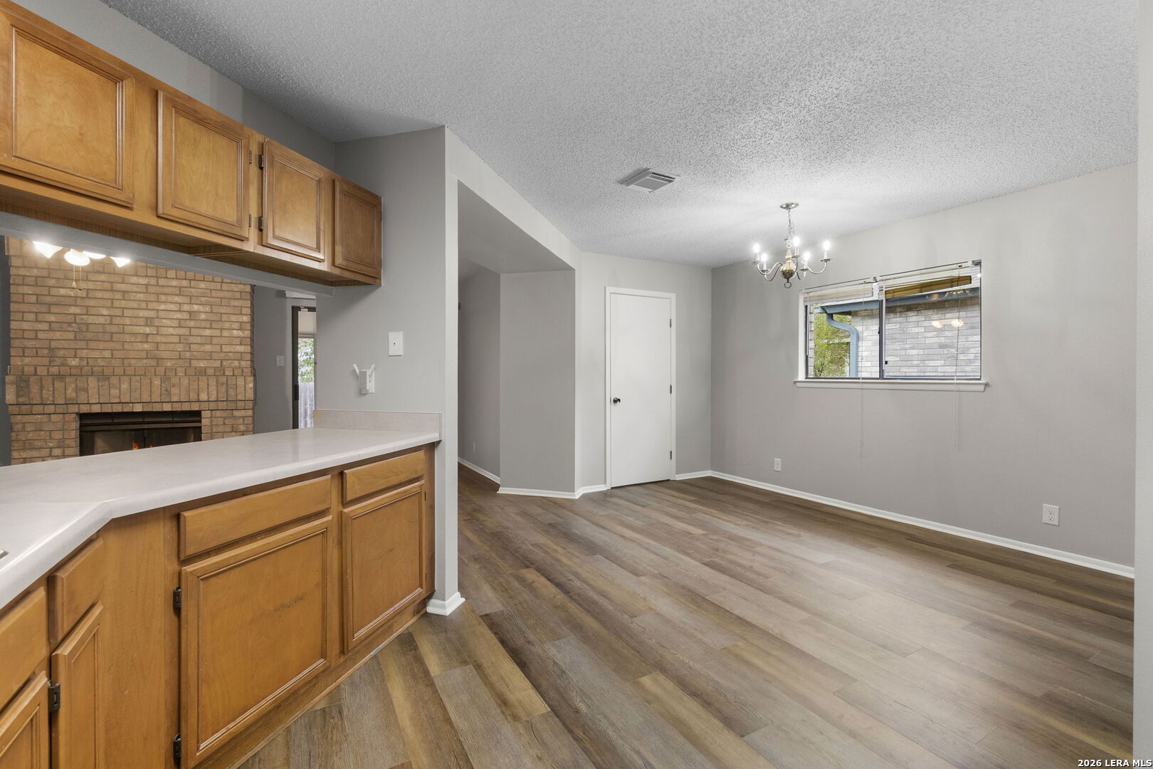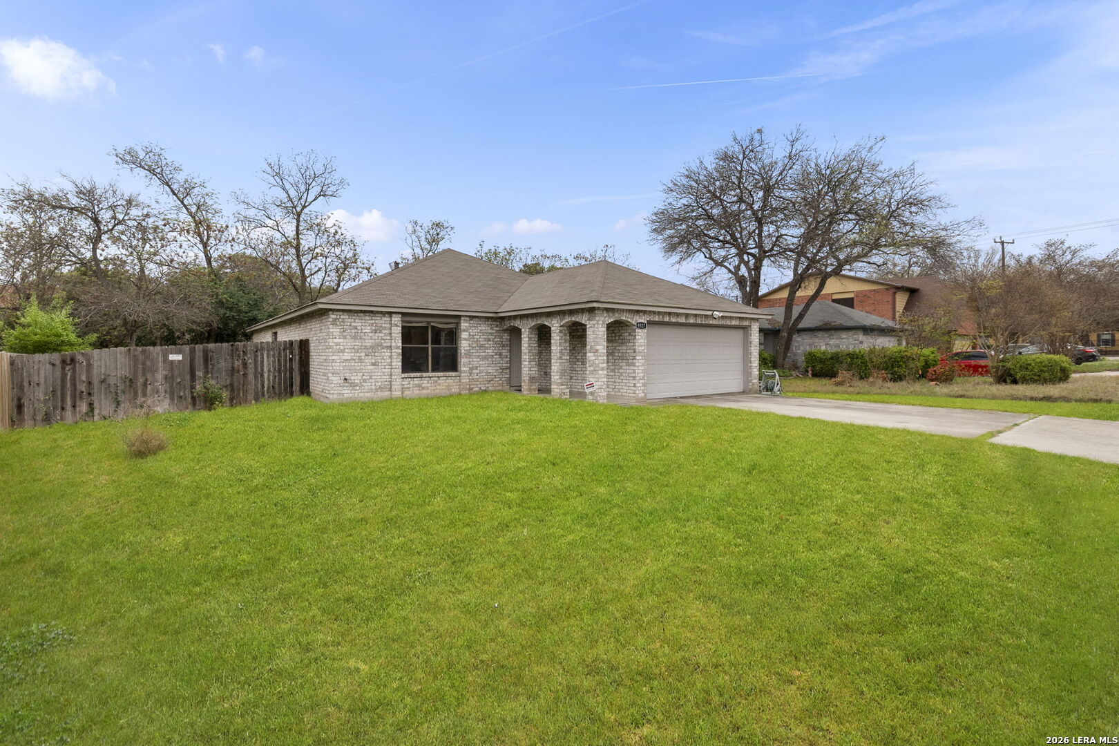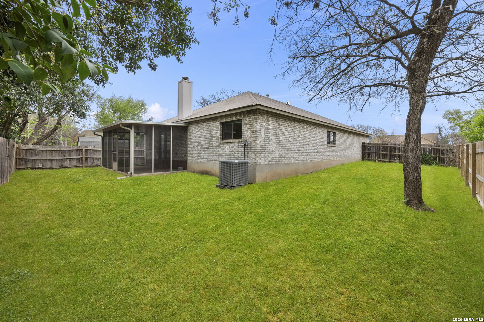 Welcome home to this charming single-story brick residence with 3 bedrooms and 2 full baths offering comfort, style, and convenience in one inviting package. The front door opens to a versatile living room and dining room combination-perfect for both everyday living and entertaining guests. The kitchen overlooks a spacious family room highlighted by a cozy wood-burning brick fireplace that creates a warm and welcoming atmosphere. The primary suite includes a large walk-in closet and a thoughtfully designed en suite bath with an oversized roll-in shower and double vanity, providing both accessibility and functionality. Step outside to enjoy the screened-in porch overlooking the backyard-an ideal space for relaxing mornings or peaceful evenings without the Texas bugs. Recent updates include fresh interior paint and recently installed wood-look flooring throughout, giving the home a clean, modern feel with easy maintenance. Conveniently located with quick access to Loop 1604, this home places you just minutes from shopping, dining, and nearby parks, making daily errands and weekend outings a breeze.