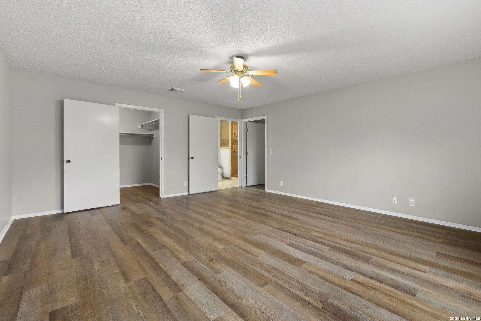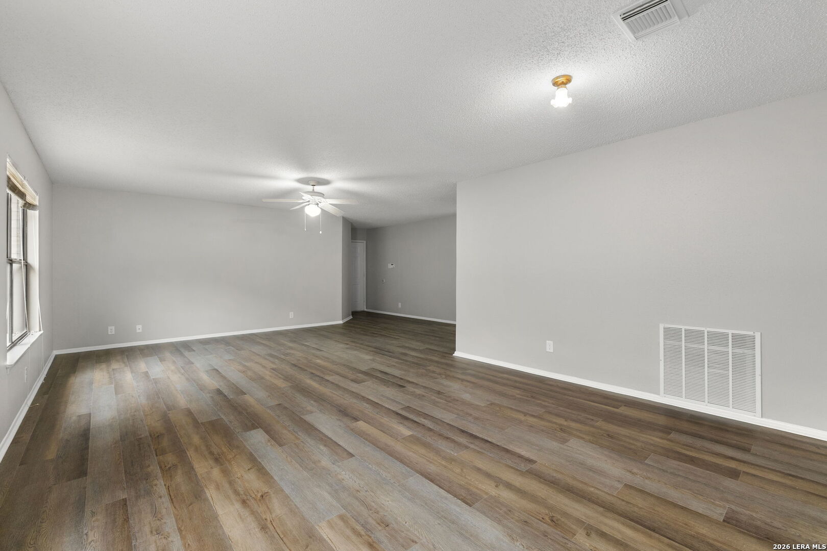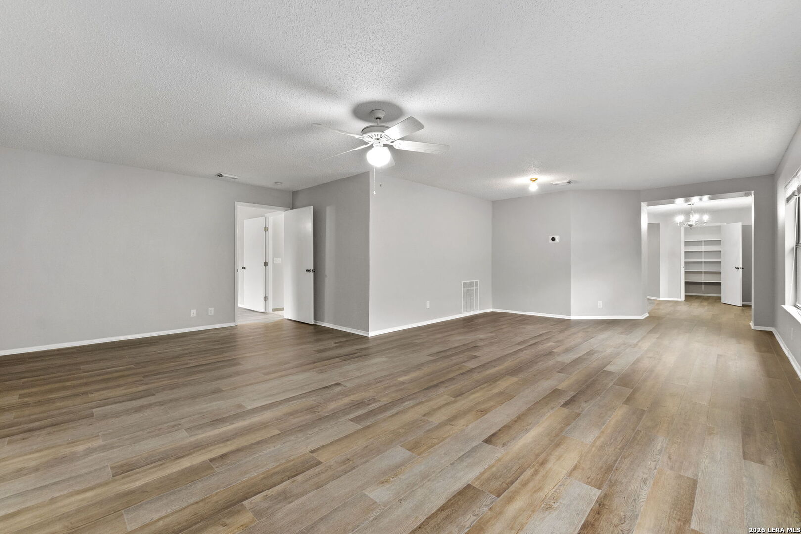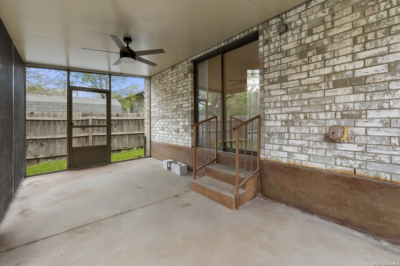 Welcome home to this charming single-story brick residence with 3 bedrooms and 2 full baths offering comfort, style, and convenience in one inviting package. The front door opens to a versatile living room and dining room combination-perfect for both everyday living and entertaining guests. The kitchen overlooks a spacious family room highlighted by a cozy wood-burning brick fireplace that creates a warm and welcoming atmosphere. The primary suite includes a large walk-in closet and a thoughtfully designed en suite bath with an oversized roll-in shower and double vanity, providing both accessibility and functionality. Step outside to enjoy the screened-in porch overlooking the backyard-an ideal space for relaxing mornings or peaceful evenings without the Texas bugs. Recent updates include fresh interior paint and recently installed wood-look flooring throughout, giving the home a clean, modern feel with easy maintenance. Conveniently located with quick access to Loop 1604, this home places you just minutes from shopping, dining, and nearby parks, making daily errands and weekend outings a breeze.