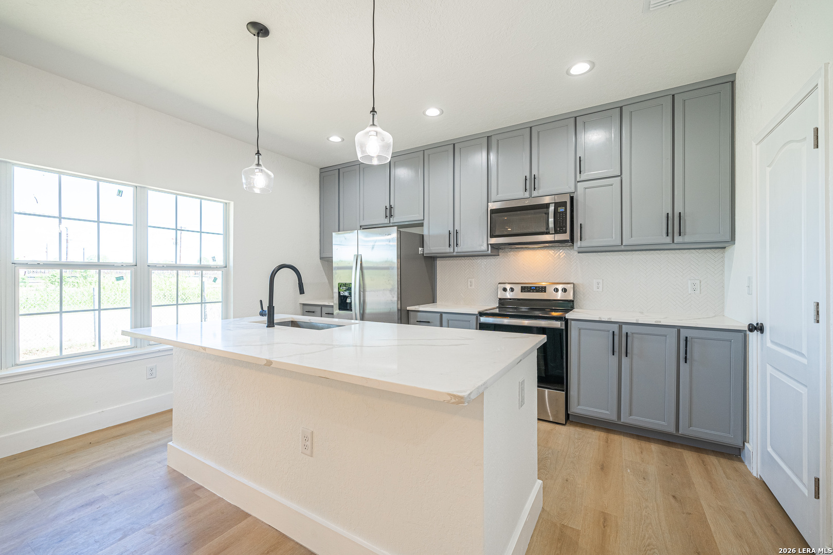 Come See This Modern and Urban living Inside Dignowity Hill. This splendid three-bedroom, two-bathroom home was rebuilt from the ground up with all new custom cabinetry, HVAC, water heater, roof, foundation, luxury vinyl flooring. The chef's kitchen features stunning quartz countertops, stainless steel appliances, and ample storage space with an oversized pantry. The master bathroom boasts a dual sink vanity with a raindrop shower head and a walk-in closet. Includes, dishwasher, stainless steel refrigerator and microwave. Minutes from BAMC, The Pearl, downtown San Antonio, Southtown, Tobin Hill, Alamo Dome, AT&T Center, St Paul Square.