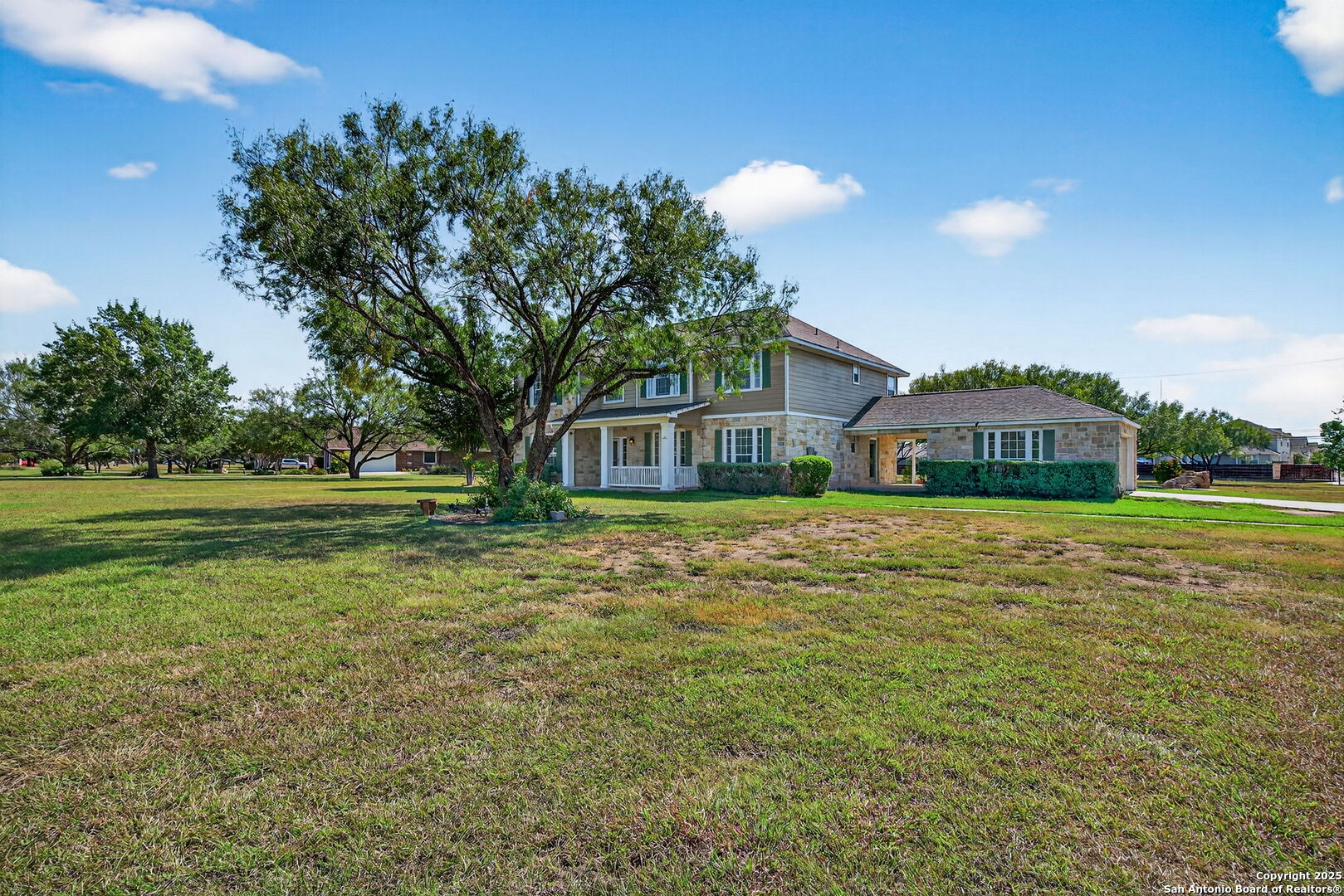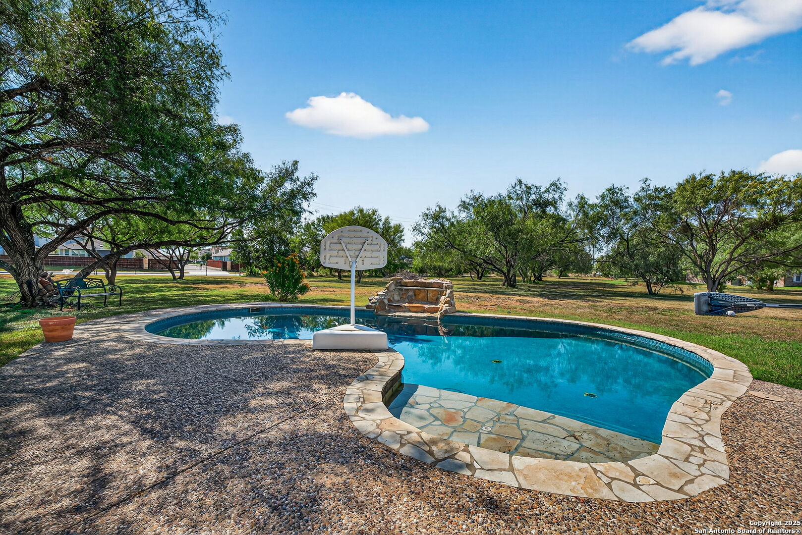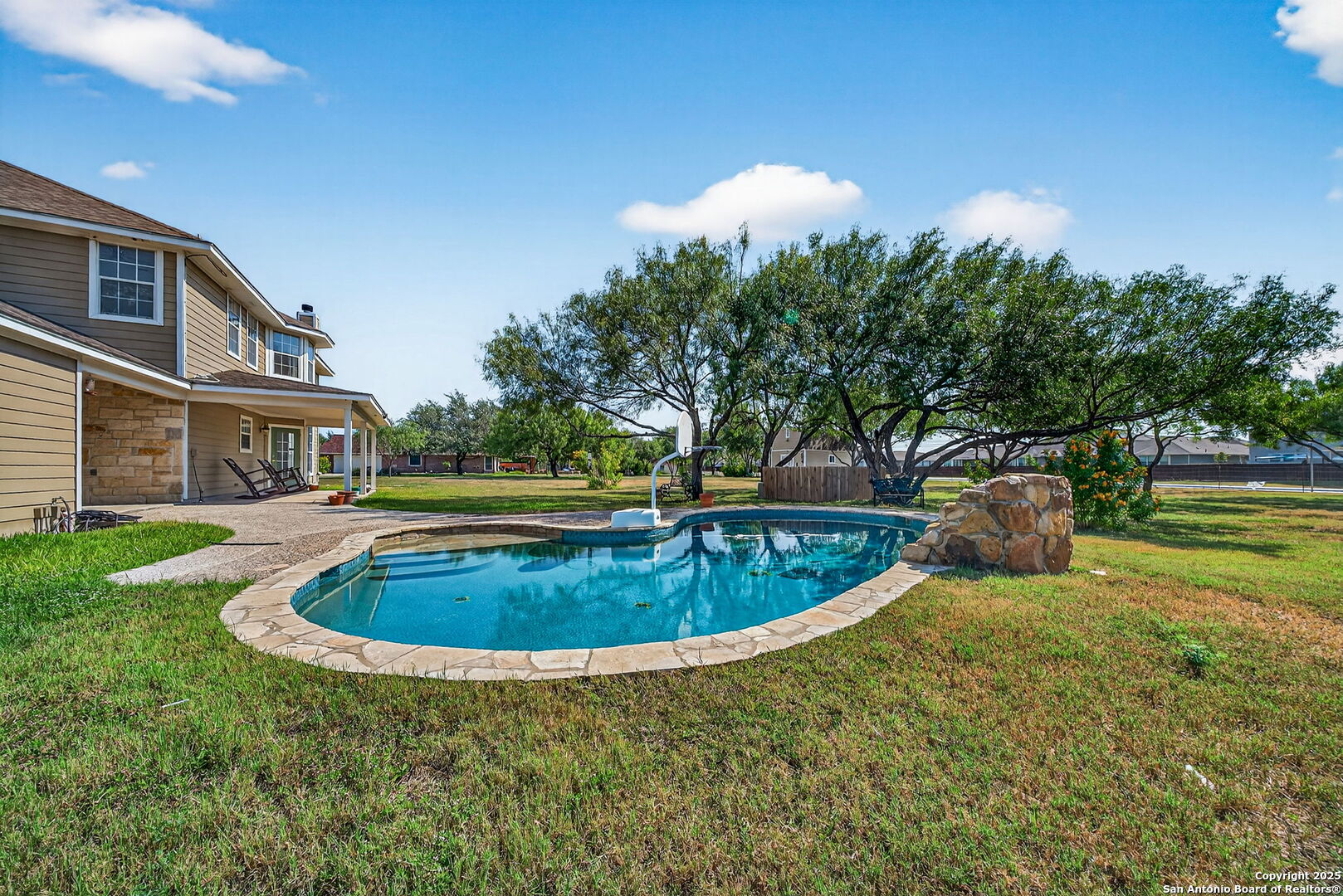 Discover your own retreat on 1.3 acres in a private, gated community-no city taxes! This home is designed for both relaxation and entertaining, offering flexible spaces and thoughtful details throughout.Inviting entry with ceramic tile, and warm wood laminate flooring in dining, office, and family room. Spacious kitchen with island, smooth cooktop, and plenty of prep space. Huge game room perfect for gatherings or movie nights. One bedroom downstairs for added convenience. Relax in the jetted soaking tub Dual sinks & dual walk-in closets. 2-car tandem garage with breezeway. Sparkling pool with fountain-your own private swimming hole. Large storage/workshop This home blends the peace of country living with the amenities you want-perfect for anyone seeking space, privacy, and a community feel.