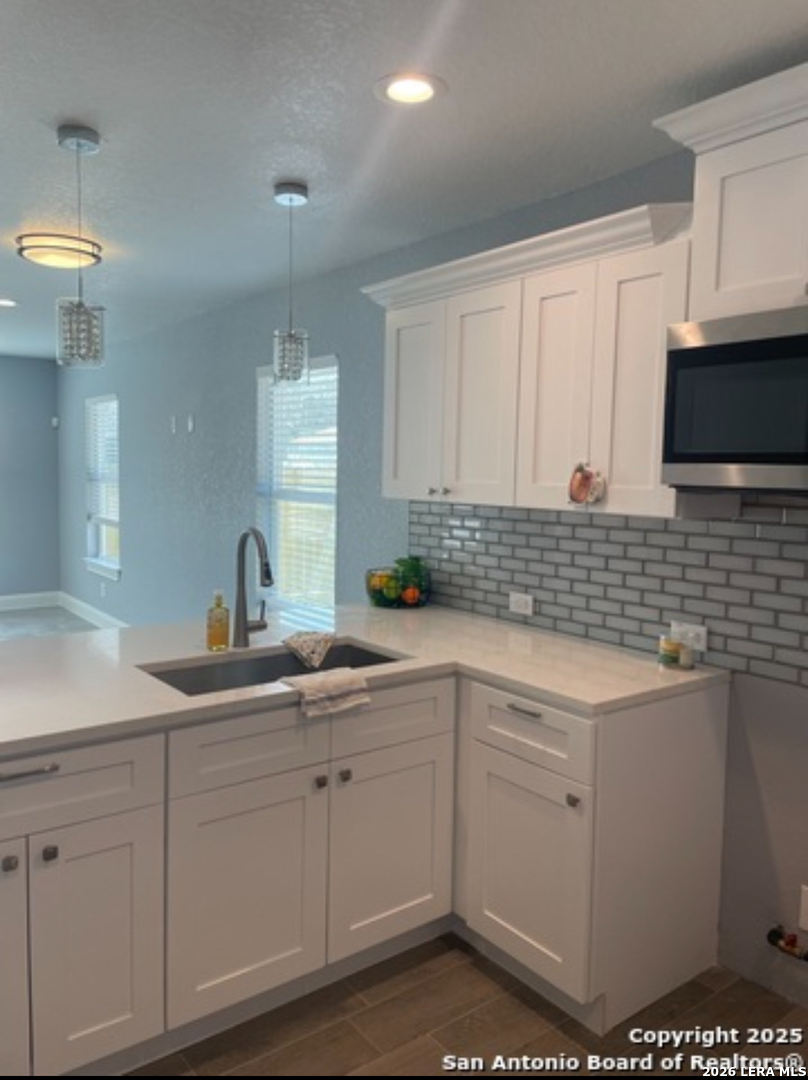 DISCOVER THIS BEAUTIFULLY RENOVATED MODERN OPEN FLOOR PLAN HOME WHICH FEATURES CUSTOM UPGRADES DESIGNED FOR BOTH FUNCTIONALITY AND STYLE. ENJOY HOSTING WITH YOUR BEAUTIFUL KITCHEN ISLAND WHICH OVERLOOKS THE LIVING ROOM AND DINING AREA CREATING THE ULTIMATE ENTERTAINING SPACE. HOME FEATURES GRANITE COUNTER TOPS, SHAKER STYLE CABINETS, GRANITE VANITY, PORCELAIN TILED BATH WALLS. NEUTRAL PAINTING ALLOWING YOU TO ADD YOUR PERSONAL DECORATIONS, AND RECESSED LIGHTING THROUGHOUT THE HOME ENHANCES A BRIGHT AIRY FEEL. PARKING WILL NEVER BE AN ISSUE WITH 2 DRIVEWAYS PLUS A 3-CAR DETATCHED GARAGE, PRIVACY FENCE AND CRUSHED GRANITE LANDSCAPING MAKING THIS A MOVE-IN-READY HOME. CENTRALLY LOCATED ALLOWING FOR EFFORTLESS COMMUTING AND EXPLORING ALL THAT SAN ANTONIO HAS TO OFFER, WALKING DISTANCE TO FROST BANK/FREEMAN COLISEUM PERFECT FOR THE RODEO AND ALL CONCERT EVENTS. (Buyer to verify measurements and schools)