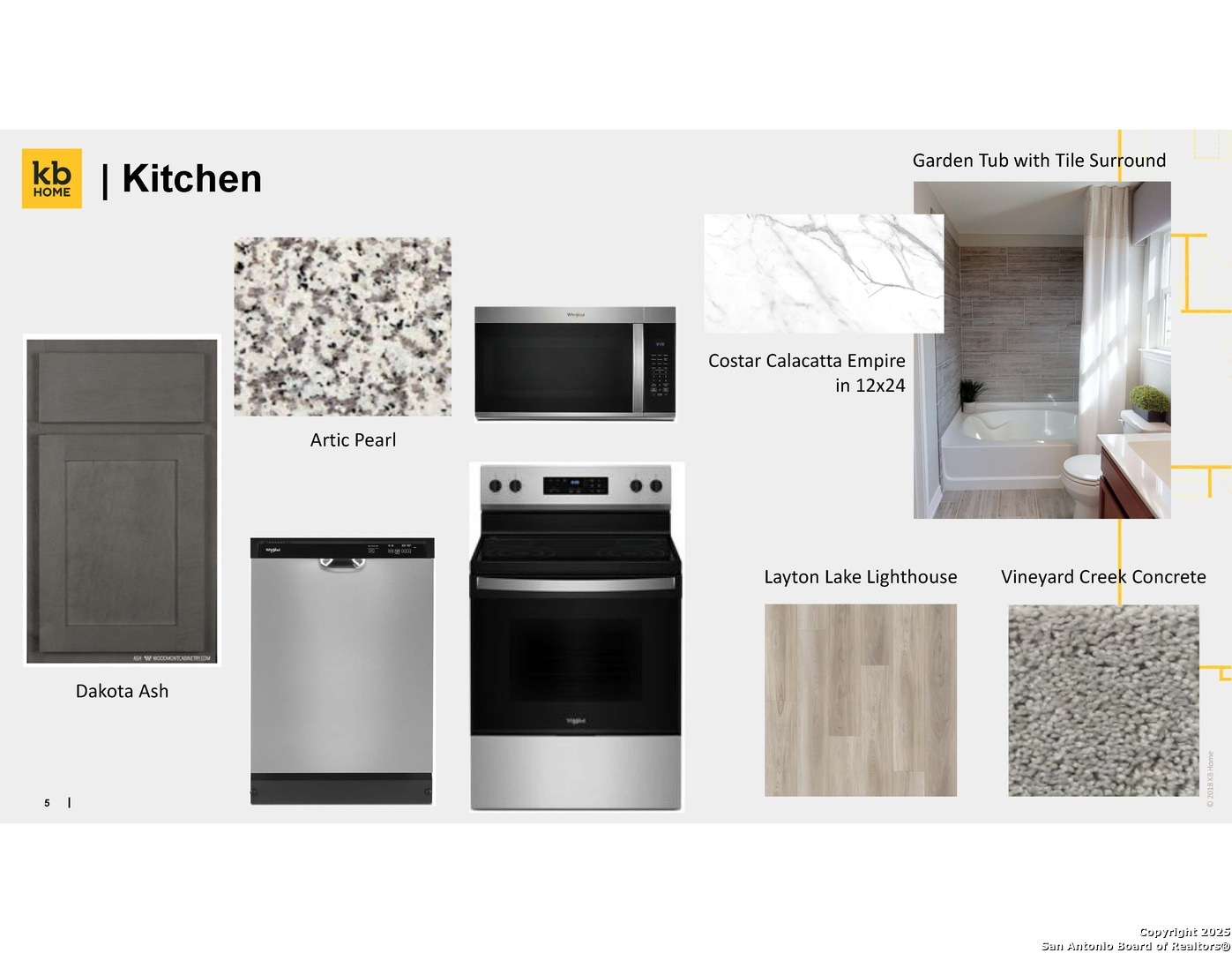Step into comfort and style with 9-ft. first-floor ceilings and vinyl plank flooring throughout the kitchen, great room, and bathrooms. The kitchen offers Whirlpool stainless steel appliances, Woodmont Dakota Shaker panel 42-in. upper cabinets, granite countertops in Arctic Pearl, and an extended breakfast bar perfect for casual meals. Unwind in the primary bath featuring a 42-in. garden tub/shower with Daltile tile surround and upgraded cabinets. Additional highlights include a Carrara-style entry door, Kwikset Polo knob interior hardware, and a wireless security system. Outside, enjoy a fully sodded yard with an automatic sprinkler system.