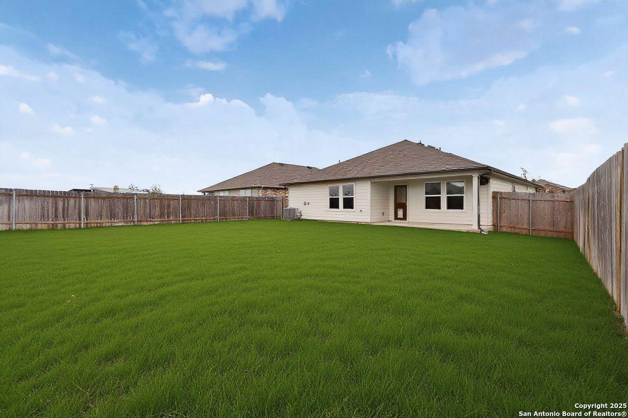 Beautiful move in ready single story 1,612 sq ft home offering 4 bedrooms and 2 baths and a great size backyard. This home features a foyer leading into the kitchen. The open kitchen overlooks the living and dining area and features spacious granite countertop and stainless steel appliances. Enjoy the primary bedroom is located off the family room, Featuring a huge walk in closet and large walk in shower. Backyard is set up for entertaining with nice sized yard and covered rear patio giving view to the professionally irrigated and landscaped yard. Walking distance to HOA amenities featuring pool and playground!