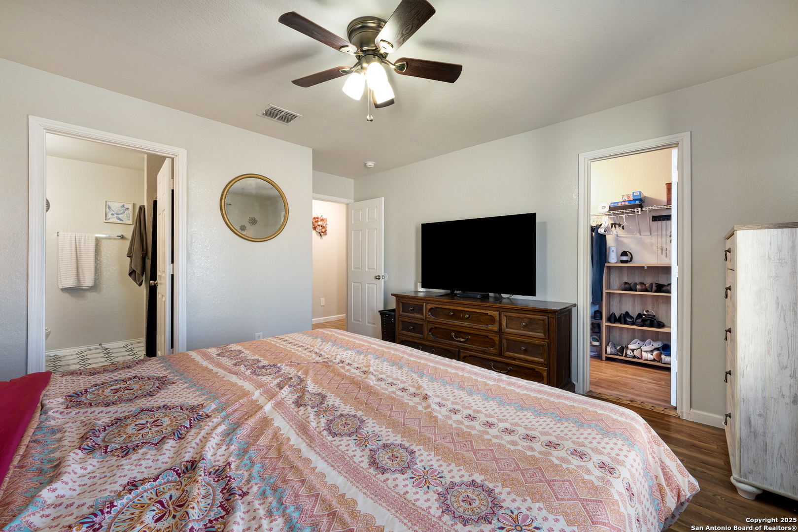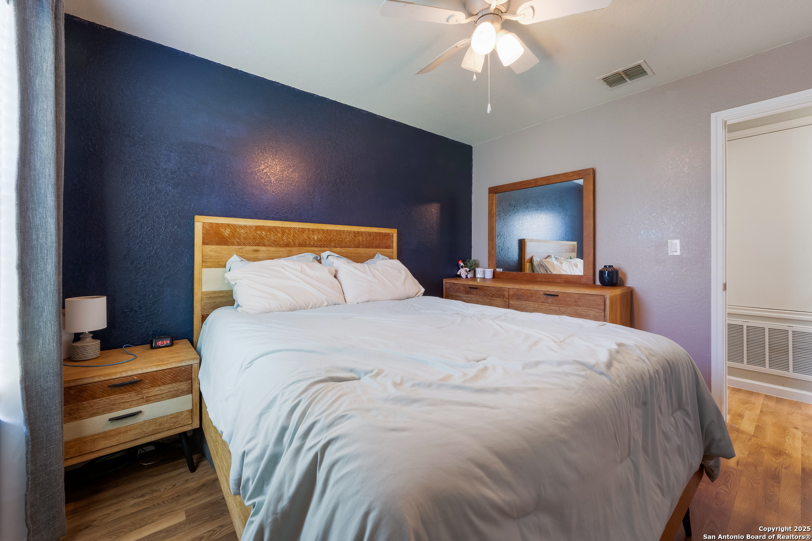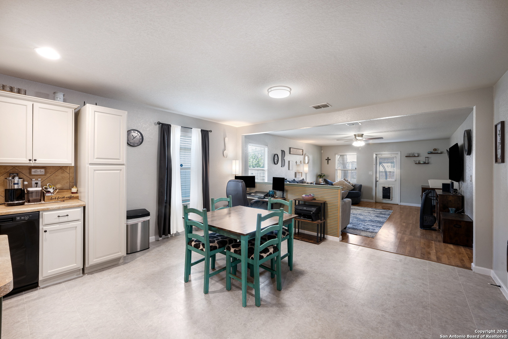 Pride of ownership truly shines in this well maintained, move-in-ready gem. Step inside and immediately notice the fresh interior paint throughout, giving the home a bright and inviting feel. The kitchen has been thoughtfully refreshed with newly painted cabinets, stylish updated flooring, and modern black stainless steel appliances, including a fridge, microwave, and stove (all just 3.5 years old) that convey with the sale. Recent upgrades continue in the bathrooms with updated flooring, updated light fixtures, and sleek modern faucets that bring a touch of contemporary elegance. The spacious primary suite offers a relaxing retreat, complete with a full bath and ample closet space. The open concept layout seamlessly connects the kitchen, dining, and living areas, making it perfect for both everyday living and entertaining. Need a flexible space for an office, playroom, or guest room? This home has you covered with a versatile bonus room! Enjoy year round comfort with the updated HVAC system installed in 2023. Outside, the backyard is perfect for gatherings with a covered patio and a spacious yard that also features a handy storage shed. Located directly across from Randolph Air Force Base, this home is a convenient commute with easy access to I-10, I-35, and Loop 410. It puts you just minutes from shopping, dining, HEB, the Forum, and Converse City Park. Plus, residents of Hanover Cove enjoy access to a neighborhood pool, perfect for those hot Texas summers! Don't miss your opportunity to own this stylish, updated home in a prime location, schedule your showing today and fall in love with everything it has to offer!