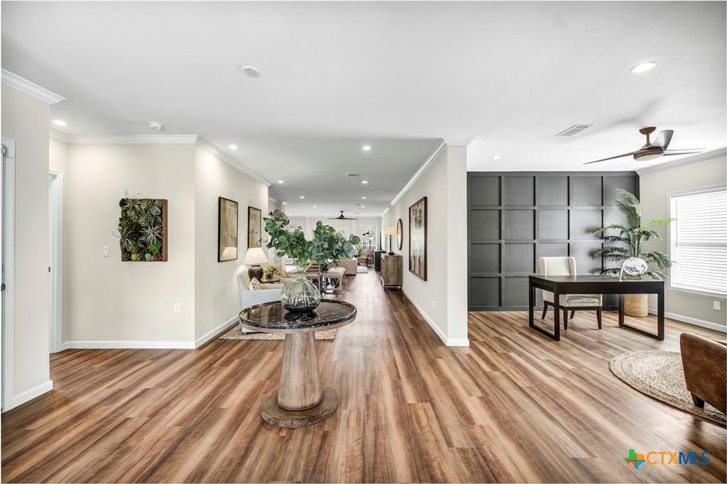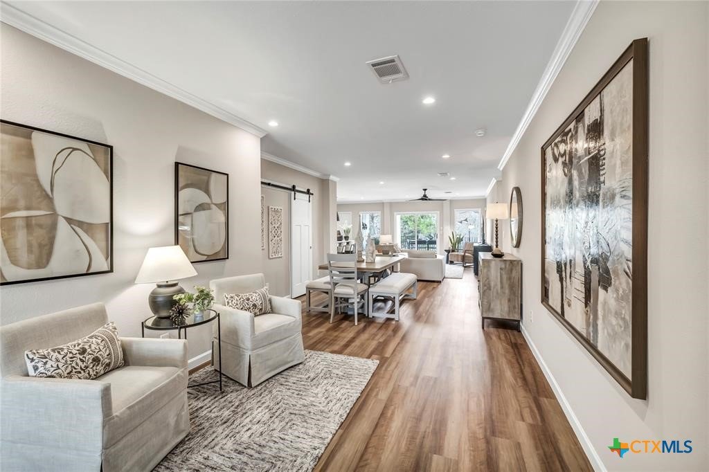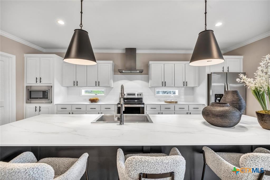Discover modern living at its finest in this dream-worthy home just 30 minutes from Austin. Nestled on a beautifully landscaped 1.27-acre lot, this property blends luxury, comfort, and design in every detail. A sleek concrete and stone driveway leads you to an impressive 8-foot entry door, setting the tone for the modern aesthetic that flows throughout the home. Inside, expansive living spaces include a den, family room, and open-concept kitchen built for entertaining. The chef’s kitchen features a massive center island, premium finishes, and seamless flow to the living area—perfect for gatherings large or small. The private owner’s suite is a true retreat, offering a spa-inspired bathroom with a luxury shower, walk-in closet, and a secluded patio where you can unwind in peace. Step outside and experience your own backyard oasis: multiple entertaining areas, a cozy fire-pit lounge, and a picturesque walk down to the creek at the back of the property. With space to expand, entertain, and enjoy the tranquility of nature—all within easy reach of Austin—this property offers the rare blend of modern design and Texas charm that today’s buyers are searching for.
