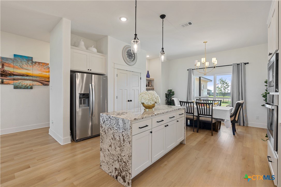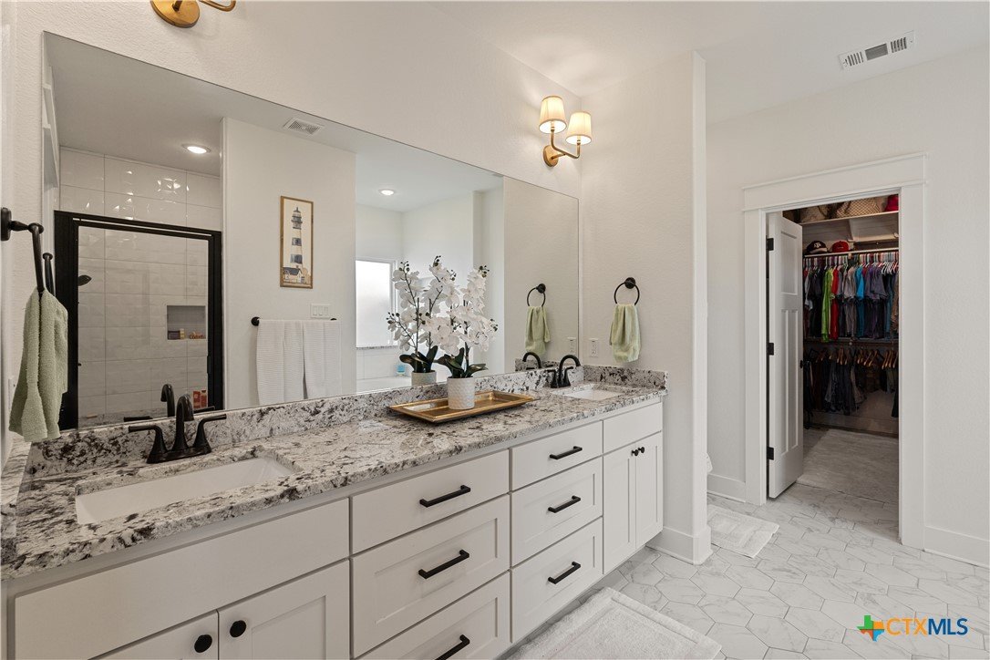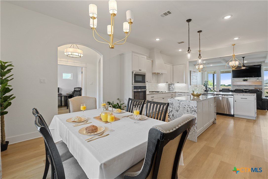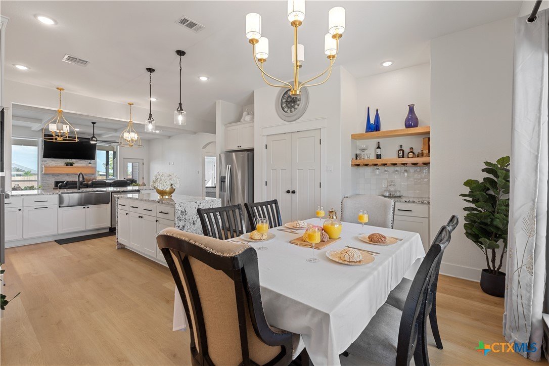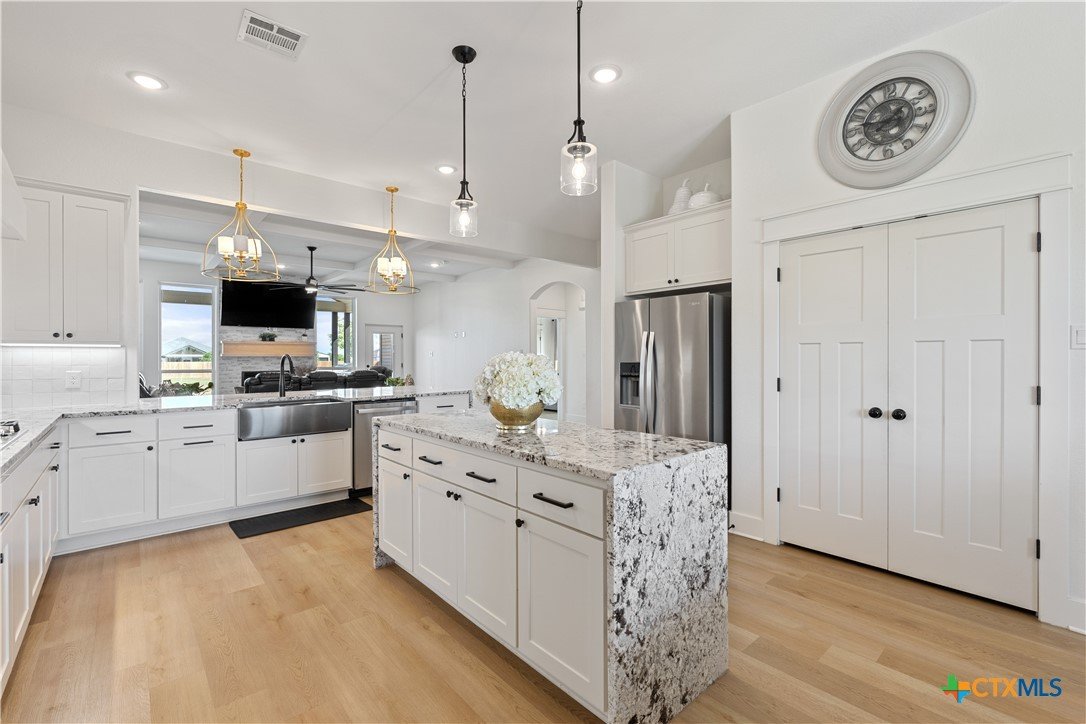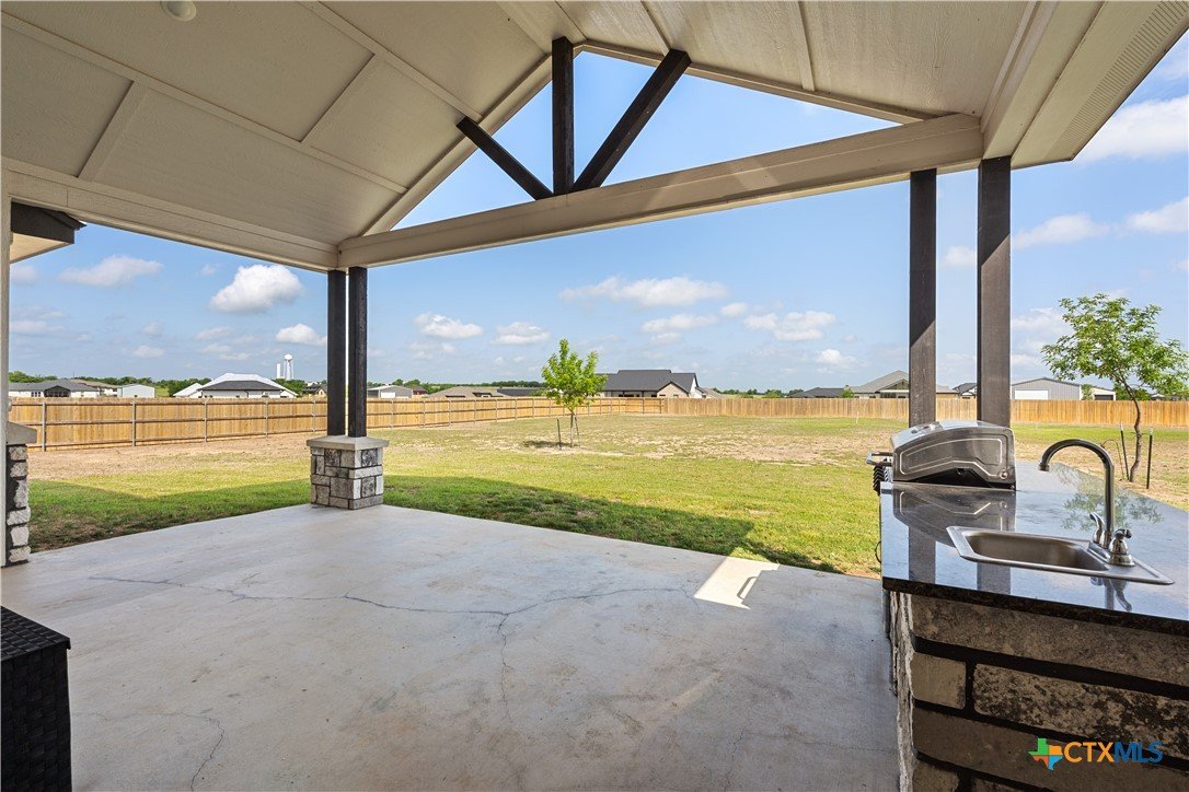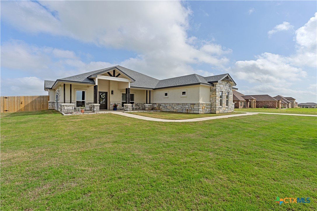 If you’ve been dreaming of a peaceful home that blends luxury, comfort, and modern living, on over an acre of land, this stunning stucco and stone beauty might just be the one. From the moment you arrive, the curb appeal draws you in. The wide, paved driveway and side-entry 3 car garage offer plenty of parking, while the full sprinkler system keeps the yard looking fresh and low-maintenance. Step onto the covered front porch and imagine sipping your morning coffee here in total peace. Inside, you're welcomed by a wide arched foyer that adds both elegance and a sense of privacy. Just off the entry is a thoughtfully designed home office with double glass wood doors—perfect for working from home or managing your day in style. Natural light pours in through large windows throughout, giving every room a warm, open feel. The heart of the home is a dream kitchen made for entertaining. Featuring a granite waterfall island, stainless steel farmhouse sink, propane stove, built-in bar, and stunning pendant lighting. There's tons of cabinet space, under-cabinet lighting, and a double-door pantry for everything you need. The adjacent dining area is perfect for hosting dinners, holidays, or casual nights with friends. The cozy living room offers a coffered ceiling and a beautiful propane fireplace with stone tile, ideal for relaxing evenings. Each bedroom has its own bathroom and walk-in closet, and two guest rooms even include private baths. One with direct access to the back porch. Great for a future pool! The primary suite feels like a true retreat, with coffered ceilings, a huge walk-in closet, and a spa-like bath with soaking tub and walk-in shower. Outside, the expansive back patio includes an outdoor kitchen and sink, and the fully fenced backyard is ready for your shop, guest house, or pool. And the location? Just 8 minutes to downtown Salado, 15 to Temple, and 30 to Round Rock outlets. It's the perfect mix of quiet country living & nearby convenience.