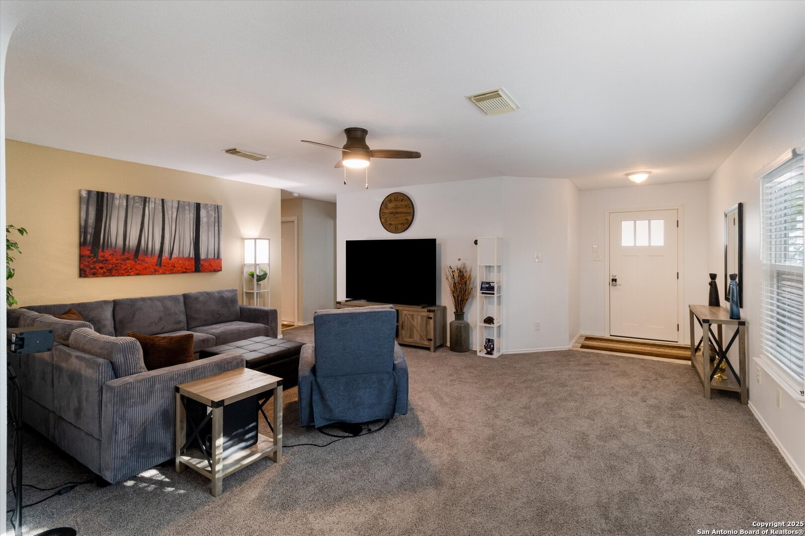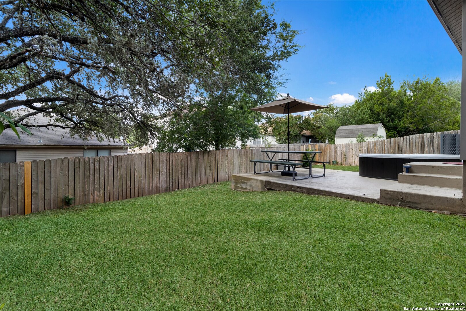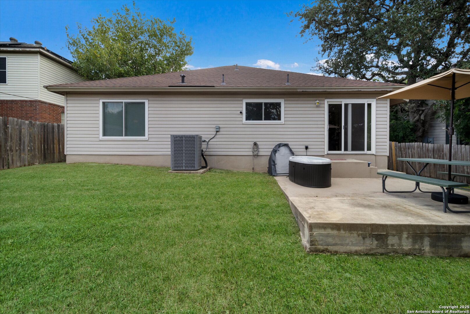 Welcome to 9422 Winding Elm Pl, a stylish and move-in-ready 3-bedroom, 2-bathroom home with a two-car garage in the highly sought-after Silverbrook neighborhood of San Antonio, minutes from shopping, dining, schools, and major highways. This thoughtfully updated single-story home blends modern finishes with everyday comfort, offering the perfect balance for family living and entertaining. The modern kitchen shines with granite countertops, stainless steel appliances, and ample cabinet space, plus a center island perfect for food preparation and casual dining. Comfortable bedrooms - The private primary bedroom features a spacious layout, walk-in closet, and an updated bathroom. Two additional bedrooms and another full bath with new toilets provide comfort and flexibility for family, guests, or office use. Notable upgrades include: * New dual-pane windows and a sliding glass patio door. * Freshly painted walls in most of the rooms. * A brand-new front door and stainless-steel garage access door. * A recently installed brand new water softener system that will provide years of purified water for bathing, drinking, and the appliances for the entire home. * In the backyard, enjoy your brand new two-person hot tub and the extra-large concrete patio. The fully fenced backyard offers privacy and room to play. * Inside, your new home is brand new carpeting throughout with top-quality padding, along with new plank flooring in the kitchen, dining room, and laundry room. * Bathroom upgrades include new toilets, a fully remodeled extra-wide step-in shower in the primary bedroom, along with a new vanity/sink. The guest bathroom has a new high-quality bathtub and fiberglass walls. * The kitchen includes freshly painted (new) cabinets, an upgraded faucet, dishwasher, and oven.