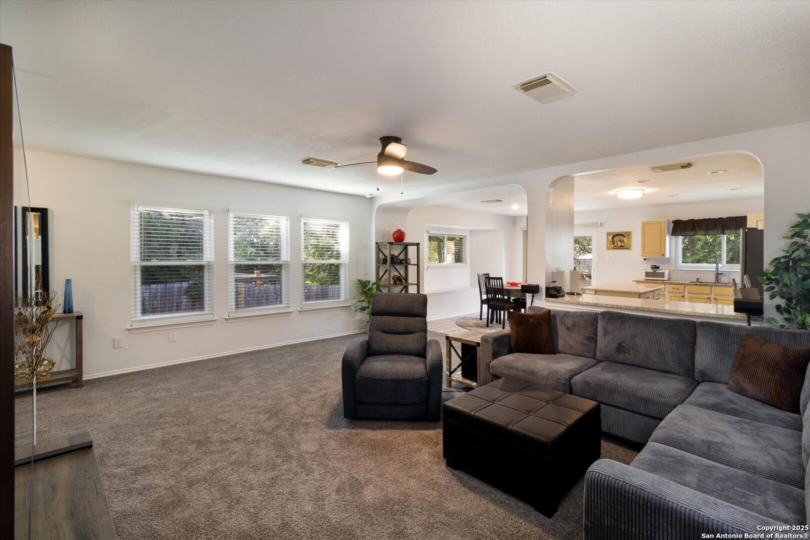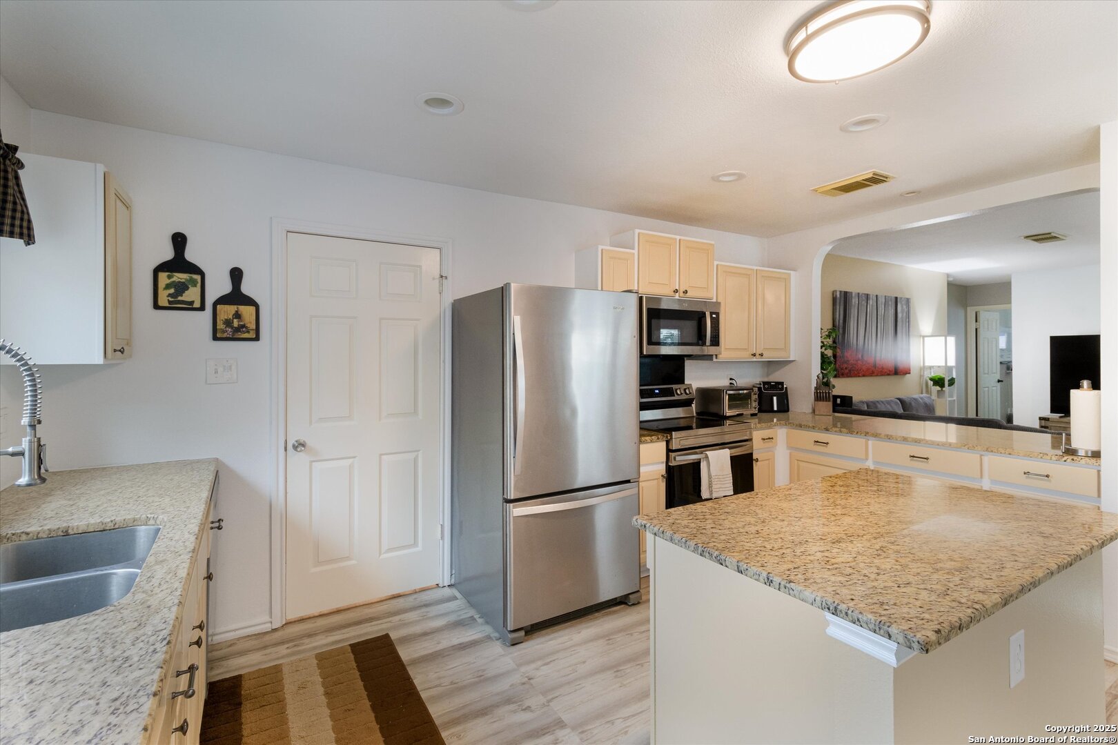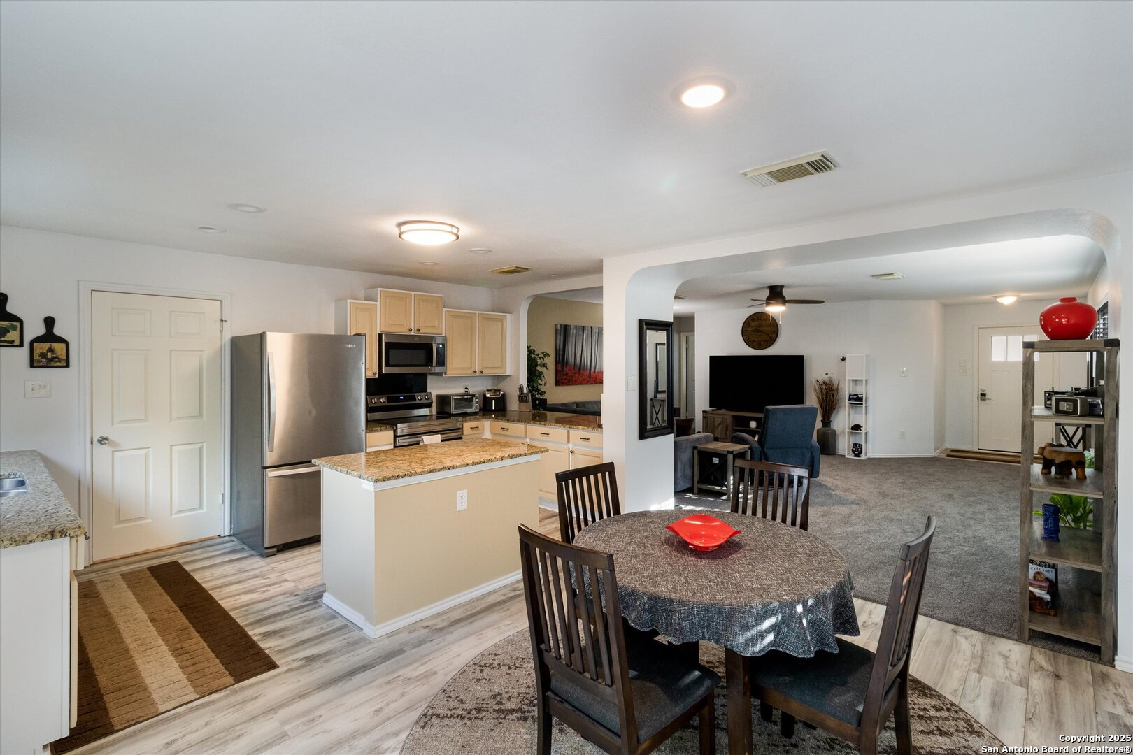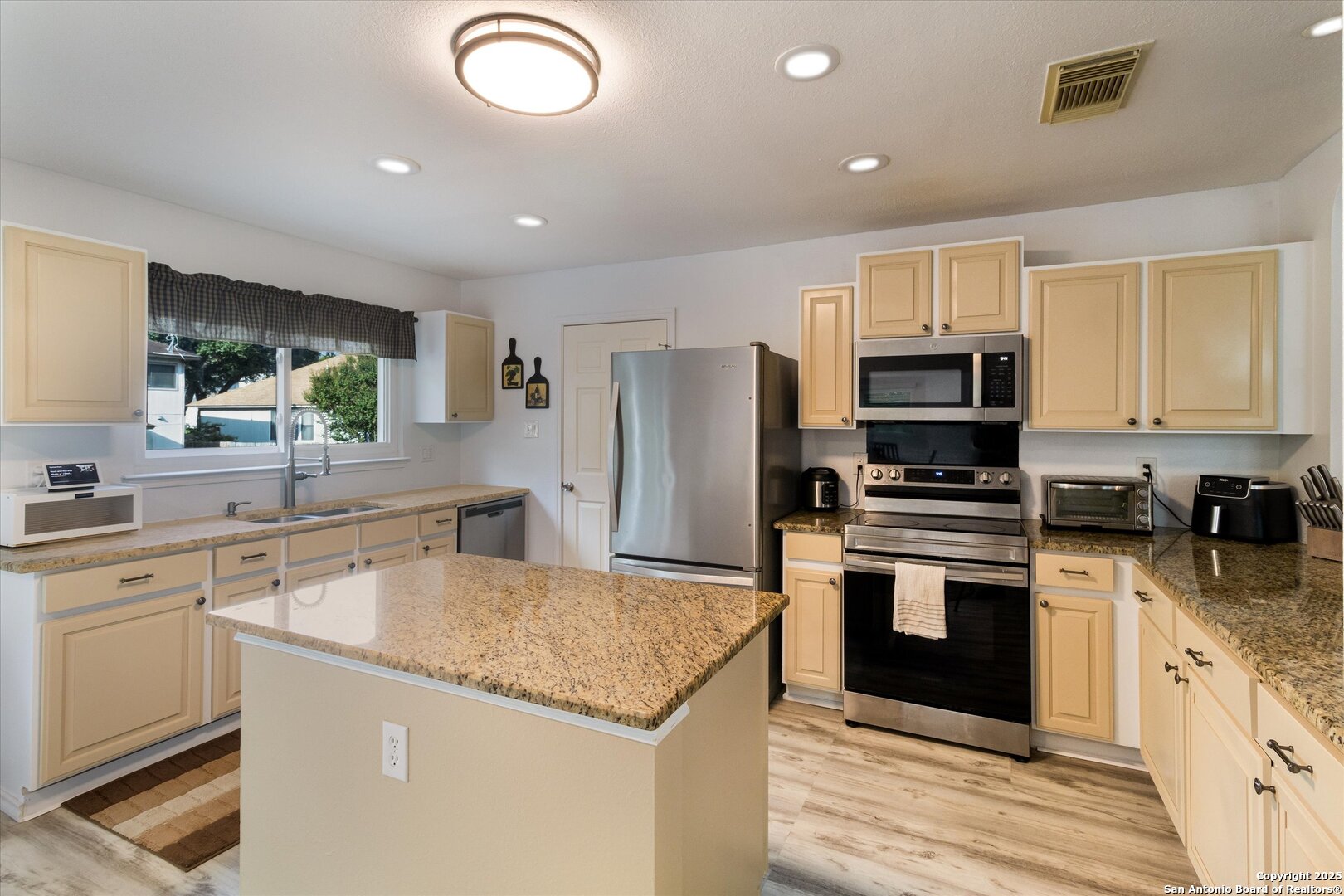 Welcome to 9422 Winding Elm Pl, a stylish and move-in-ready 3-bedroom, 2-bathroom home with a two-car garage in the highly sought-after Silverbrook neighborhood of San Antonio, minutes from shopping, dining, schools, and major highways. This thoughtfully updated single-story home blends modern finishes with everyday comfort, offering the perfect balance for family living and entertaining. The modern kitchen shines with granite countertops, stainless steel appliances, and ample cabinet space, plus a center island perfect for food preparation and casual dining. Comfortable bedrooms - The private primary bedroom features a spacious layout, walk-in closet, and an updated bathroom. Two additional bedrooms and another full bath with new toilets provide comfort and flexibility for family, guests, or office use. Notable upgrades include: * New dual-pane windows and a sliding glass patio door. * Freshly painted walls in most of the rooms. * A brand-new front door and stainless-steel garage access door. * A recently installed brand new water softener system that will provide years of purified water for bathing, drinking, and the appliances for the entire home. * In the backyard, enjoy your brand new two-person hot tub and the extra-large concrete patio. The fully fenced backyard offers privacy and room to play. * Inside, your new home is brand new carpeting throughout with top-quality padding, along with new plank flooring in the kitchen, dining room, and laundry room. * Bathroom upgrades include new toilets, a fully remodeled extra-wide step-in shower in the primary bedroom, along with a new vanity/sink. The guest bathroom has a new high-quality bathtub and fiberglass walls. * The kitchen includes freshly painted (new) cabinets, an upgraded faucet, dishwasher, and oven.