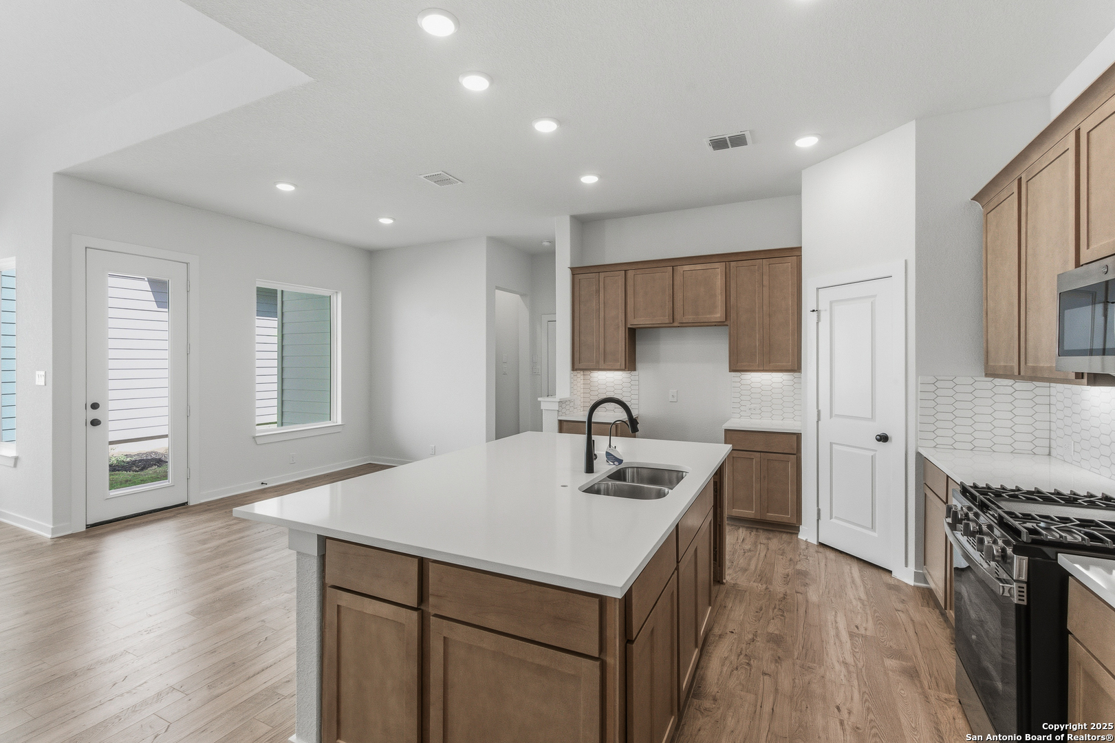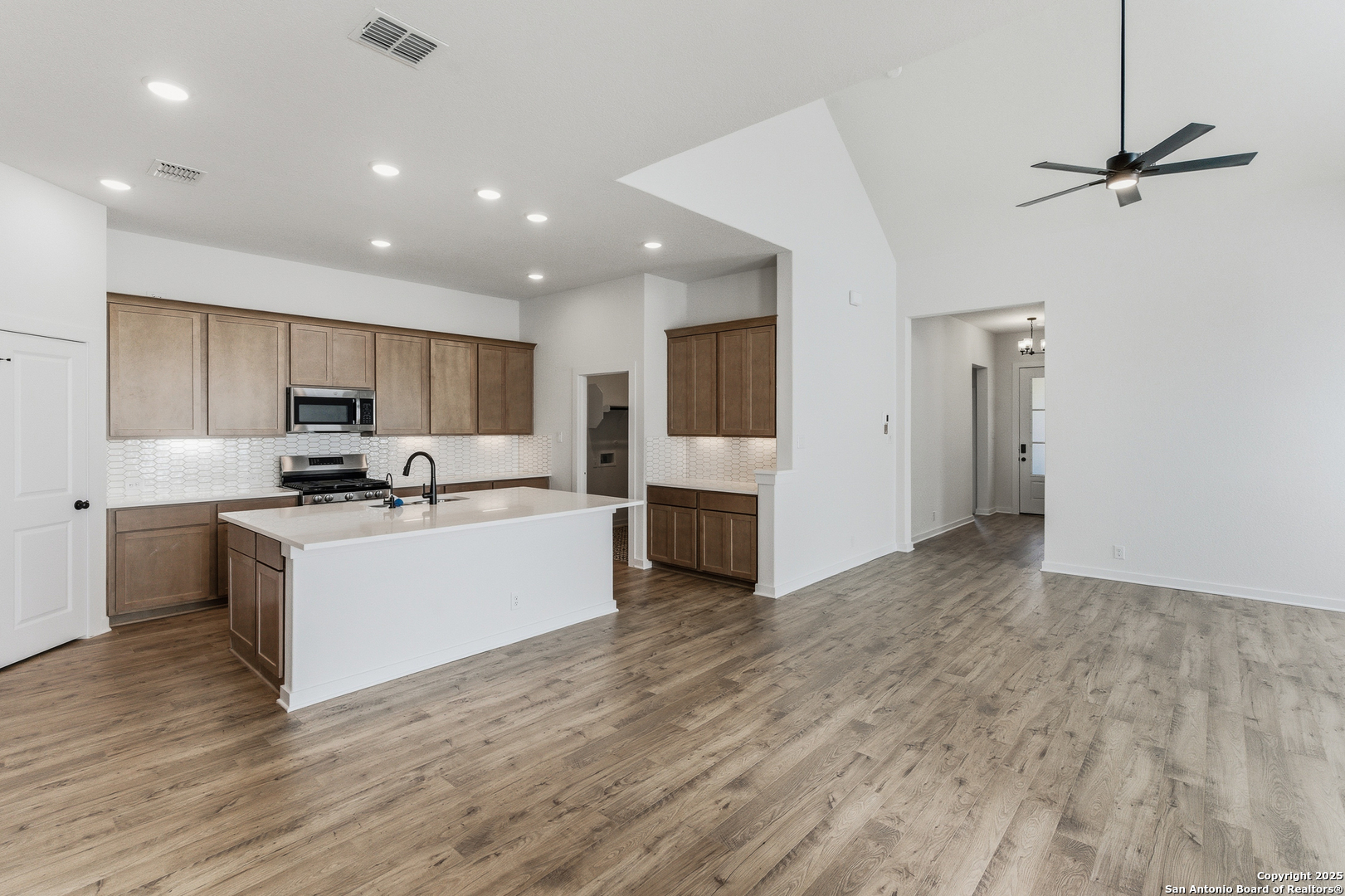 Move in Ready! Discover the perfect balance of style and convenience in this thoughtfully designed single-story home. With three spacious bedrooms and three full bathrooms, there's room for everyone to enjoy their own private space. The large primary suite is a true retreat, featuring a generous walk-in closet that connects directly to the utility room for seamless laundry access-making daily chores a breeze. The open-concept floorplan brings together the kitchen, dining, and living areas, creating an inviting space for both relaxation and entertaining. Step outside through the dining room to a beautiful outdoor living area, perfect for hosting gatherings or enjoying quiet moments in the fresh air. With a two-car garage and extra storage space, this home offers everything you need for a modern, comfortable lifestyle