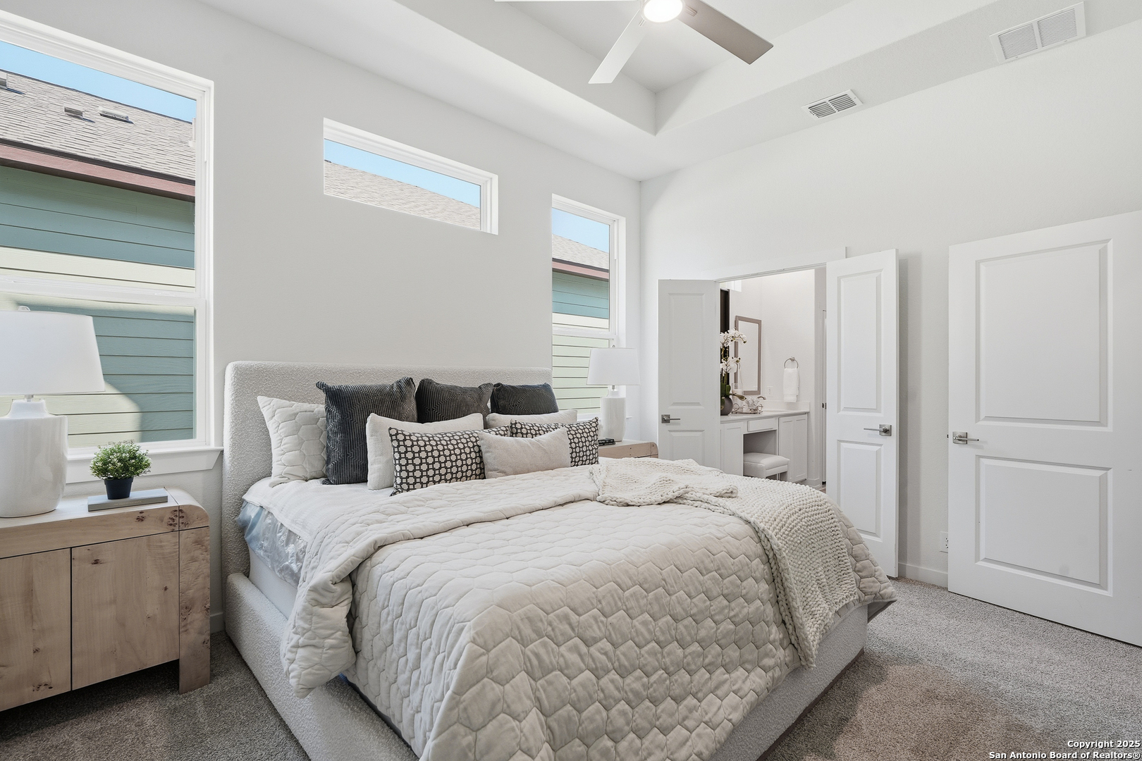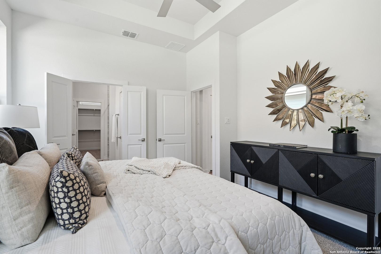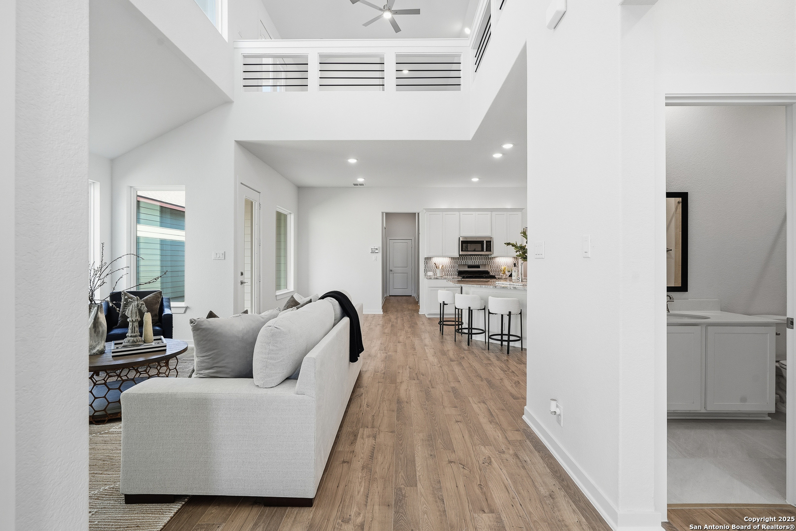 Move in Ready! Step inside this stunning one and a half story home, where spacious design and thoughtful details create the perfect living experience. The first floor features an inviting open floor plan, centered around a large family room that flows effortlessly into the dining room and kitchen. Just off the dining room, step outside to an expansive outdoor living area, ideal for enjoying the outdoors or hosting gatherings. The first-floor primary bedroom is a peaceful retreat, boasting a large walk-in closet with plenty of storage space. A second bedroom with a walk-in closet and a private study offer additional flexibility and privacy on the main level. Upstairs, a grand game room overlooks the floor below perfect for relaxing or entertaining. A third bedroom with a walk-in closet adds space for family or guests. With 3 full baths, a 2-car garage with extra storage, and walk-in closets in every room, comfort meets convenience.