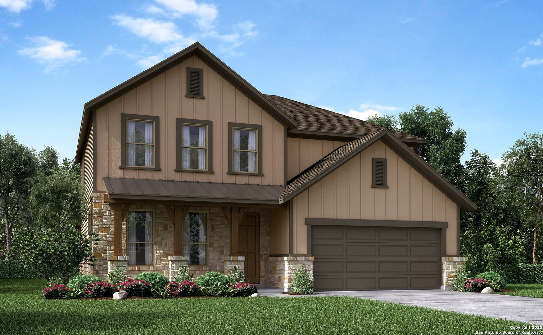 Brand new, energy-efficient home available by Oct 2025! The Evergreen's front flex space and living room with volume ceiling make a striking impression. Tucked in the rear of the home, the primary suite is secluded from the secondary bedrooms and game room upstairs. Starting in the $400s, Estancia Ranch spans approximately 170 acres in Far North San Antonio. This community offers exceptional amenities, including a community pool, covered pavilion, playground, and dog park. Conveniently located near Loop 1604 and US 281, residents enjoy easy access to shopping, dining, and entertainment. The community is served by the Comal Independent School District. Each of our homes is built with innovative, energy-efficient features designed to help you enjoy more savings, better health, real comfort and peace of mind.