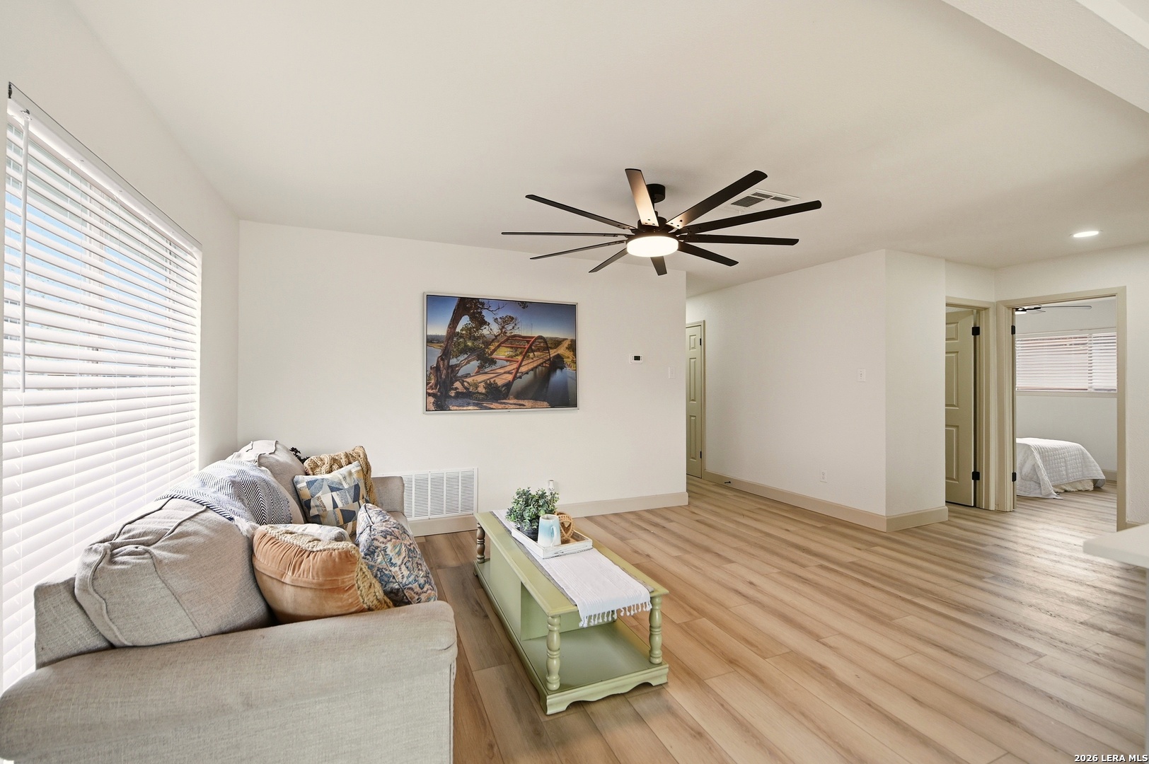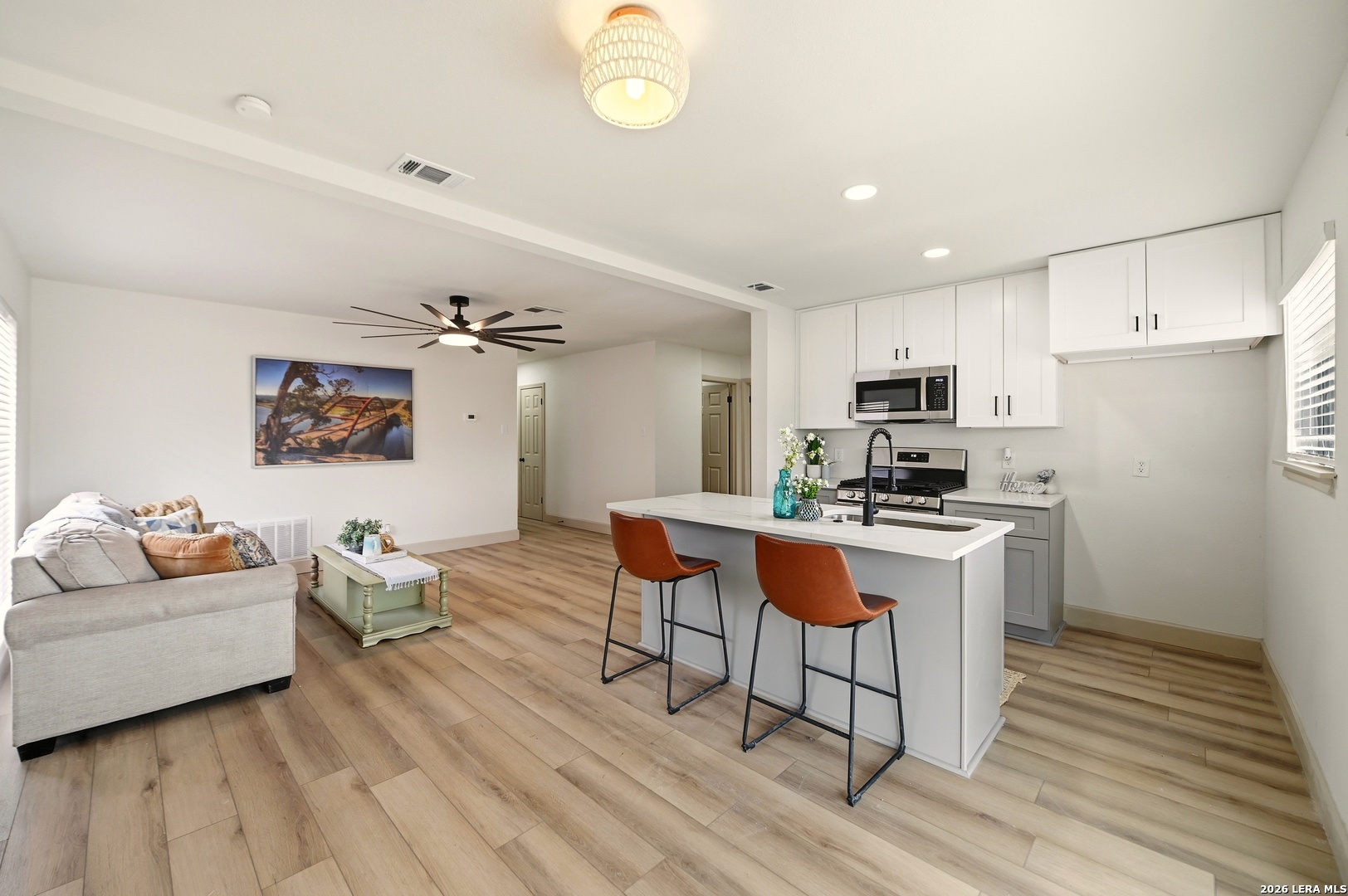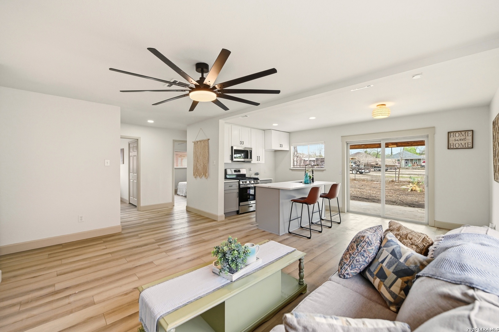 Fully Remodeled Home - Modern Upgrades, Flexible Layout, and Standout Outdoor Living Welcome to 9439 Hindi Dr., a beautifully remodeled home located on the Southside of San Antonio in a quiet, established neighborhood known for its friendly neighbors and convenient access to shopping, dining, and major roadways. Originally built in 1973, this home has been completely renovated with modern finishes and thoughtful updates, making it truly move-in ready. Immediately you will notice the fresh interior and exterior paint, brand-new flooring throughout the entire home, and a bright open-concept layout that creates a spacious and inviting feel. The fully updated kitchen is the centerpiece of the home, featuring quartz countertops, new soft-close cabinets, and brand-new GE stainless appliances, offering both style and functionality for cooking and entertaining. The home's layout offers excellent flexibility, with a spacious main living area plus a second living room that can easily serve as a fourth bedroom, home office, game room, or flex space, making it ideal for growing families or those needing extra room. Step outside and you'll immediately notice one of the home's most unique features-both the front and back patios feature beautiful stained wood ceilings, creating warm, inviting outdoor spaces perfect for relaxing, entertaining, or enjoying quiet evenings. Additional highlights include central HVAC for year-round comfort, modern finishes throughout, and a layout that maximizes space and functionality. Homes with this level of renovation, open layout, and custom outdoor features are hard to find in this price range. Whether you're looking for a primary residence or an investment opportunity, this move-in-ready property offers exceptional value. Schedule your showing today and come see everything 9439 Hindi Dr. has to offer.