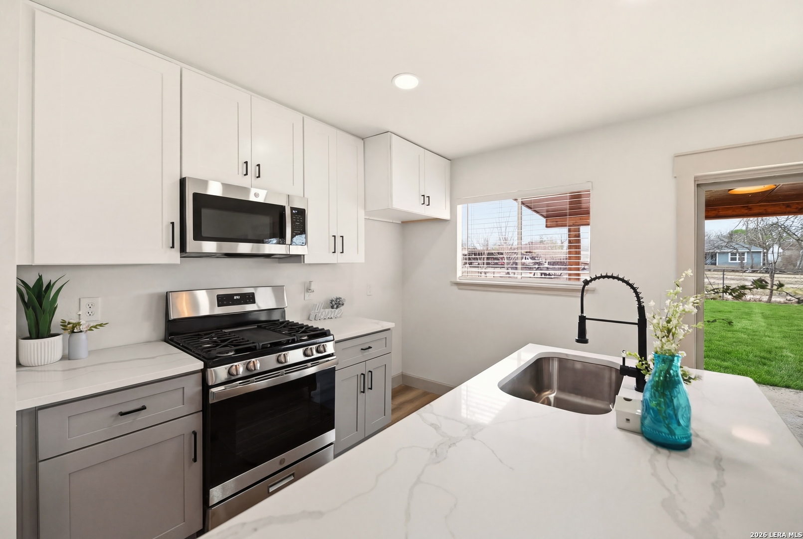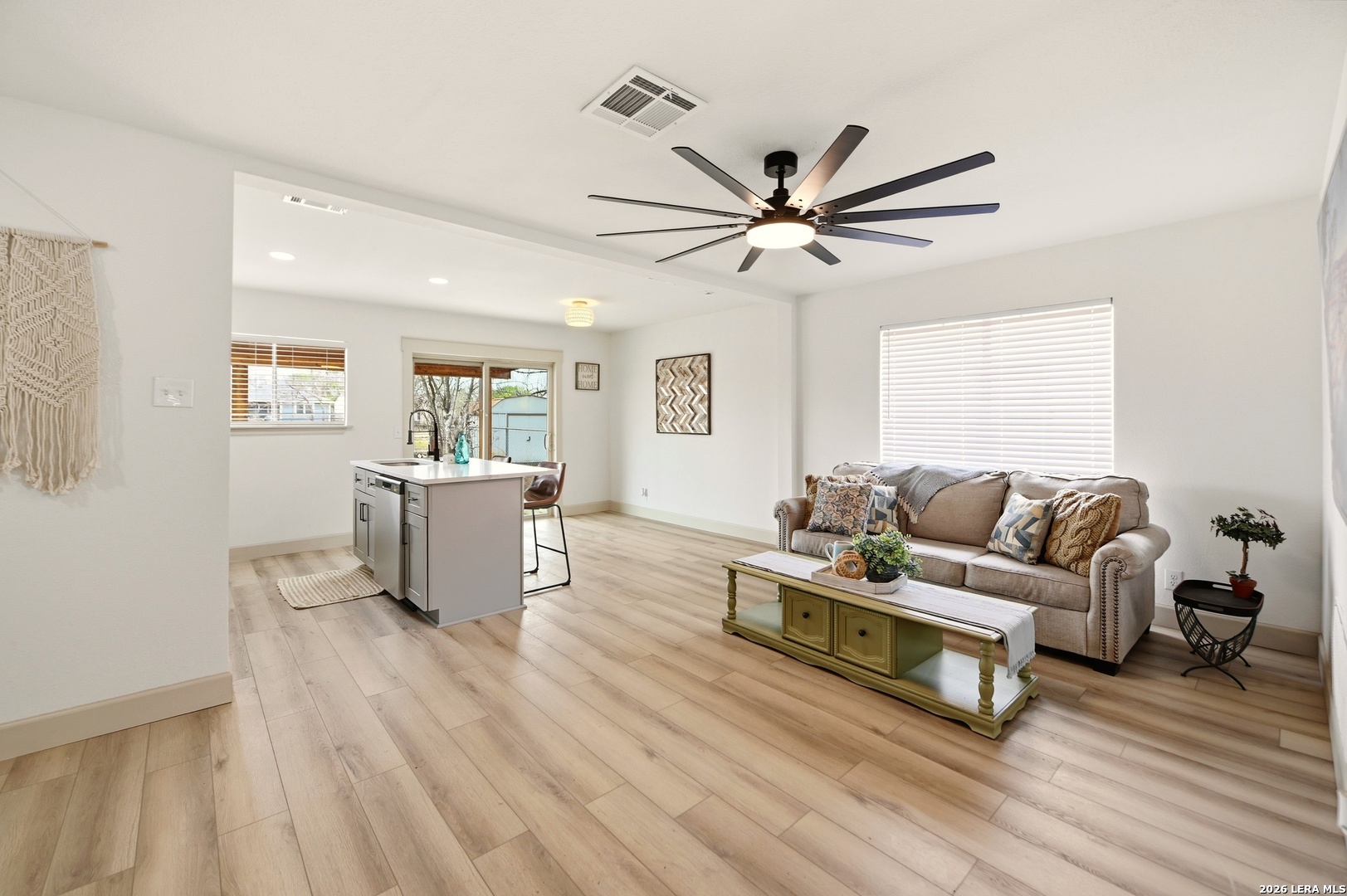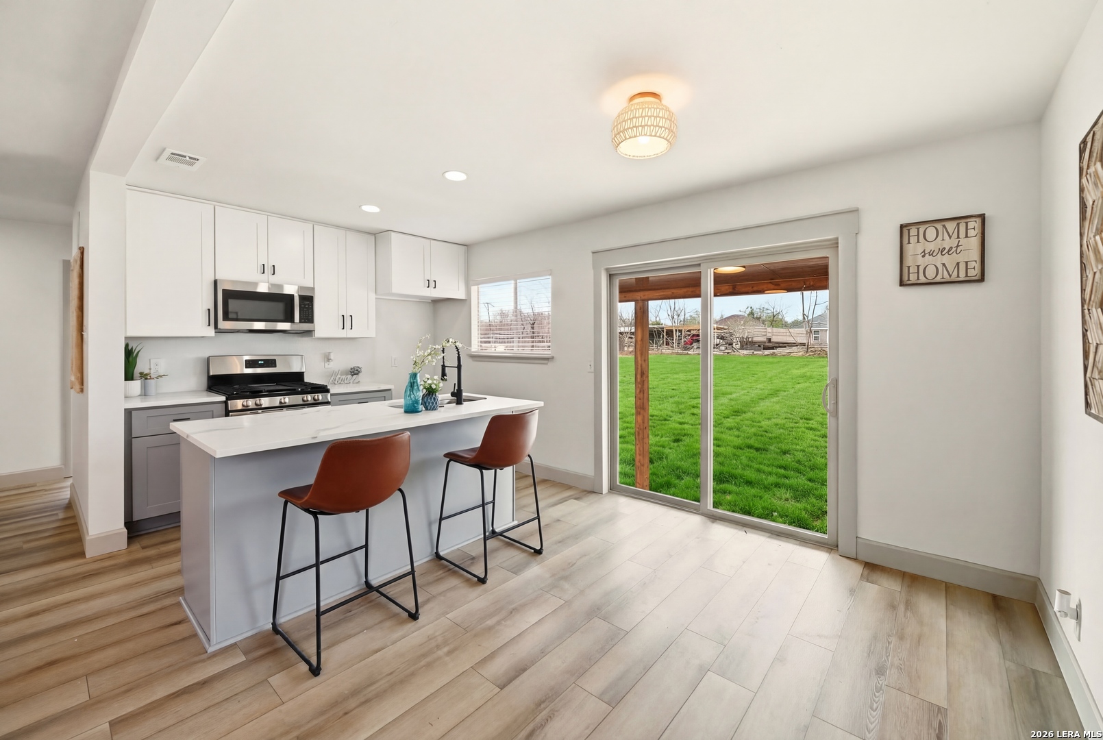 Fully Remodeled Home - Modern Upgrades, Flexible Layout, and Standout Outdoor Living Welcome to 9439 Hindi Dr., a beautifully remodeled home located on the Southside of San Antonio in a quiet, established neighborhood known for its friendly neighbors and convenient access to shopping, dining, and major roadways. Originally built in 1973, this home has been completely renovated with modern finishes and thoughtful updates, making it truly move-in ready. Immediately you will notice the fresh interior and exterior paint, brand-new flooring throughout the entire home, and a bright open-concept layout that creates a spacious and inviting feel. The fully updated kitchen is the centerpiece of the home, featuring quartz countertops, new soft-close cabinets, and brand-new GE stainless appliances, offering both style and functionality for cooking and entertaining. The home's layout offers excellent flexibility, with a spacious main living area plus a second living room that can easily serve as a fourth bedroom, home office, game room, or flex space, making it ideal for growing families or those needing extra room. Step outside and you'll immediately notice one of the home's most unique features-both the front and back patios feature beautiful stained wood ceilings, creating warm, inviting outdoor spaces perfect for relaxing, entertaining, or enjoying quiet evenings. Additional highlights include central HVAC for year-round comfort, modern finishes throughout, and a layout that maximizes space and functionality. Homes with this level of renovation, open layout, and custom outdoor features are hard to find in this price range. Whether you're looking for a primary residence or an investment opportunity, this move-in-ready property offers exceptional value. Schedule your showing today and come see everything 9439 Hindi Dr. has to offer.