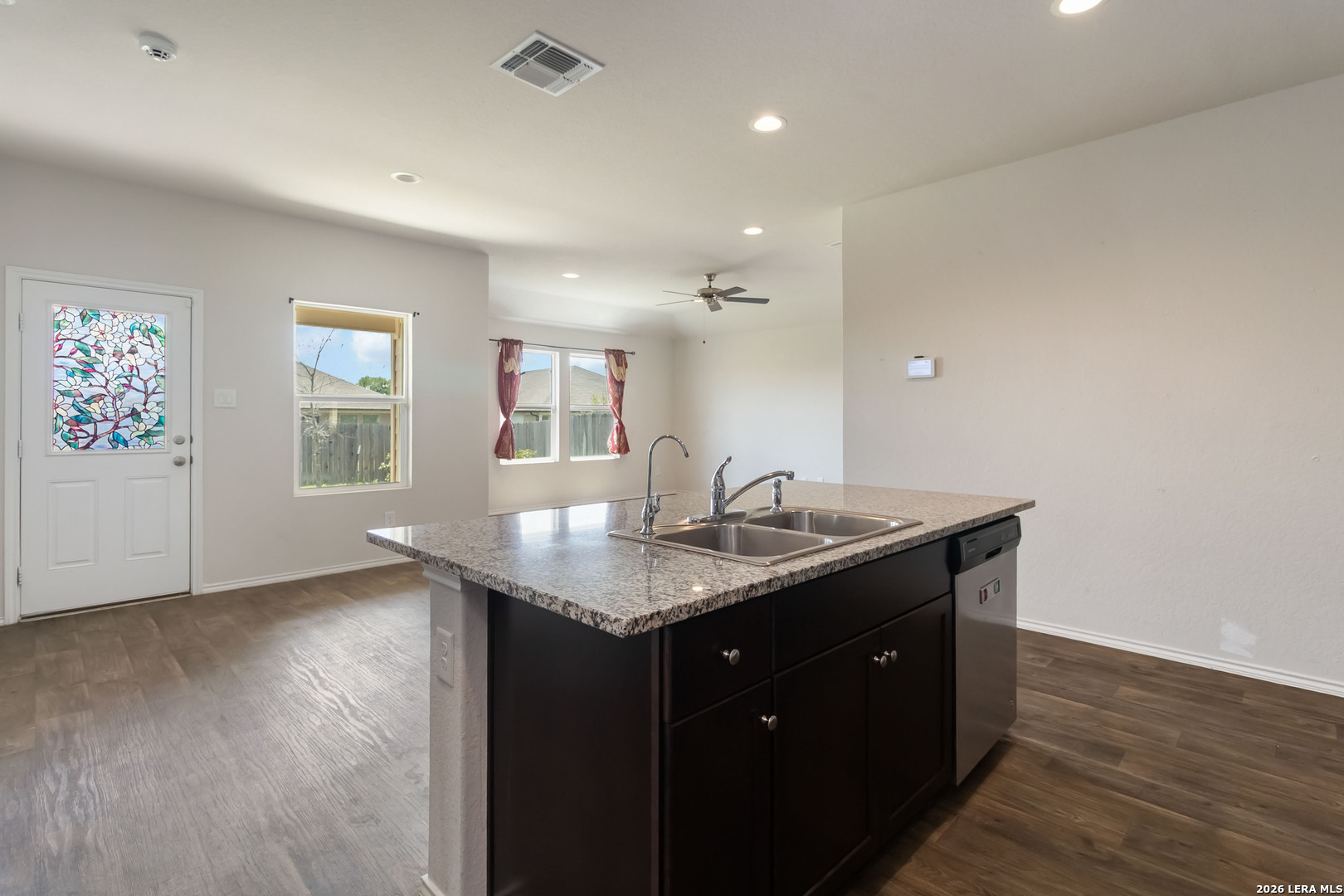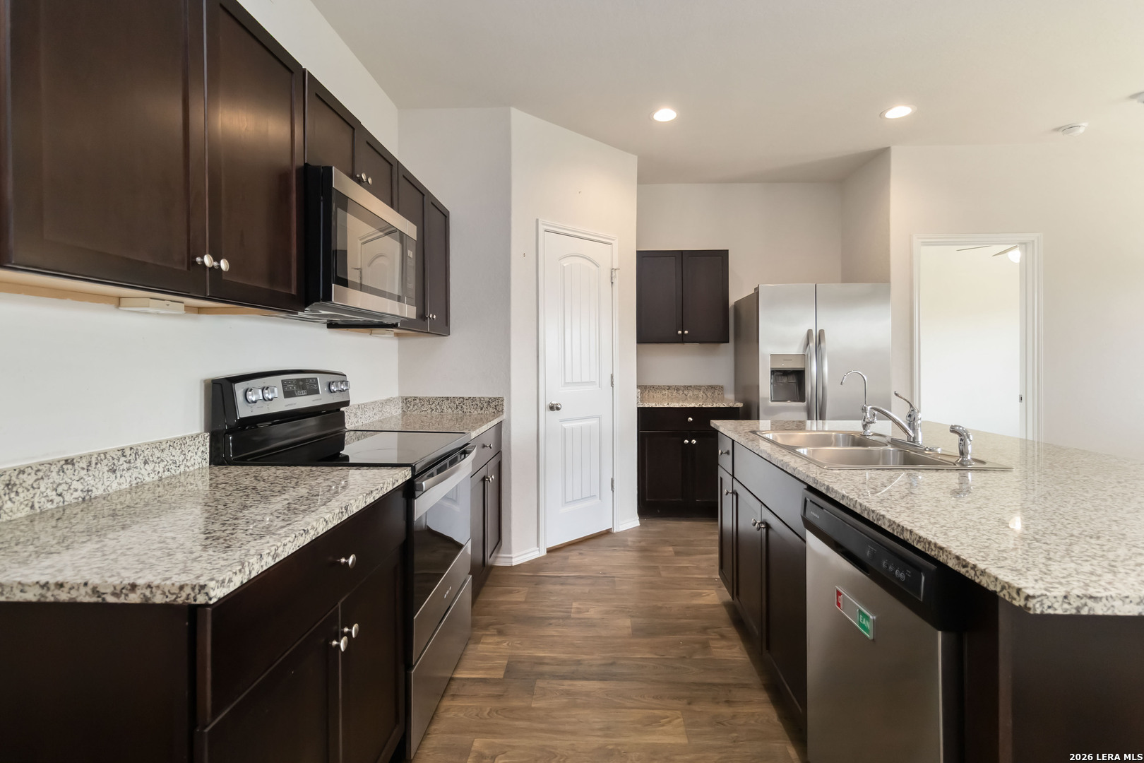 Move-in ready and beautifully maintained, this home offers a functional open-concept layout tucked away on a quiet cul-de-sac in Seguin. The kitchen is the heart of the home, featuring modern finishes, stainless steel appliances, and a large center island-perfect for meal prep, casual dining, and gathering with family and friends. The kitchen flows seamlessly into the living and dining areas, creating an ideal space for everyday living and entertaining. The private primary suite provides a comfortable retreat with a walk-in closet and ensuite bath. Secondary bedrooms are well-sized and offer flexibility for guests, a home office, or additional living space. Enjoy excellent curb appeal with well-maintained front yard landscaping, adding to the home's inviting presence. This home is truly move-in ready at a great value, with washer, dryer, and refrigerator all conveying, saving buyers time and upfront expense. Conveniently located with easy access to IH-10, shopping, dining, and schools, this home combines comfort, functionality, and affordability.