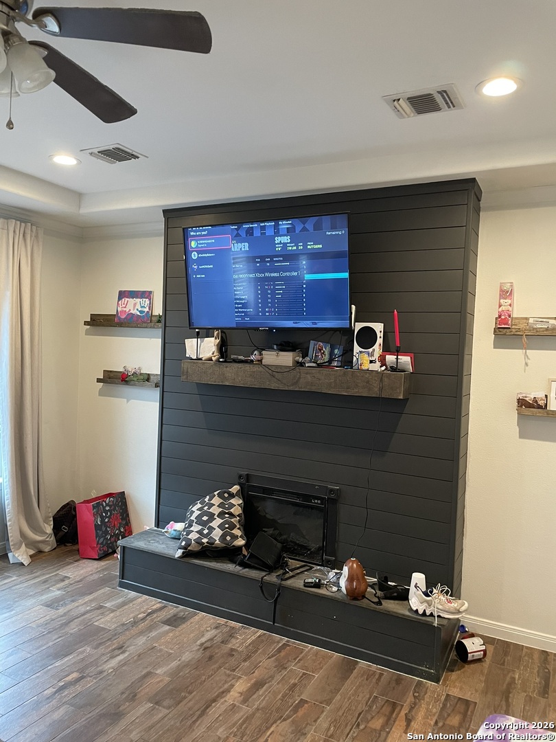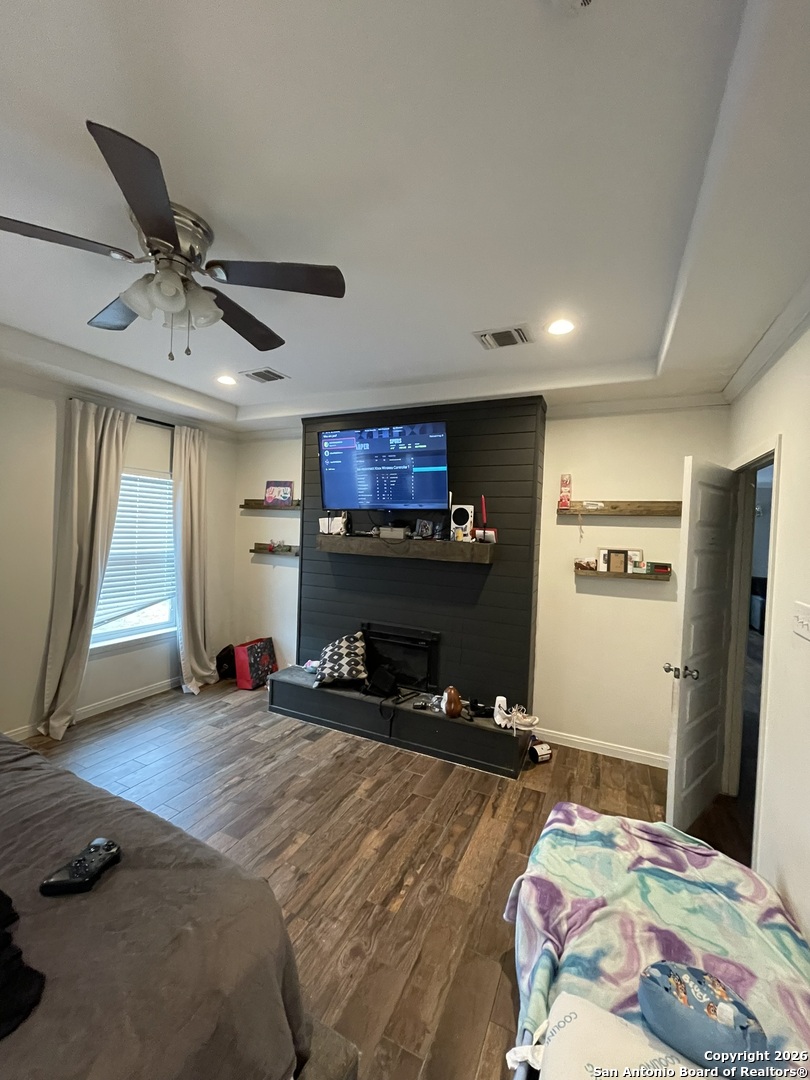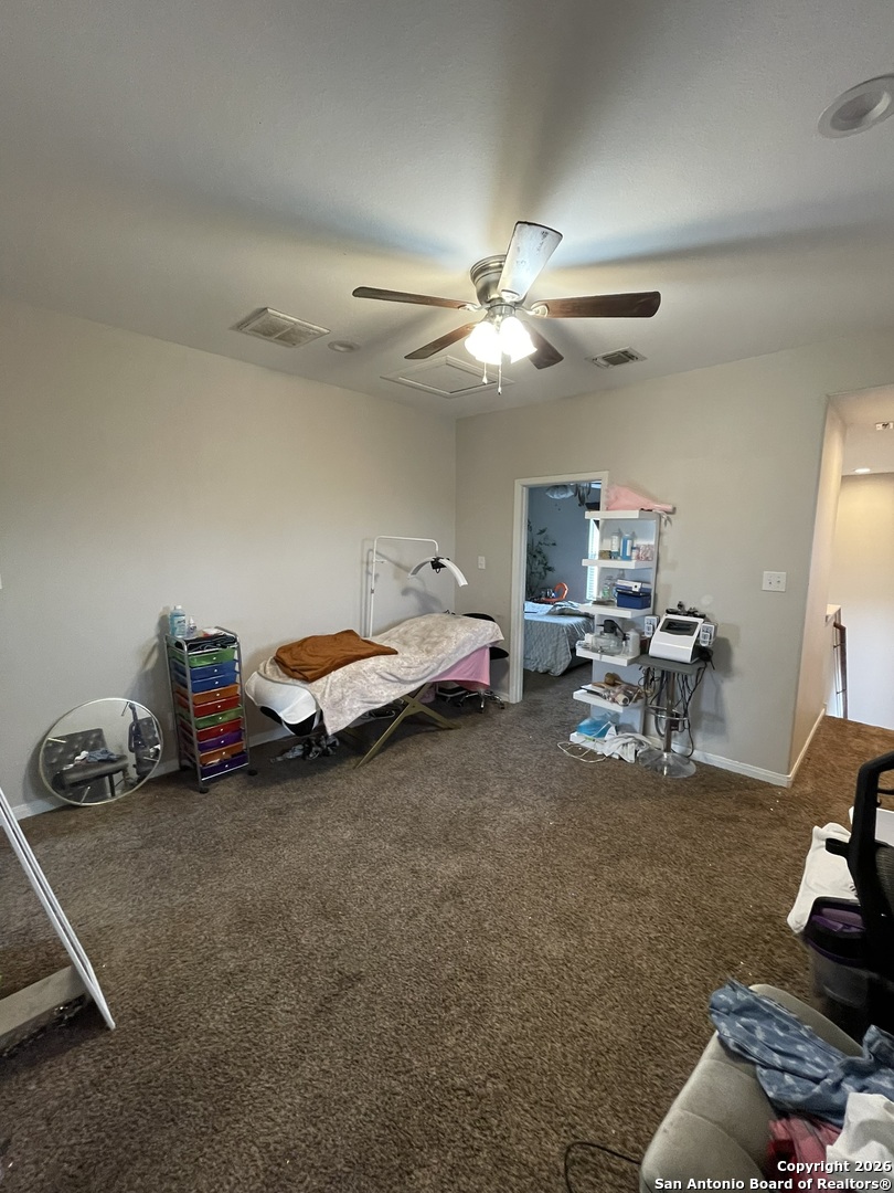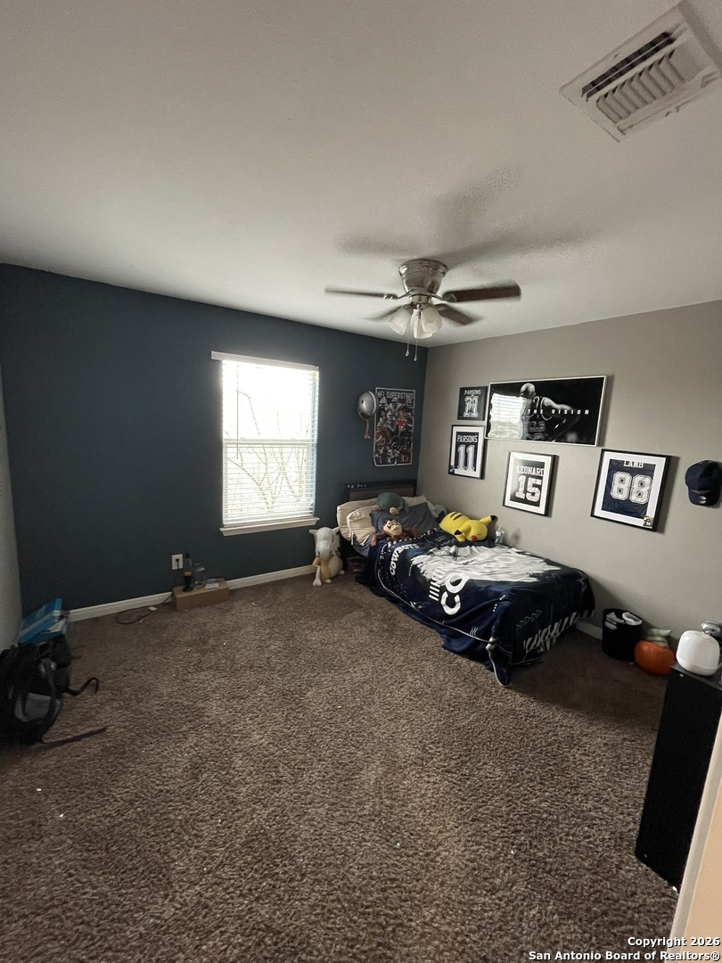 9514 Butterfly Bend is a well-maintained, one-owner home located in a small, private community on San Antonio's South Side. This 4-bedroom, 2.5-bath property offers 2,045 sq ft of functional living space with two living areas and an open floor plan. ACTIVE FORECLOSURE - PROPERTY MUST GO! The kitchen features 42-inch cabinets with crown molding, stainless steel appliances, tile backsplash, deep sinks, a center island, and brushed nickel fixtures. Flooring includes ceramic tile with a wood-look finish in main areas. The primary bedroom is located downstairs for added convenience. Additional features include stucco exterior, a 2-car garage, and an oversized lot with room for future use. The home is minutes from Texas A&M University-San Antonio and Palo Alto College, with easy access to nearby amenities. Move-in ready with solid features in a growing area.