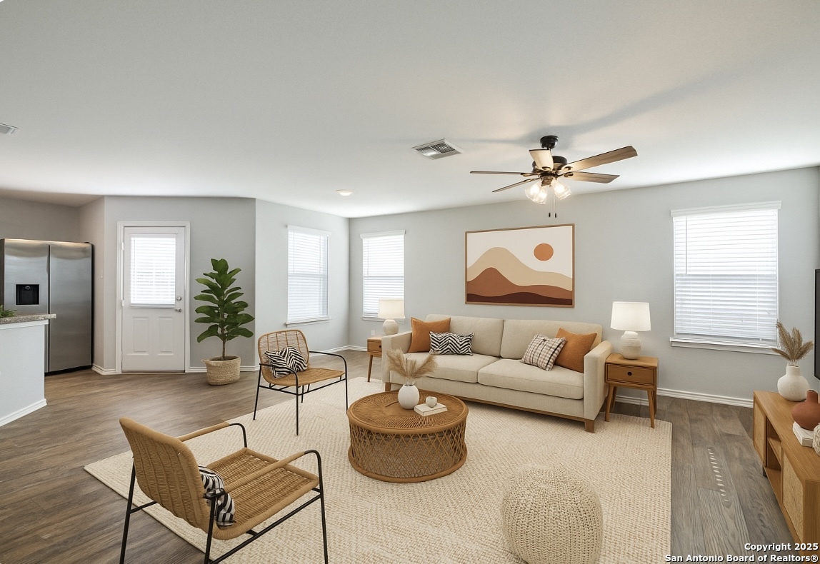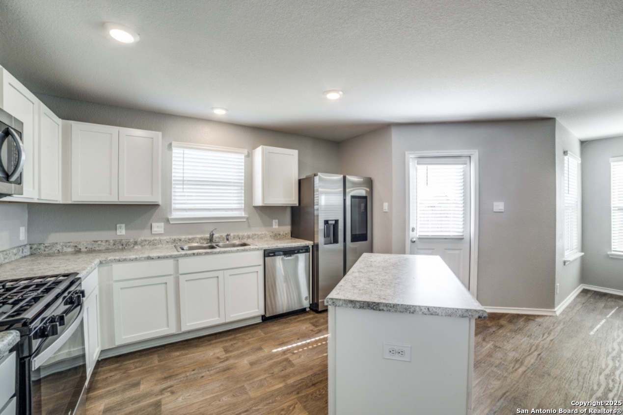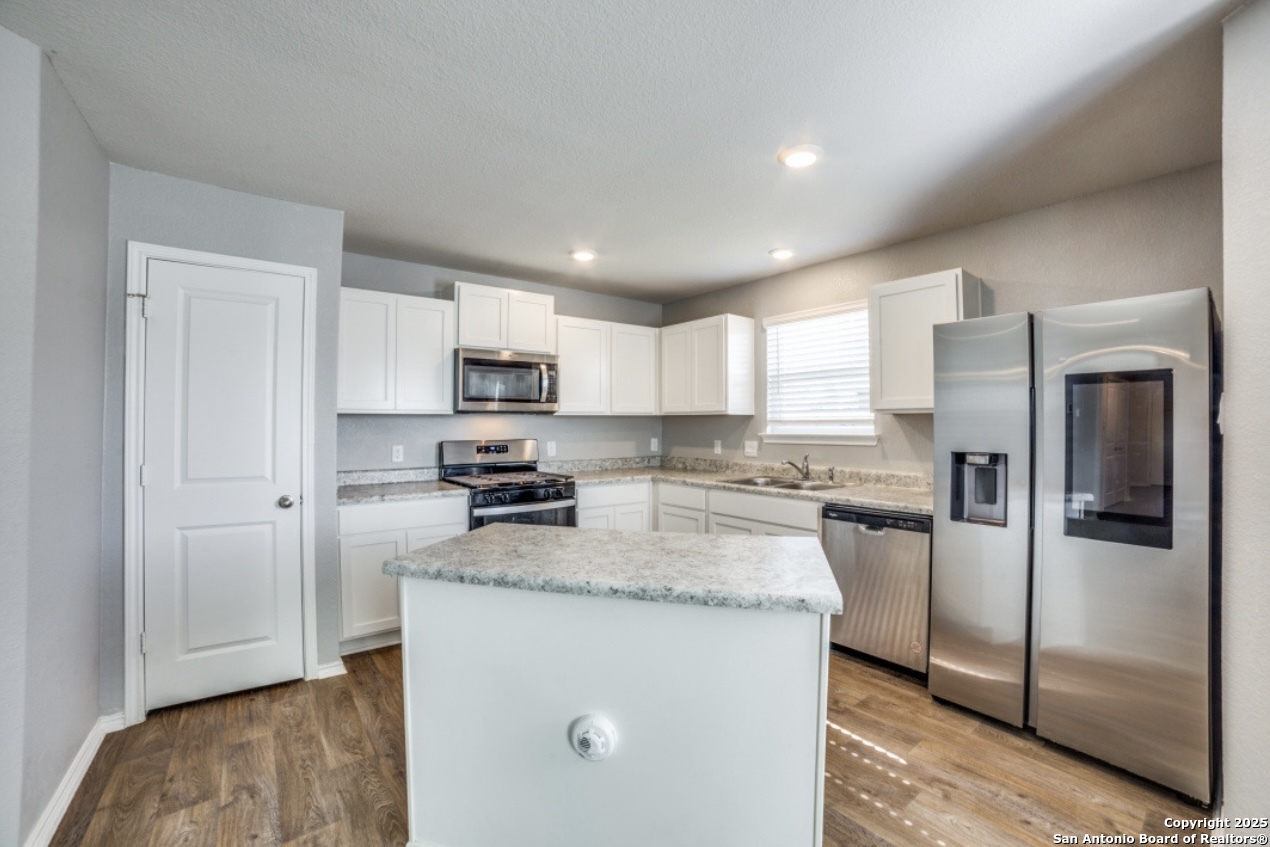 MOVE IN READY! Charming 1,310sqft 3 bed/2 bath home with an open floor plan and inviting entry. A private hallway connects two secondary bedrooms and a full bath, while a bedroom suite off the foyer offers flexibility and a large walk-in closet. Enjoy the heart of your home with bright white kitchen cabinets, stainless steel appliances, and kitchen island. This thoughtfully designed home balances everyday living with entertaining, featuring a bright living space, efficient layout, and large backyard. Schedule your showing today!