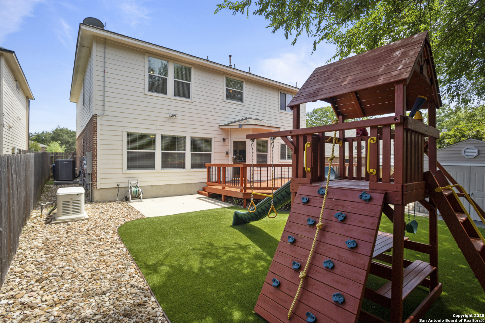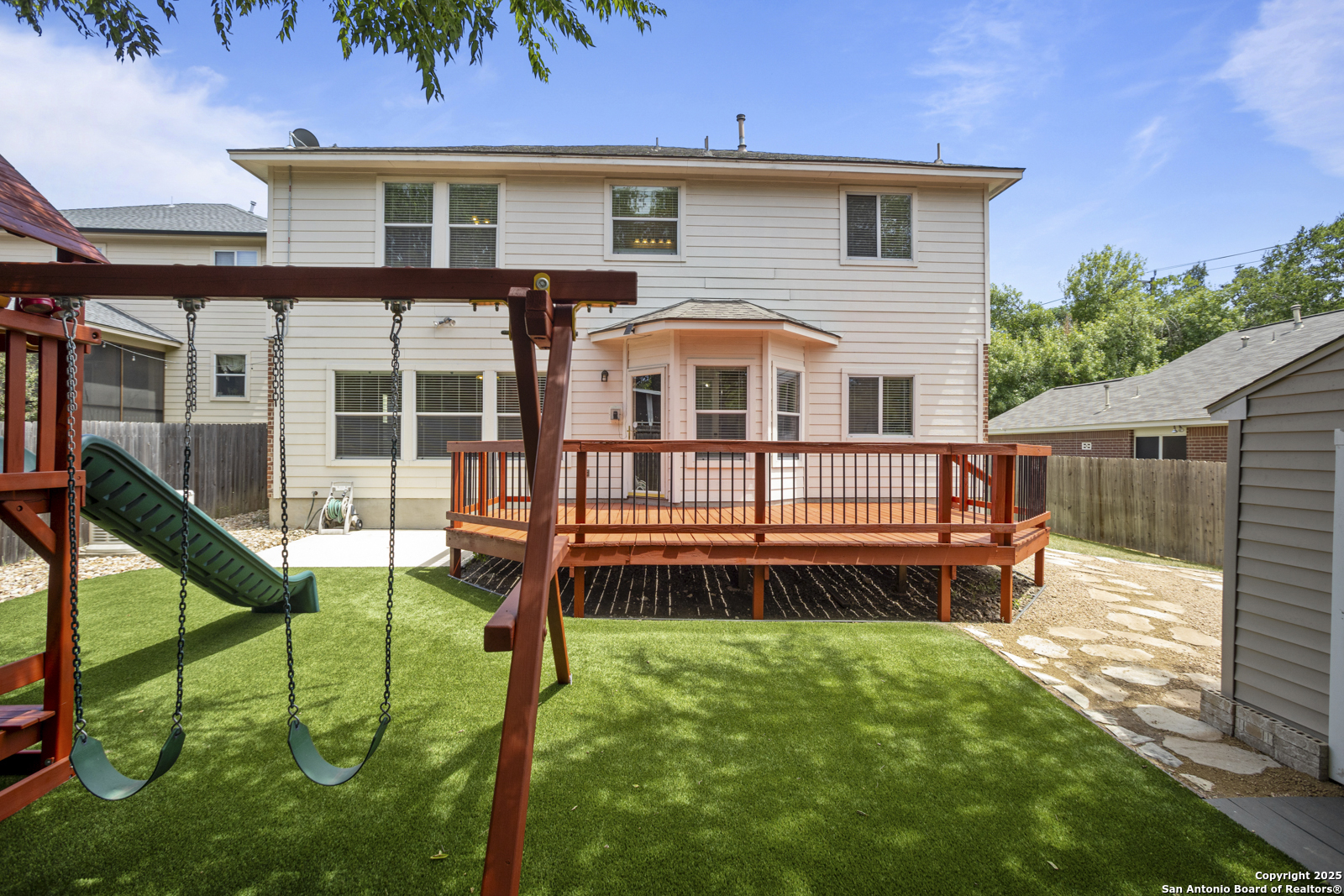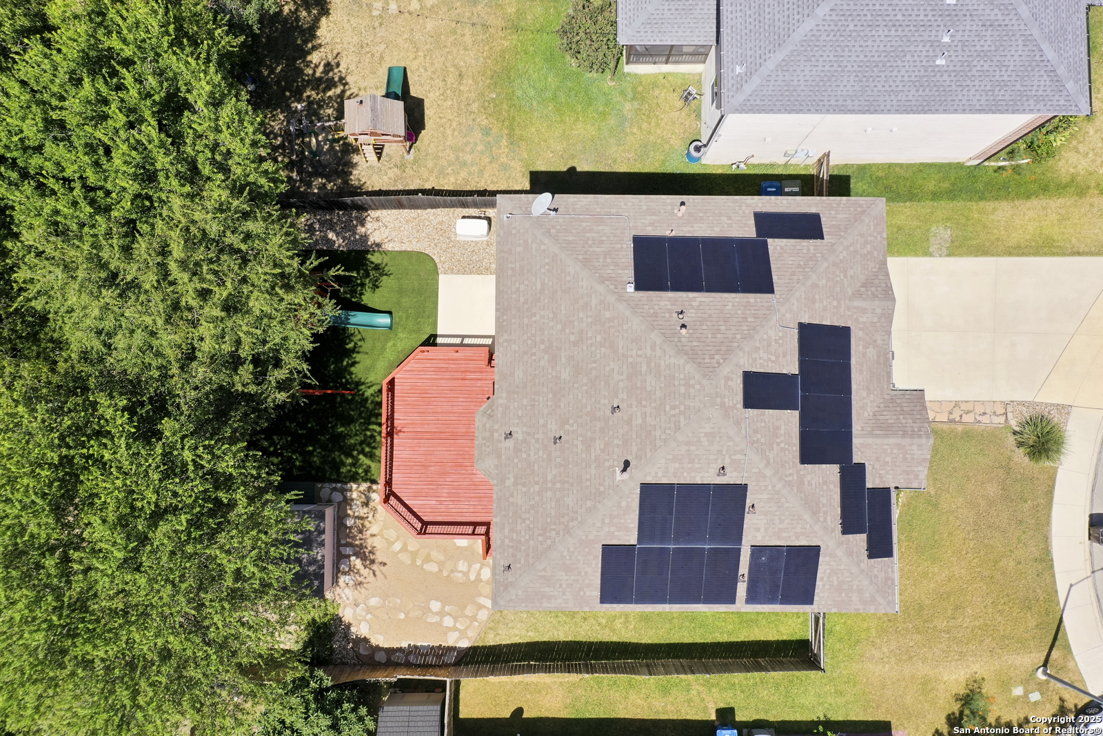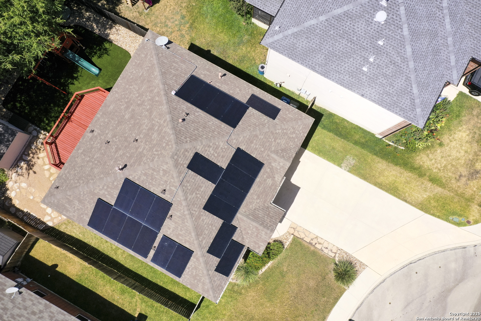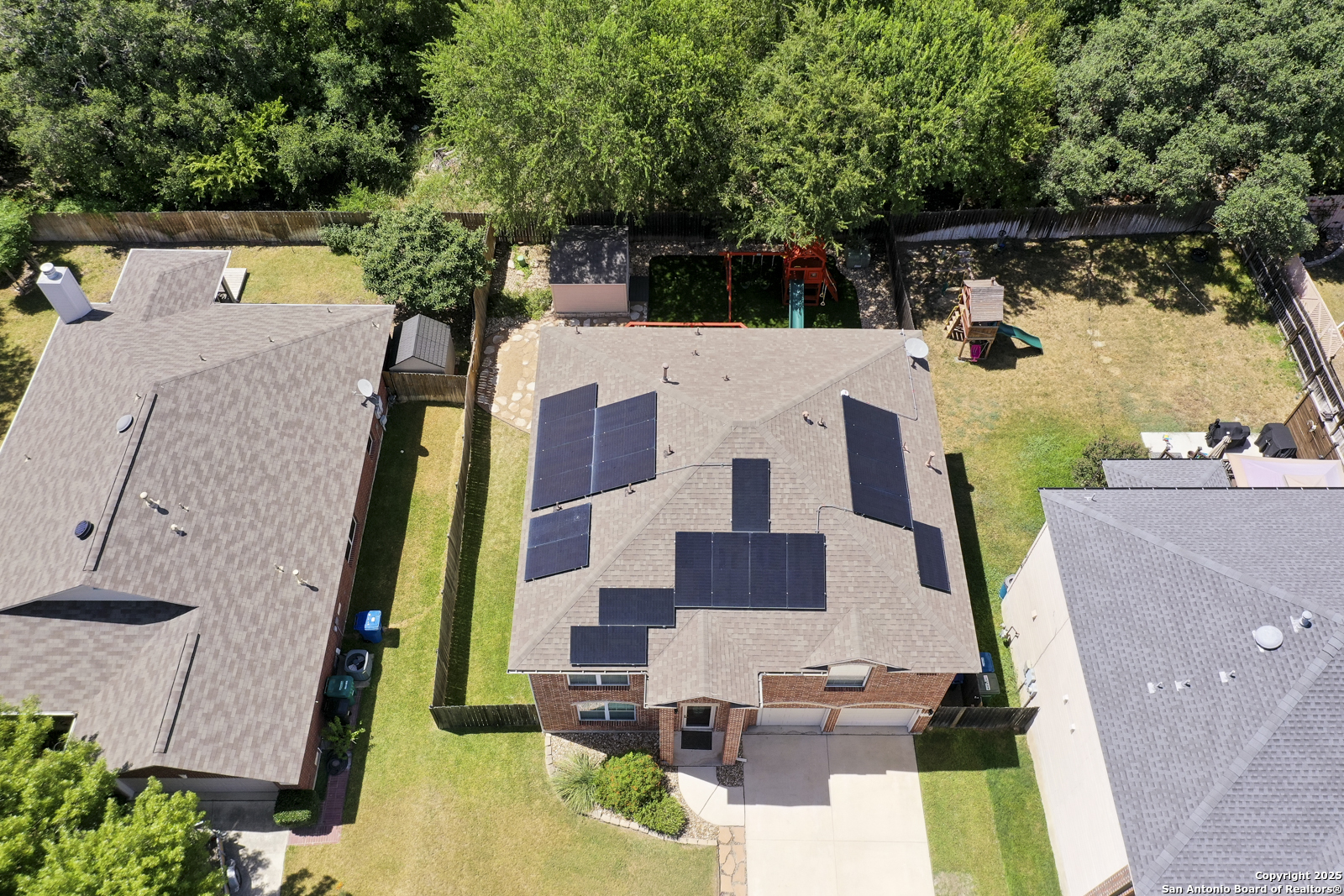 Welcome to 9515 Braun Shore, a beautifully updated and meticulously maintained home located in the highly desirable Braun Willow community of San Antonio, Texas. This spacious 3-bedroom, 2.5-bathroom residence offers 2,854 square feet of stylish living space, thoughtfully designed for comfort, functionality, and effortless entertaining. As you enter, you're welcomed by a formal living room and dining area, ideal for hosting family gatherings or dinner parties. Toward the heart of the home lies a stunning island kitchen, renovated in 2019, featuring black stainless steel appliances, ample cabinetry, and abundant countertop space that will delight any home chef. Upstairs, a large loft bathed in natural light offers the perfect flex space for a home office, media room, or play area. The oversized primary suite provides a true retreat, complete with a spa-like ensuite bathroom fully renovated in 2023. This luxurious space includes a deep soaking tub, a separate walk-in shower, dual vanities, and a generous walk-in closet. The secondary bedrooms are equally spacious, while the renovated half bath adds both convenience and style. Energy efficiency and peace of mind come standard here thanks to fully paid-off solar panels, a Generac generator, a new HVAC system installed in 2018, a water heater from 2016, and a new roof added in 2017. Fresh carpeting was also installed in 2025, ensuring the home feels modern and move-in ready. Step outside to your private backyard oasis, where a large wooden deck provides the ideal setting for outdoor dining and entertaining. The yard includes a children's playset, a storage shed, and is fully fenced with direct access to a tranquil greenbelt-perfect for those who appreciate space, privacy, and nature. The home also features a two-car garage with an EV charger, catering to today's eco-conscious buyers. This established, tree-lined neighborhood is also part of the acclaimed Northside Independent School District and offers close proximity to local parks, dining, shopping, and major San Antonio attractions. With modern upgrades, energy-efficient features, and a location that blends peaceful living with city convenience, 9515 Braun Shore is the perfect place to call home. Don't miss your opportunity to own one of the most thoughtfully improved properties in the area.