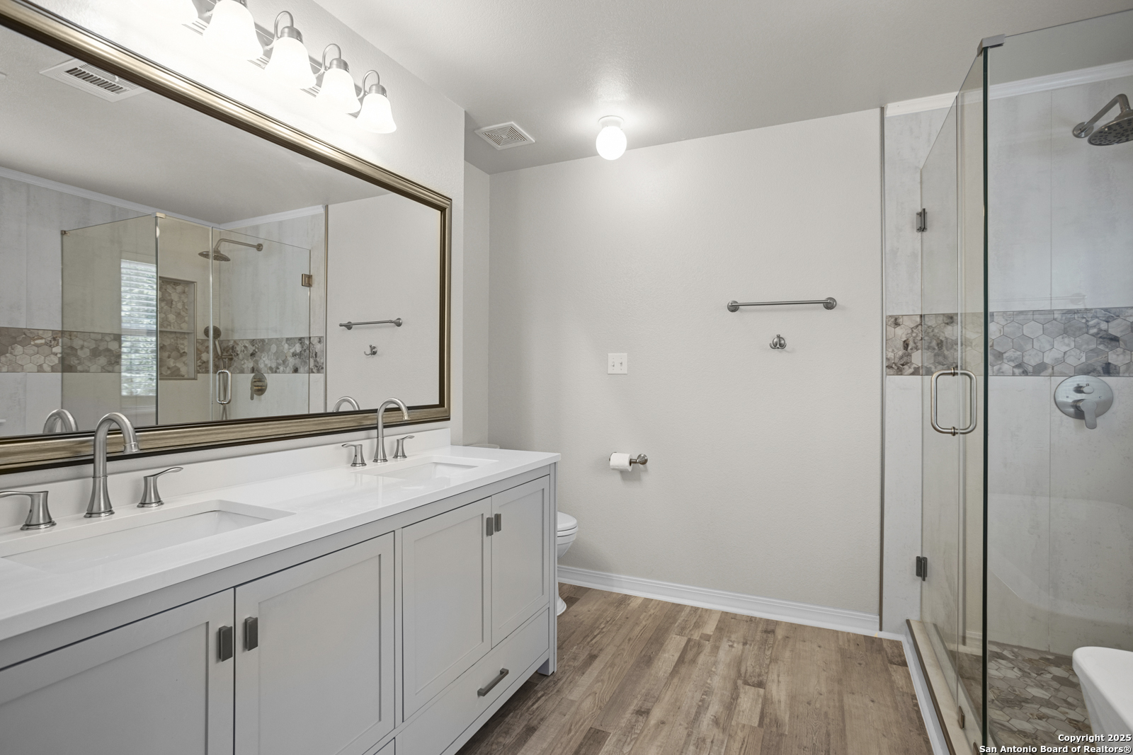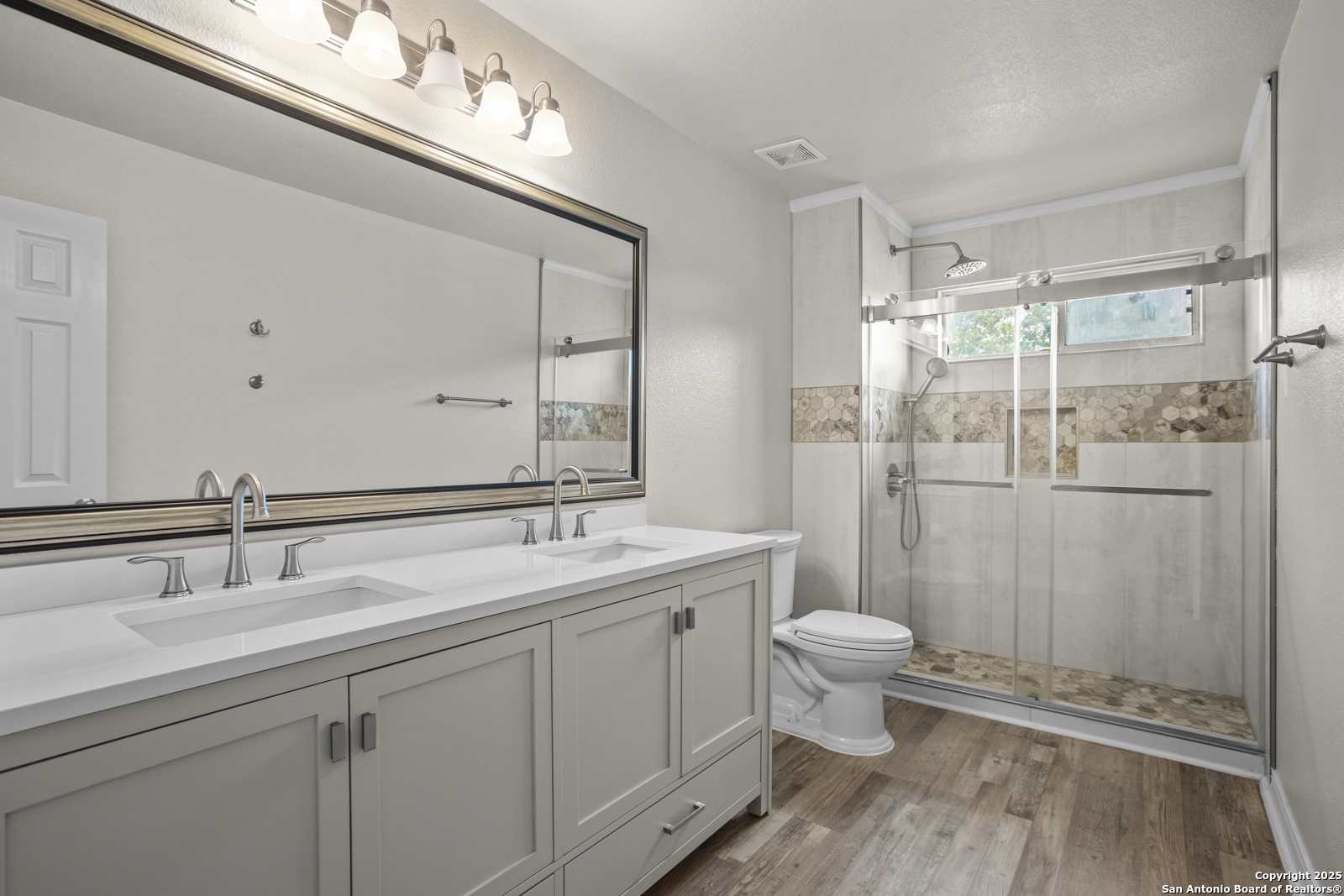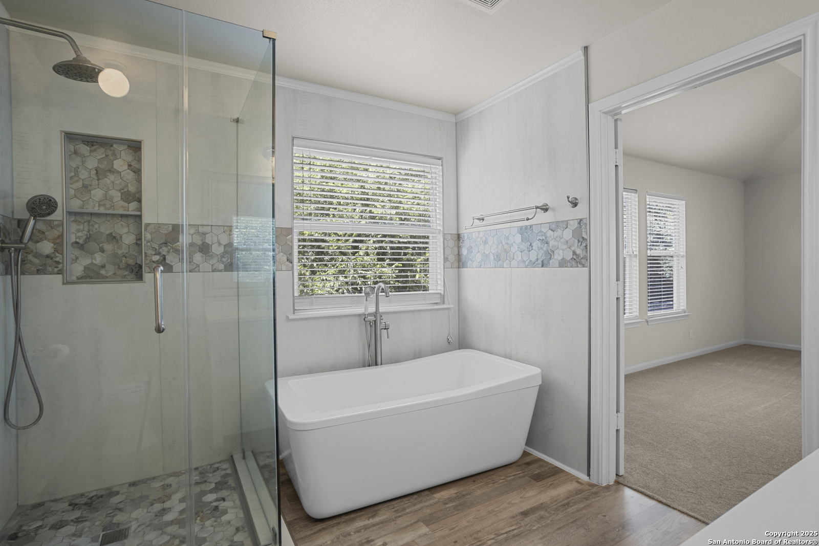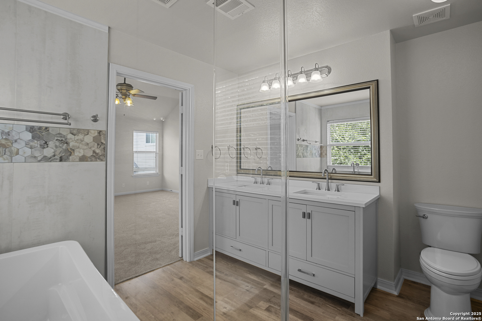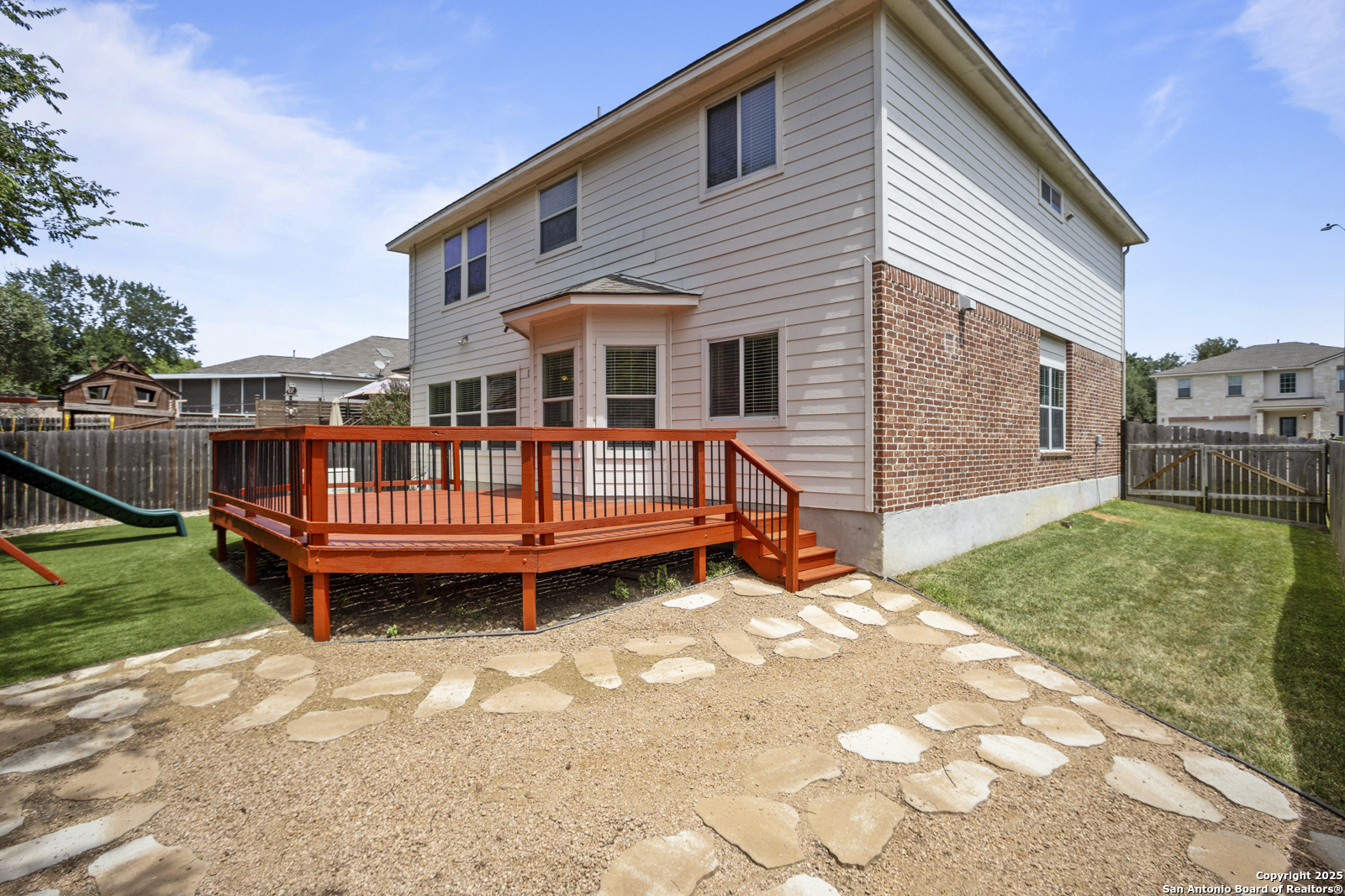 Welcome to 9515 Braun Shore, a beautifully updated and meticulously maintained home located in the highly desirable Braun Willow community of San Antonio, Texas. This spacious 3-bedroom, 2.5-bathroom residence offers 2,854 square feet of stylish living space, thoughtfully designed for comfort, functionality, and effortless entertaining. As you enter, you're welcomed by a formal living room and dining area, ideal for hosting family gatherings or dinner parties. Toward the heart of the home lies a stunning island kitchen, renovated in 2019, featuring black stainless steel appliances, ample cabinetry, and abundant countertop space that will delight any home chef. Upstairs, a large loft bathed in natural light offers the perfect flex space for a home office, media room, or play area. The oversized primary suite provides a true retreat, complete with a spa-like ensuite bathroom fully renovated in 2023. This luxurious space includes a deep soaking tub, a separate walk-in shower, dual vanities, and a generous walk-in closet. The secondary bedrooms are equally spacious, while the renovated half bath adds both convenience and style. Energy efficiency and peace of mind come standard here thanks to fully paid-off solar panels, a Generac generator, a new HVAC system installed in 2018, a water heater from 2016, and a new roof added in 2017. Fresh carpeting was also installed in 2025, ensuring the home feels modern and move-in ready. Step outside to your private backyard oasis, where a large wooden deck provides the ideal setting for outdoor dining and entertaining. The yard includes a children's playset, a storage shed, and is fully fenced with direct access to a tranquil greenbelt-perfect for those who appreciate space, privacy, and nature. The home also features a two-car garage with an EV charger, catering to today's eco-conscious buyers. This established, tree-lined neighborhood is also part of the acclaimed Northside Independent School District and offers close proximity to local parks, dining, shopping, and major San Antonio attractions. With modern upgrades, energy-efficient features, and a location that blends peaceful living with city convenience, 9515 Braun Shore is the perfect place to call home. Don't miss your opportunity to own one of the most thoughtfully improved properties in the area.