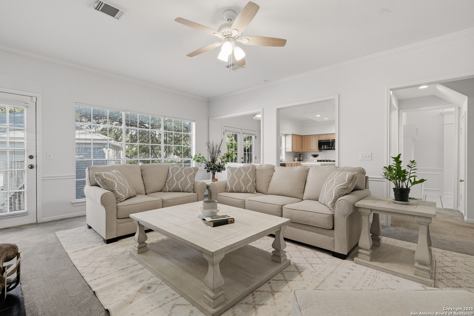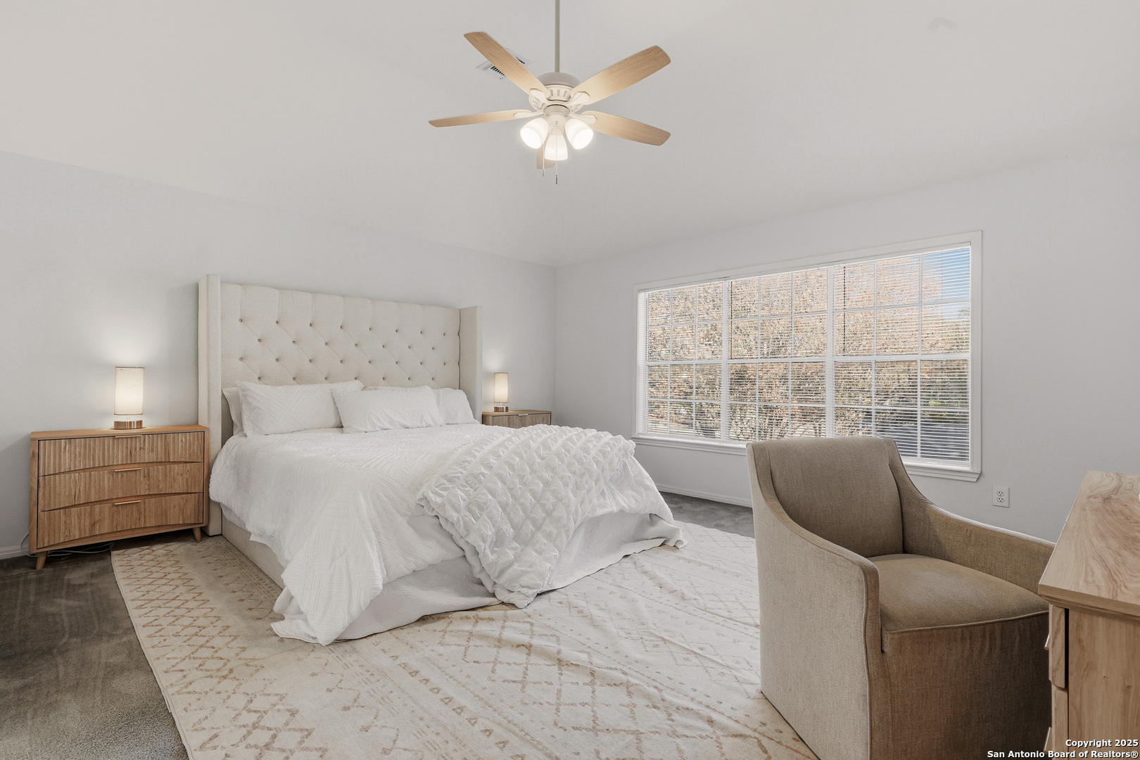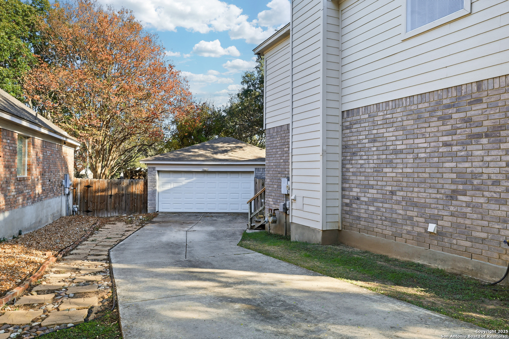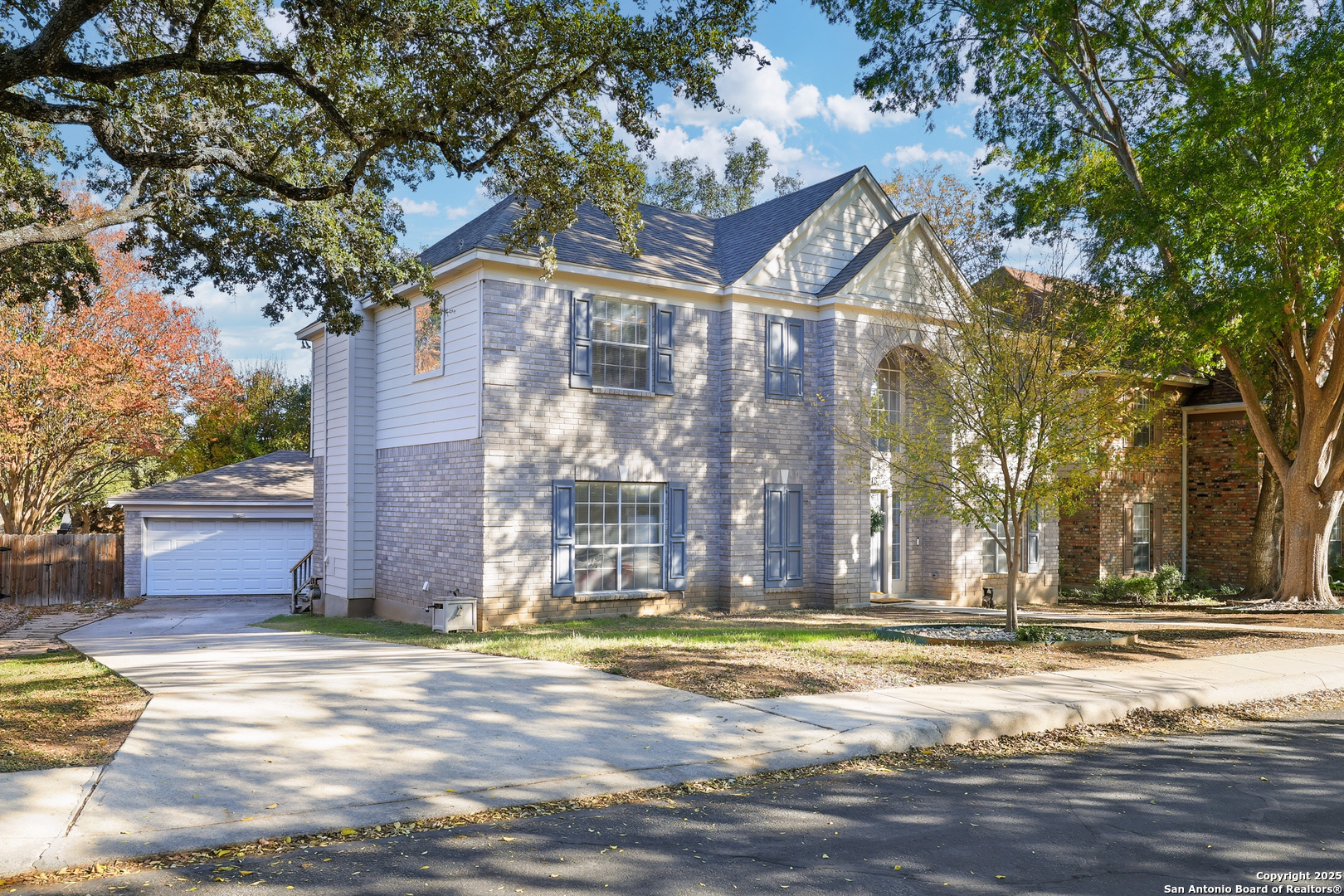 OPEN HOUSE SATURDAY 12/13 - 12:00-3:00 PM! Discover a beautifully maintained 4-bedroom, 2.5-bath home offering over 2,500 sq ft of comfortable living, two spacious living areas, and an oversized detached two-car garage-all in one of the most central, convenient locations in San Antonio. This home blends timeless charm with thoughtful modern upgrades throughout. Inside, the home feels peaceful and quiet, with tall ceilings, a vaulted primary suite, and large bay windows that fill the space with natural light. Recent updates include brand-new appliances, fresh paint, sanitized carpets, upgraded lighting throughout, new chandeliers, and fans in every bedroom and the formal living room. Kitchen, bathroom, and laundry plumbing and fixtures have also been recently updated for smooth, worry-free function. Major system improvements give this home impressive long-term value. Upgrades include a whole-house water filtration system, correctly sealed and balanced HVAC components, dual Bluetooth-controlled attic fans for better energy efficiency, a cleaned and shaded condenser for optimal cooling, and an attic evaporator adjusted to drain properly outside. The water heater was relocated and upgraded, and the home is equipped with hardwired fire and gas-detection alarms for enhanced safety. ADT security equipment-including cameras and sensors-conveys with the home. Exterior improvements include updated porch lighting, new weatherproof outlets and hose bibs, repaired fencing, refreshed landscaping, and garage lighting. Enjoy a spacious backyard with morning sun and comfortable shade in the afternoons-perfect for relaxing on the deck with a cup of coffee or for barbeques with family and friends Additional perks include Google Fiber availability, natural gas for both the fireplace and appliances, LED lighting inside and out, attic lighting with power, and plenty of driveway parking-enough for multiple large vehicles. All of this in a quiet, welcoming neighborhood with fantastic amenities: a large community pool, playgrounds, tennis/pickleball and basketball courts, and convenient school bus pickup nearby. Shopping, restaurants, and easy access to 1604, I-10, and 410 make everyday life effortless. This home is traditional, elegant, comfortable-and truly has that "it" factor. Come see why living here just feels easy.