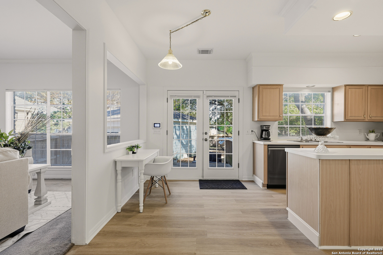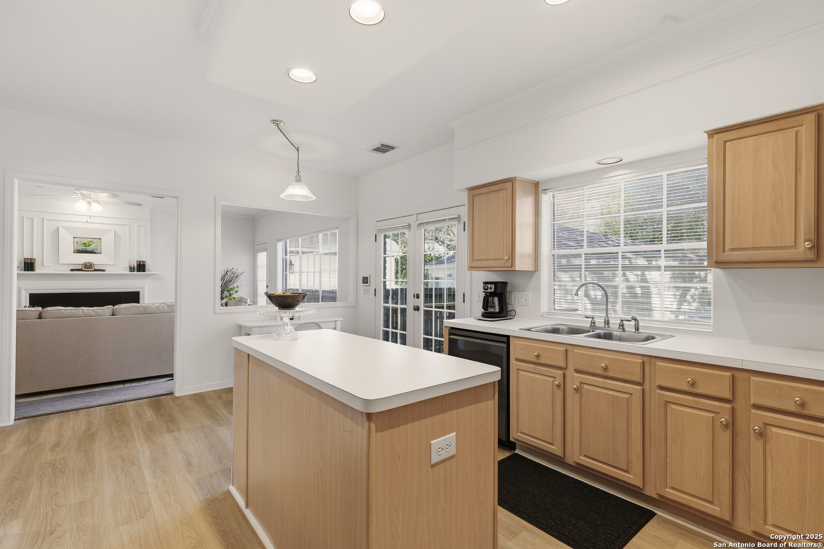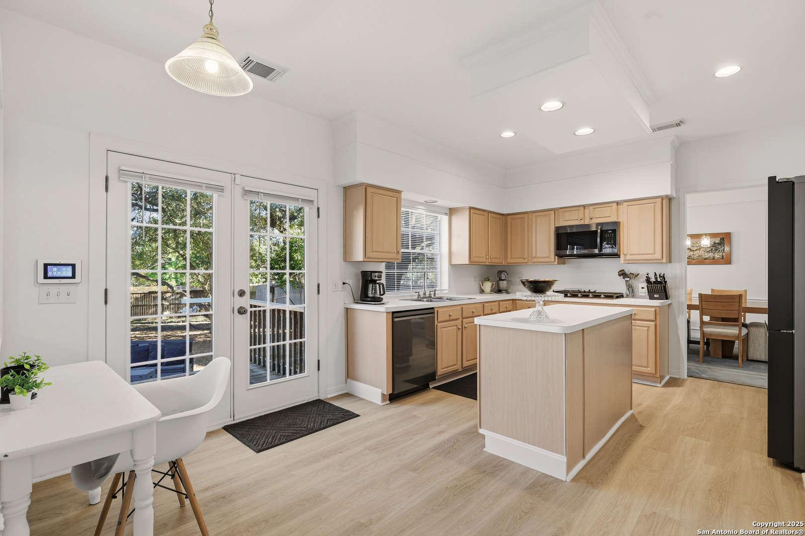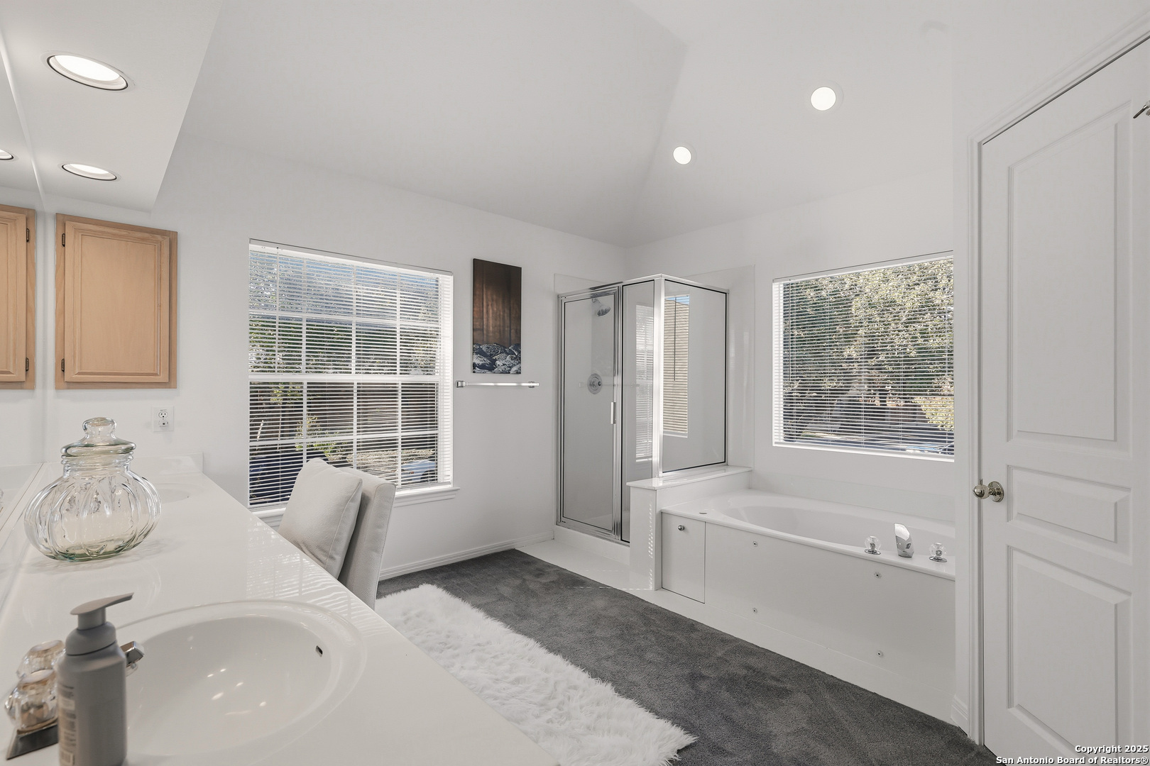 OPEN HOUSE SATURDAY 12/13 - 12:00-3:00 PM! Discover a beautifully maintained 4-bedroom, 2.5-bath home offering over 2,500 sq ft of comfortable living, two spacious living areas, and an oversized detached two-car garage-all in one of the most central, convenient locations in San Antonio. This home blends timeless charm with thoughtful modern upgrades throughout. Inside, the home feels peaceful and quiet, with tall ceilings, a vaulted primary suite, and large bay windows that fill the space with natural light. Recent updates include brand-new appliances, fresh paint, sanitized carpets, upgraded lighting throughout, new chandeliers, and fans in every bedroom and the formal living room. Kitchen, bathroom, and laundry plumbing and fixtures have also been recently updated for smooth, worry-free function. Major system improvements give this home impressive long-term value. Upgrades include a whole-house water filtration system, correctly sealed and balanced HVAC components, dual Bluetooth-controlled attic fans for better energy efficiency, a cleaned and shaded condenser for optimal cooling, and an attic evaporator adjusted to drain properly outside. The water heater was relocated and upgraded, and the home is equipped with hardwired fire and gas-detection alarms for enhanced safety. ADT security equipment-including cameras and sensors-conveys with the home. Exterior improvements include updated porch lighting, new weatherproof outlets and hose bibs, repaired fencing, refreshed landscaping, and garage lighting. Enjoy a spacious backyard with morning sun and comfortable shade in the afternoons-perfect for relaxing on the deck with a cup of coffee or for barbeques with family and friends Additional perks include Google Fiber availability, natural gas for both the fireplace and appliances, LED lighting inside and out, attic lighting with power, and plenty of driveway parking-enough for multiple large vehicles. All of this in a quiet, welcoming neighborhood with fantastic amenities: a large community pool, playgrounds, tennis/pickleball and basketball courts, and convenient school bus pickup nearby. Shopping, restaurants, and easy access to 1604, I-10, and 410 make everyday life effortless. This home is traditional, elegant, comfortable-and truly has that "it" factor. Come see why living here just feels easy.