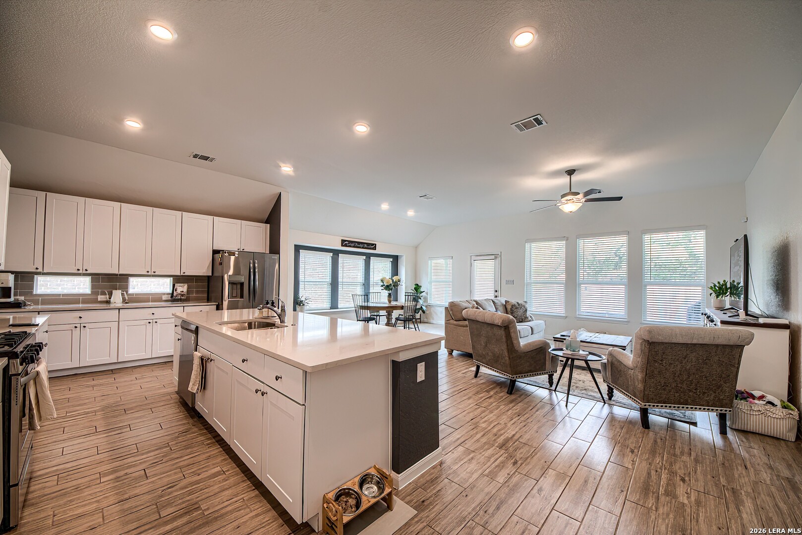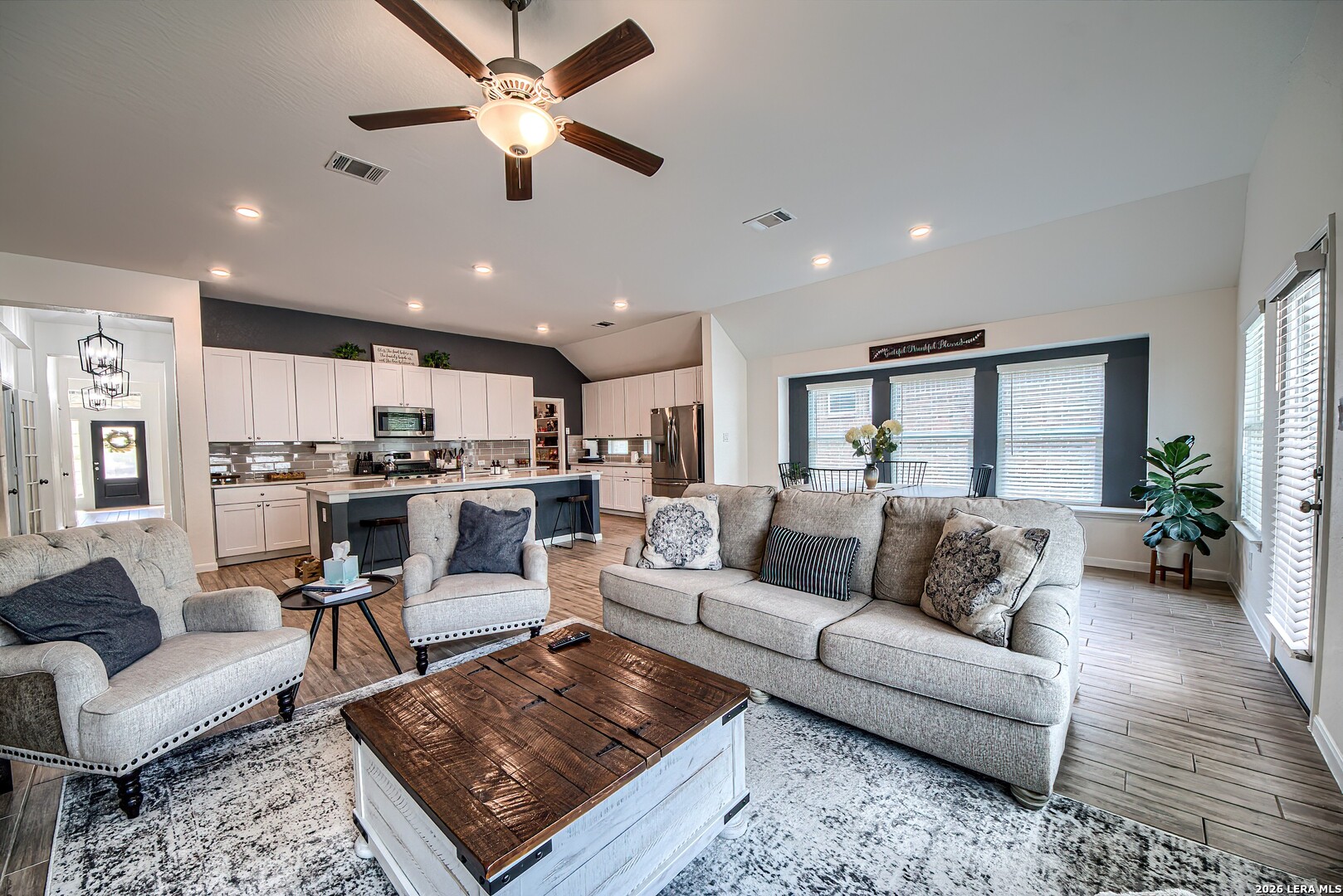 9523 Norfolk Wheel | San Antonio, TX 78254 Close to Lackland Air Force Base * Top Schools * Beautiful Home Welcome to this beautifully designed single-story home situated on a premium corner lot in Northwest San Antonio-perfectly positioned for those relocating or seeking convenient access to Lackland Air Force Base. A beautiful glass front door welcomes you home, set beneath a covered front porch that offers both charm and shade-perfect for enjoying the Texas evenings. Built in 2021, this spacious 4-bedroom, 3-bath home offers approximately 2,376 square feet of thoughtfully designed living space, combining modern finishes with energy-efficient features for today's lifestyle. The open-concept layout is ideal for everyday living and entertaining, seamlessly connecting the kitchen, dining, and living areas. The kitchen is a true showstopper, featuring stainless steel appliances with gas cooking and beautiful, elegant white countertops with a clean, seamless finish. This kitchen offers extensive counter space and abundant cabinetry, providing exceptional storage, all complemented by natural light that fills the space and creates a warm, inviting feel. At the heart of the home is a huge, inviting center island-perfect for gathering, meal prep, and entertaining. A charming window seat adds the perfect cozy touch, creating a bright and welcoming space to relax, dine, or enjoy your morning coffee. Enjoy added value with a tankless water heater, water softener, garage door opener, blinds, security system, and a full sprinkler system already in place-making this home truly move-in ready. The private primary suite offers a relaxing retreat with an en-suite bath featuring dual vanities, a Texas-sized walk-in shower, and a spacious walk-in closet. The suite is enhanced by three large windows that flood the room with natural light, creating a bright and airy atmosphere. In addition, a well-placed linen closet provides extra storage and everyday convenience-because you can never have too much storage. Three additional bedrooms provide flexibility for guests, a home office, or multi-generational living. One of the secondary bedrooms features a charming window seat, adding character and a cozy nook-perfect for reading or relaxing. Step outside and enjoy both a covered front porch and covered back patio-ideal for relaxing and entertaining while staying shaded from the Texas heat. The backyard backs to neighboring properties on acreage, offering a more open feel, enhanced privacy, and a peaceful setting. Combined with the corner lot, this home delivers both space and serenity. Top-Rated Schools (NISD) This home is zoned to highly regarded Northside ISD schools: Harlan High School Straus Middle School Dr. Pat Henderson Elementary School Located at the front of the community for easy access, this home is just minutes from local schools, H-E-B, and the expanding retail and dining scene in Northwest San Antonio. Ongoing road expansions will provide even quicker access to HWY 211, enhancing commutes to Lackland Air Force Base and major employers such as USAA, Valero, Microsoft, and Wells Fargo.