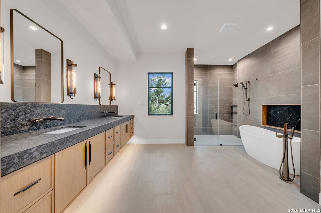 Experience refined living in this exquisite custom home located in Cantera Hills, thoughtfully designed to balance elegance and comfort. Featuring four generously sized bedrooms, including a serene master retreat with a spa-inspired bath, a private guest suite with en-suite bath, and two additional bedrooms joined by a Jack and Jill, every space offers comfort and sophistication. An expansive open flex space is ideal for a playroom, home office, or second living area. Entertain in style in the formal dining room and elegant living space, complemented by a chic powder bath. At the heart of the home lies a stunning central terrace; an architectural showpiece and a peaceful haven perfect for indoor/outdoor living. Luxury and livability come together seamlessly in this one-of-a-kind property.