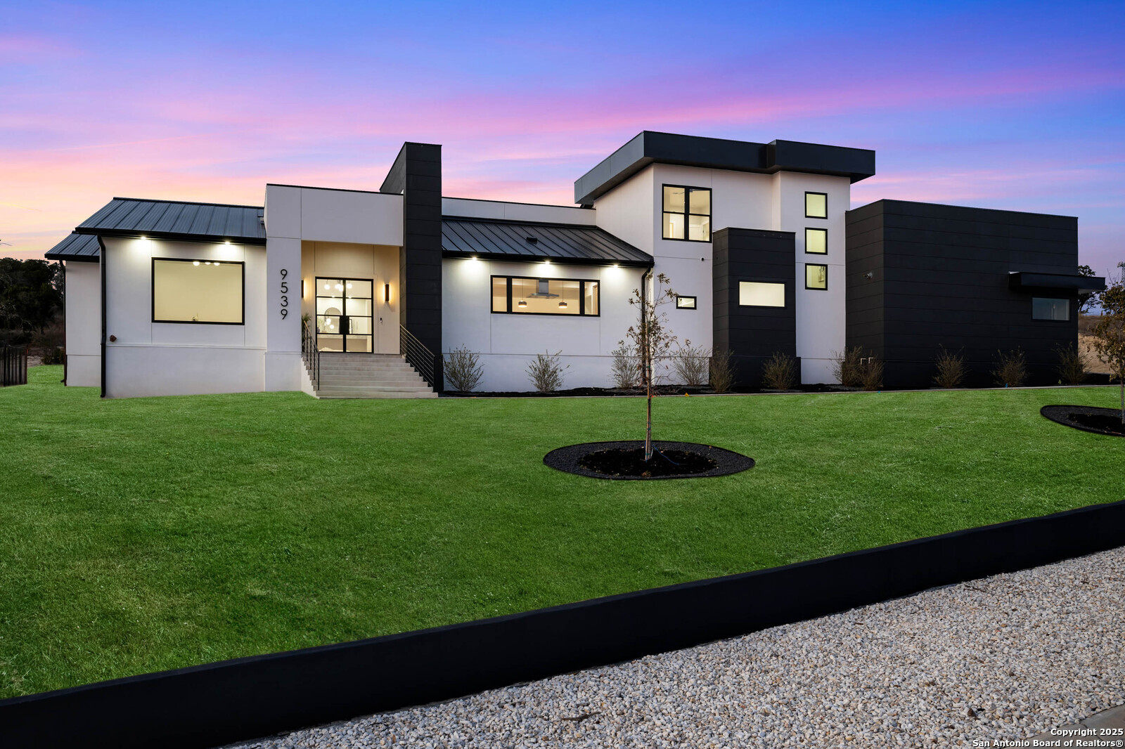 Introducing 9539 Lenox Hill - a contemporary triumph with panoramic views crafted on an elevated acre in the exclusive community of Cantera Hills. This 4,909 SF masterpiece was brilliantly built by Vergel Constructions. Craftsmanship can be seen in every detail and felt through every material selected throughout the home. Experience a stunning design around every corner with a floor plan that seamlessly blends indoor and outdoor living. Sliding glass doors and soaring ceilings with transom windows accentuate the floor to ceiling fireplace in the living room and custom chandelier in the open concept dining room. The kitchen is one of a kind- with a picture perfect window framing the finest hill country views while you saute your favorite breakfast with the sun peeking through the hilltops. A stunning floating stainless steel vent hood is framed by the warm white oak cabinetry and serene Quartzite countertops that waterfall over the edges of the 12 foot island. Stainless Steel Jennair appliances complete this culinary dream with a 5-burner gas cooktop, wall oven, microwave, dishwasher, wine fridge, refrigerator and freezer towers. The property offers 5 bedrooms, 5 full bathrooms, plus an office, downstairs flex room, upstairs game room, 3-car garage and a spacious outdoor covered patio that overlooks a private hillside. The spacious primary suite offers a private sitting area with sliding glass doors that bring in nature into your morning routine. Replenish in a spa-like bathroom with dual vanities, floating tub, walk in shower with dual shower heads and a custom walk-in closet. Set on a scenic 0.97 acre site that offers the perfect backdrop for a custom swimming pool and future pickleball court. Located within the gated luxury home neighborhood of Cantera Hills, only 10 minutes to the Luxury Shops at La Cantera, Six Flags Fiesta Texas and The Rim.