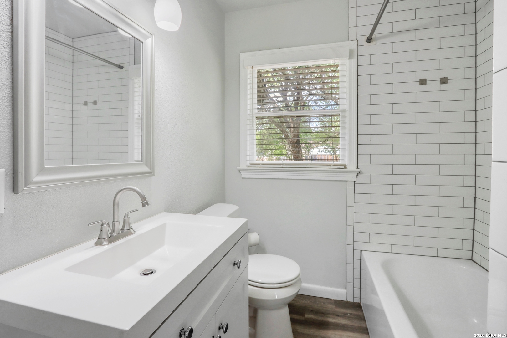 Conveniently located near downtown Seguin, retail, restaurants, and medical. This circa 1940s 3 bedroom 2 bath home features gorgeous original wood floors with some modern updates. Kitchen features butcher block counters, subway tile backsplash, and a cozy breakfast/dining area. This .24 acre lot includes mature shade trees, two storage units, carport, and additional alley access. Owner's suite has direct access to the back deck and expansive yard.