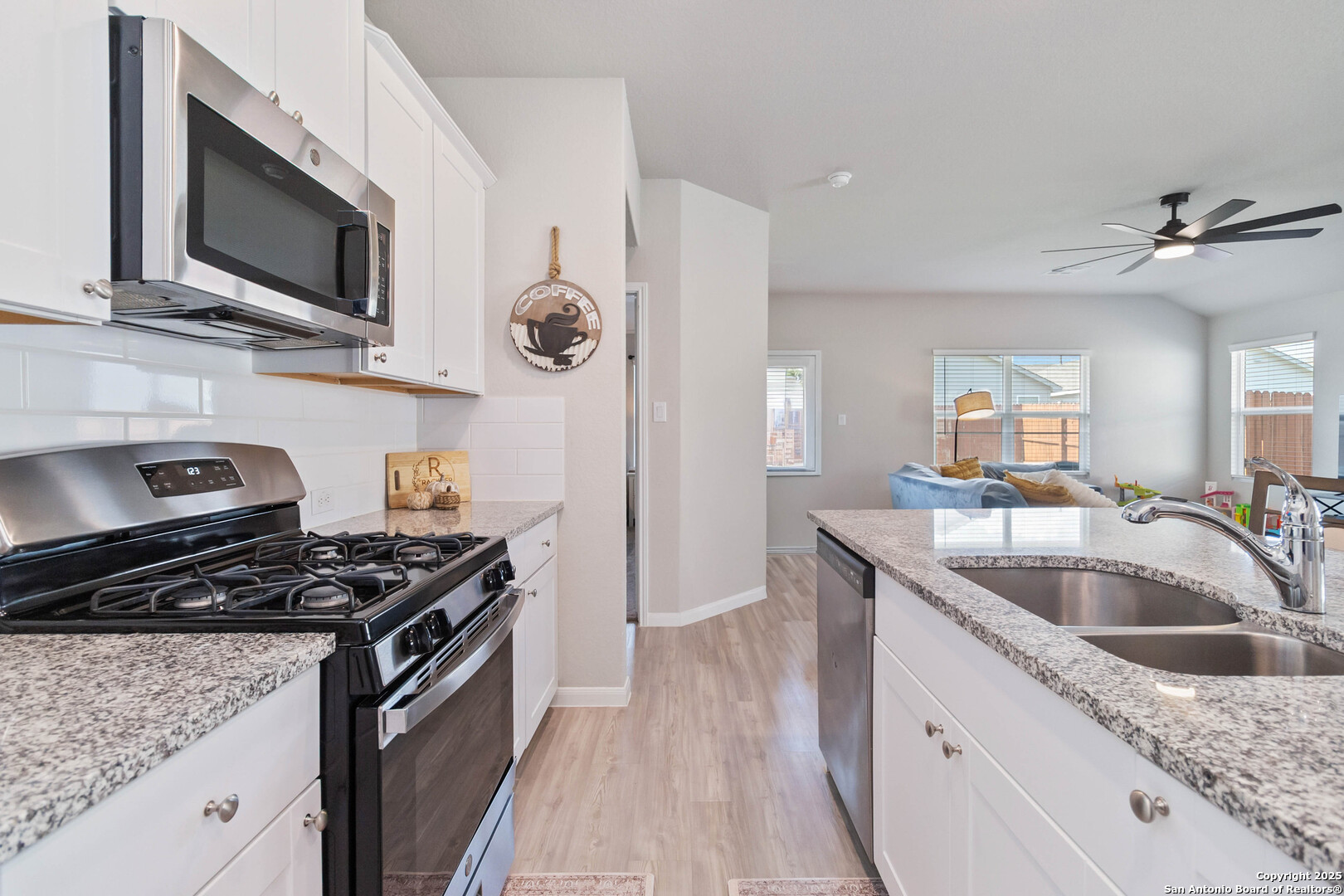 This inviting single-story home features an open-concept design with 3 bedrooms, 2 full baths, and a versatile study that can also serve as a flex space or fourth bedroom. Guests are welcomed by a charming foyer that flows seamlessly into the spacious main living area. The centerpiece of the home is the gorgeous kitchen, complete with granite countertops, a large island, and a dining area that opens to the family room-perfect for both everyday living and entertaining. Designed with convenience and efficiency in mind, the home includes modern features such as a RING doorbell, keyless entry, a tankless water heater, garage door opener, a Rheem water softener and solar panels. With its functional layout, energy-efficient features, and stylish finishes, this home truly offers the best of comfort and practicality.