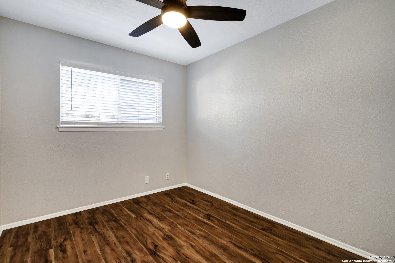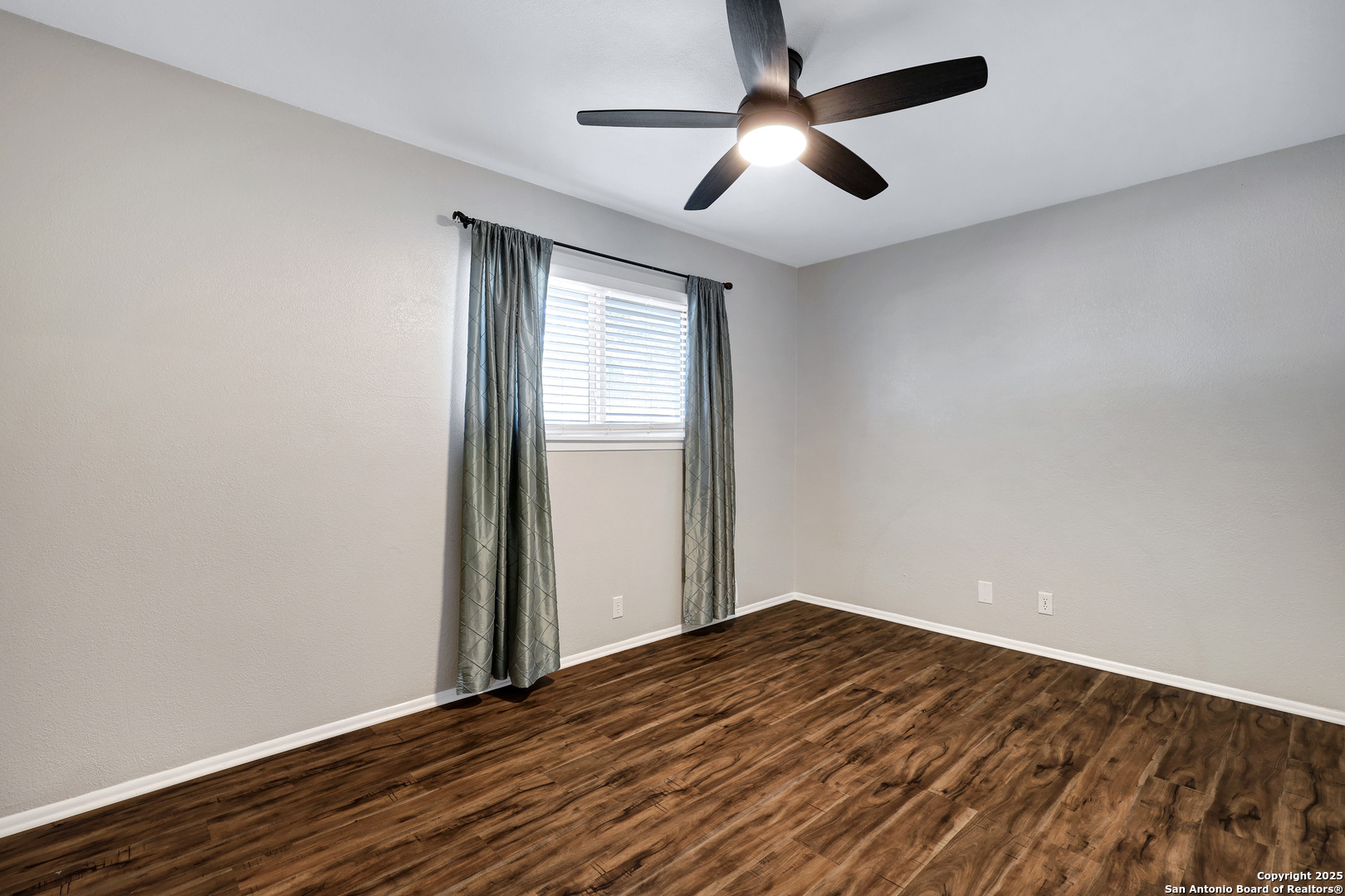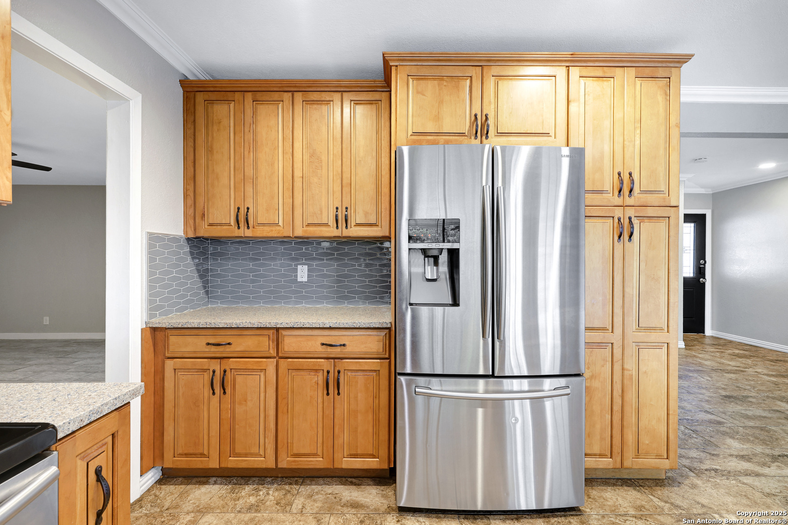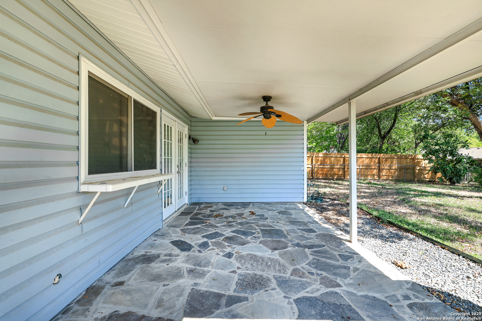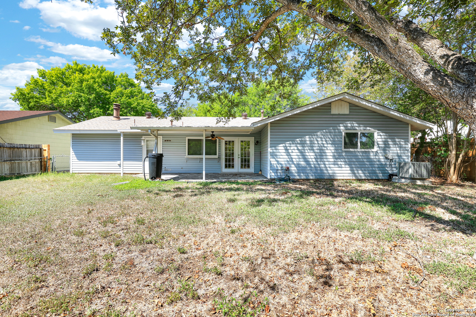 Beautifully updated single-story home offering convenient access to Lackland AFB, the 151 business corridor, Sea World, shopping, dining, and more. This residence features no carpet, with ceramic tile and luxury vinyl flooring throughout for style and easy maintenance. The versatile front room may serve as a living area or formal dining space, while the converted garage provides an additional living space to suit your needs. The kitchen has been fully updated and includes a refrigerator, generous cabinet storage, and expansive counter space. A washer and dryer are also included for added convenience. The primary suite showcases a custom closet and an en suite bath with a beautifully renovated walk-in shower. Outdoors, enjoy a spacious yard enhanced by mature trees, a covered patio ideal for relaxation, and a storage shed.