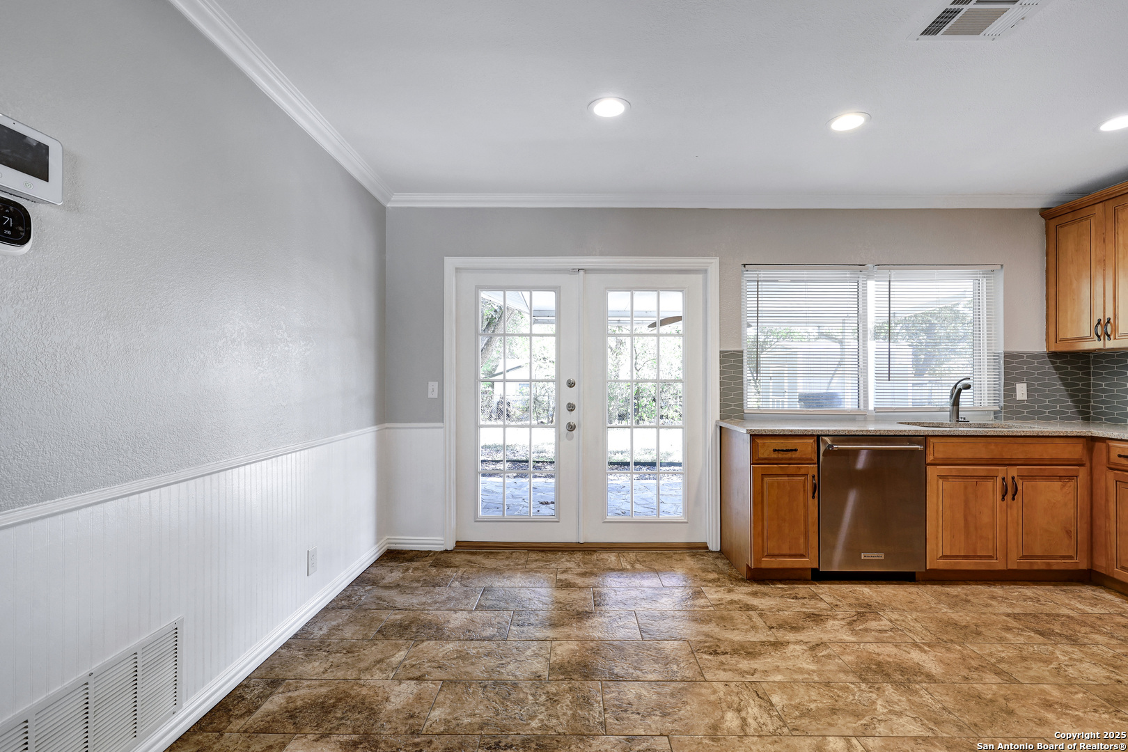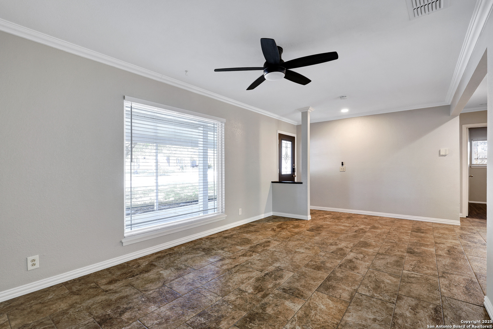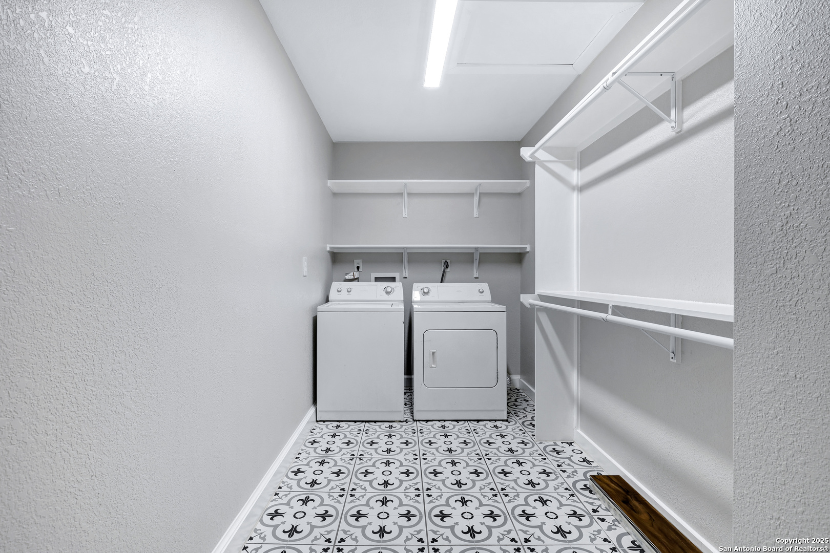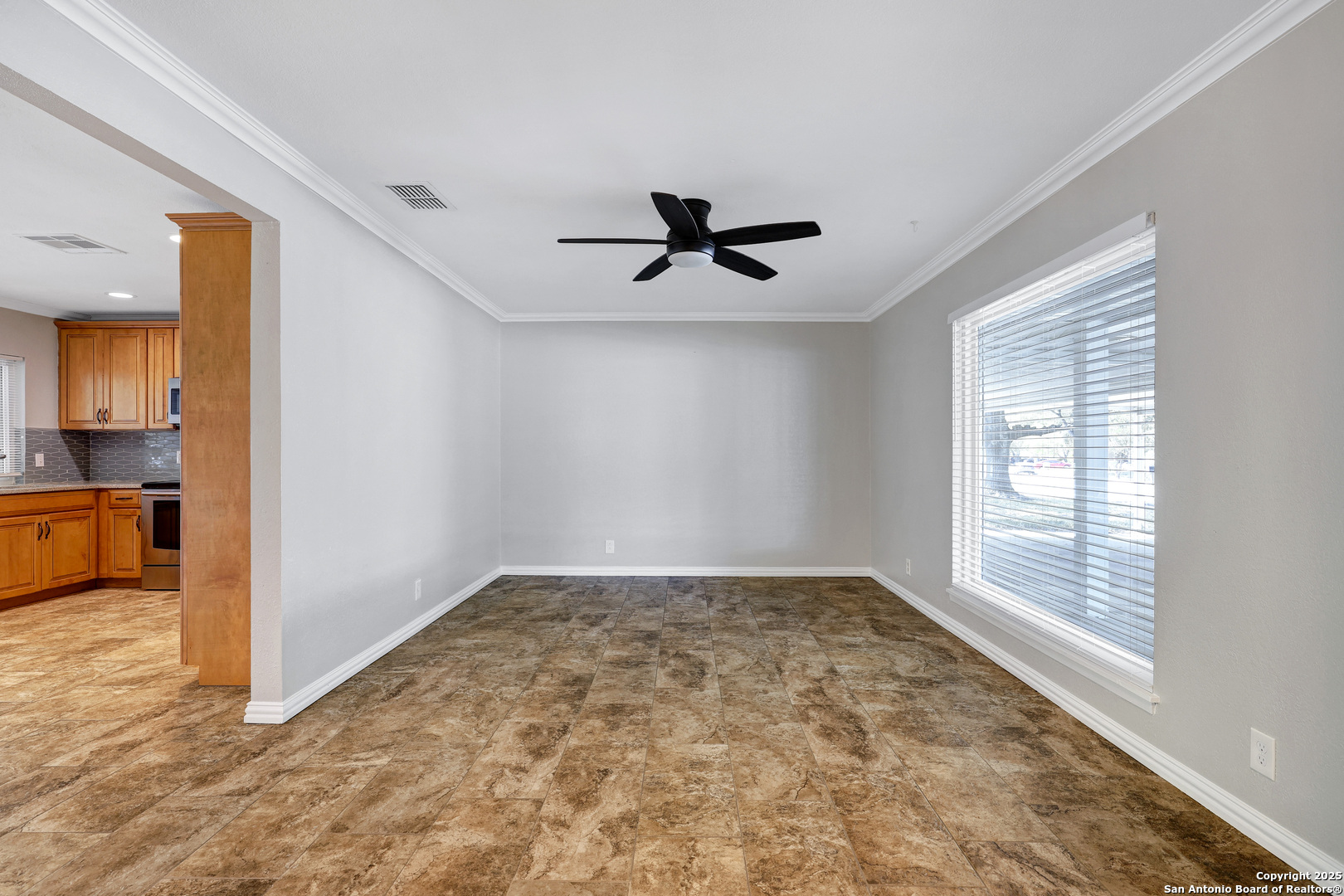 Beautifully updated single-story home offering convenient access to Lackland AFB, the 151 business corridor, Sea World, shopping, dining, and more. This residence features no carpet, with ceramic tile and luxury vinyl flooring throughout for style and easy maintenance. The versatile front room may serve as a living area or formal dining space, while the converted garage provides an additional living space to suit your needs. The kitchen has been fully updated and includes a refrigerator, generous cabinet storage, and expansive counter space. A washer and dryer are also included for added convenience. The primary suite showcases a custom closet and an en suite bath with a beautifully renovated walk-in shower. Outdoors, enjoy a spacious yard enhanced by mature trees, a covered patio ideal for relaxation, and a storage shed.