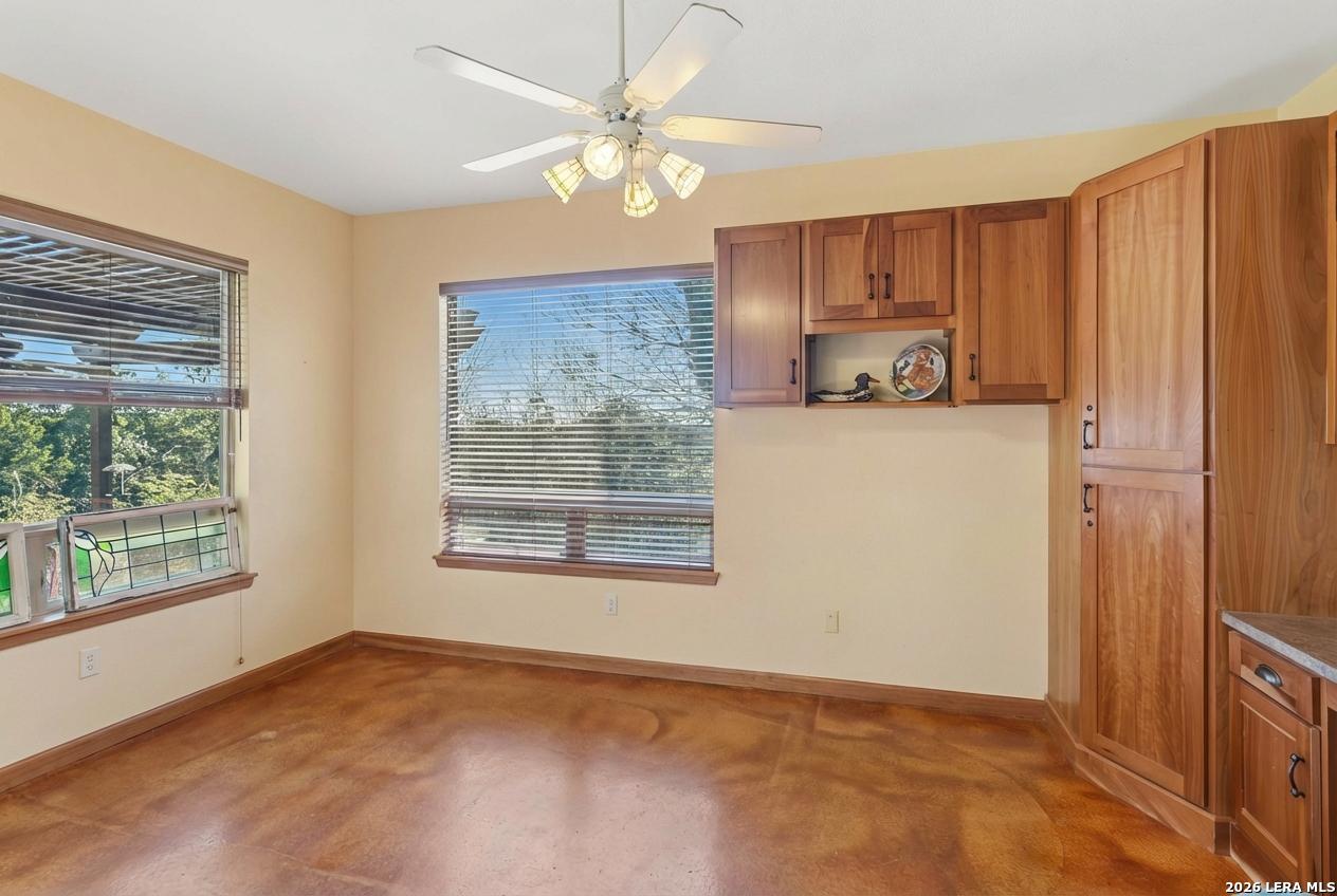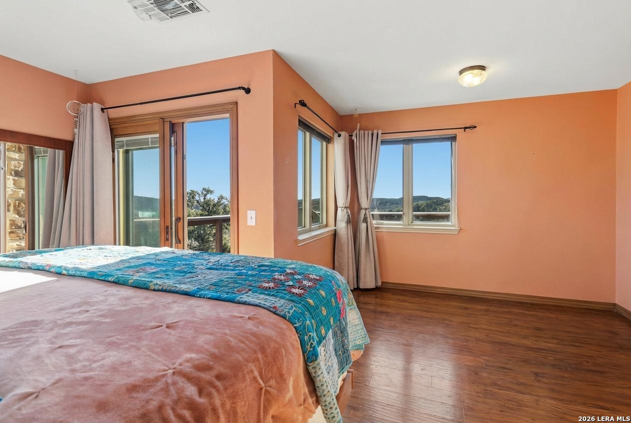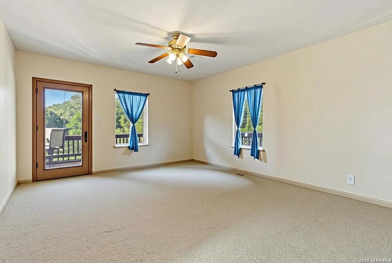 Discover this extraordinary Hill Country home set atop one of the highest hills in sought-after Grey Forest. Enjoy breathtaking panoramic views, rare privacy, and a peaceful retreat, all just minutes from city conveniences. Set on nearly two private acres surrounded by protected conservation land, this architecturally distinct custom home offers a truly special lifestyle. A circular drive, abundant parking, and over 100 mature live oak trees create a memorable first impression. Inside, light-filled spaces are designed for both everyday comfort and entertaining. The sunken living room features soaring ceilings, a striking stone gas fireplace, and oversized Pella windows framing unforgettable views. The flexible layout offers 4 bedrooms, three full baths, and multiple bonus spaces ideal for a home office, gym, rec room, or private guest suite with its own entrance, perfect for multigenerational living, long-term guests, or potential rental opportunities. A third-story moon loft, accessed by a spiral staircase, provides a unique escape with elevated views. The kitchen features cherry cabinetry, gas cooking, granite countertops, and generous storage. Outdoor living shines with nearly 1,200 sq ft of decks, patios, and porches, perfect for sunsets and stargazing. Premium upgrades include a standing-seam metal roof, recently refinished decks, tankless water heater, water softener, three serviced HVAC units, landscaping with new trees, front yard pond and walking trails. Ideally located near Old Town Helotes, La Cantera, The Rim, UTSA, major parks, and top-rated Northside ISD.