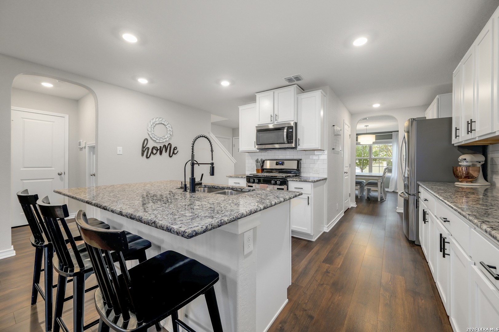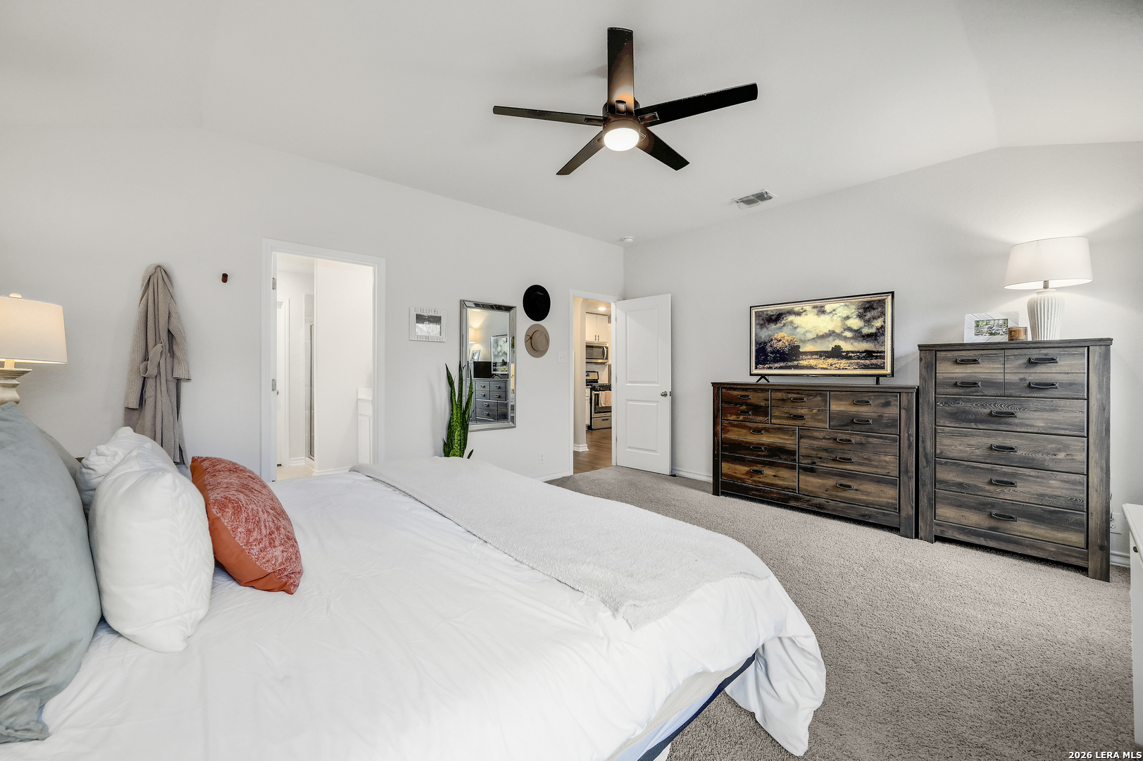 Move-in Ready 5-Bedroom Home with Primary Suite Downstairs in Valley Ranch Step inside this move-in ready home that has been thoughtfully cared for since it was built in 2021, offering buyers a newer option in Valley Ranch that shows beautifully compared to many resale homes. As you enter, you're welcomed by a bright open dining space that anchors the front of the home, creating a natural gathering place for holidays, dinners with friends, and everyday family life. The main living area flows easily into a light-filled kitchen featuring white cabinetry, granite countertops, gas cooking, and generous prep space, making it both functional and inviting for daily living and entertaining. The primary suite is privately located downstairs, providing a quiet retreat from the rest of the home. Upstairs you'll find four additional bedrooms plus a versatile loft space that works perfectly as a game room, media area, or second living space. Step outside to enjoy the extended covered patio, ideal for relaxing evenings or weekend grilling. The flat backyard offers space for pets, play, or gardening, and the storage shed is included for convenient outdoor storage. Located in the highly desirable Valley Ranch community within Northside ISD, residents enjoy resort-style neighborhood amenities including multiple pools, water slides, sports courts, playgrounds, and walking trails. The neighborhood elementary school is conveniently located within the community, keeping school drop-offs close to home. With five true bedrooms, flexible living space, and a well-maintained, newer home that stands out from older resale options, this property offers a compelling value in one of Northwest San Antonio's most popular communities.