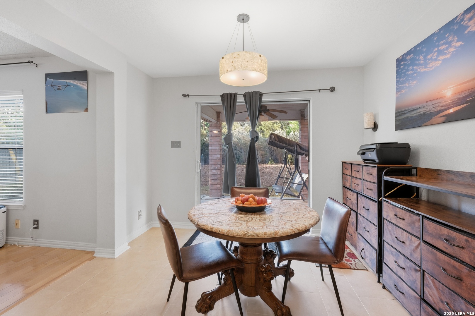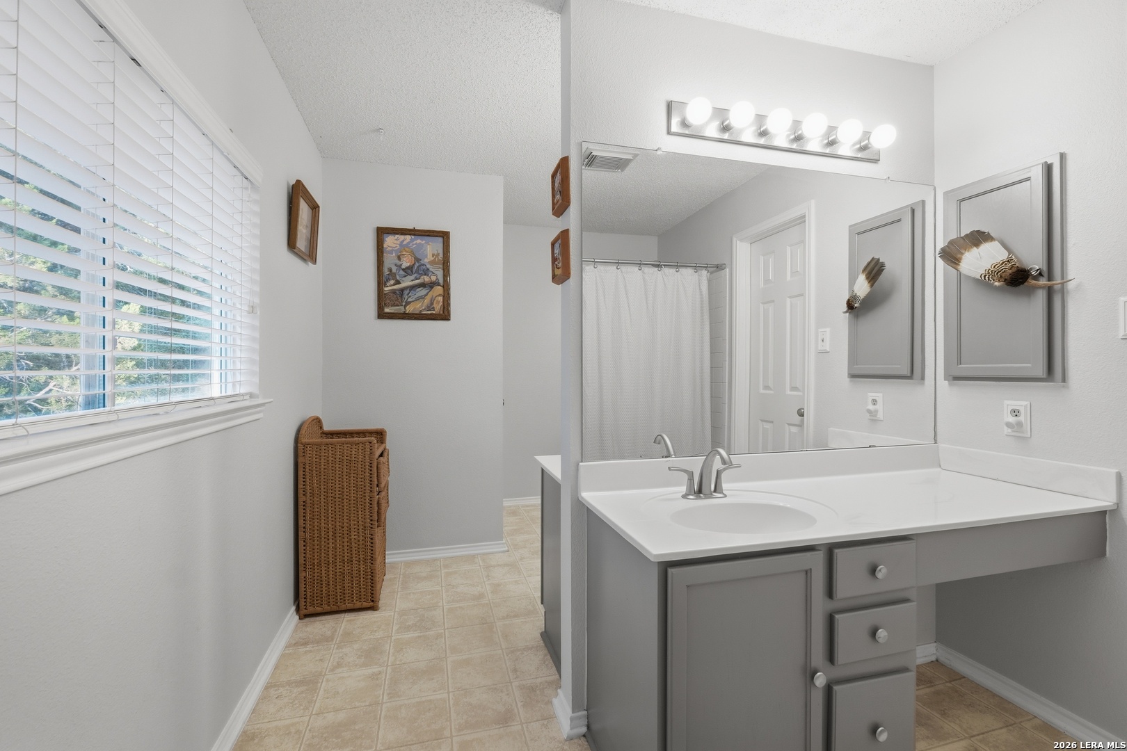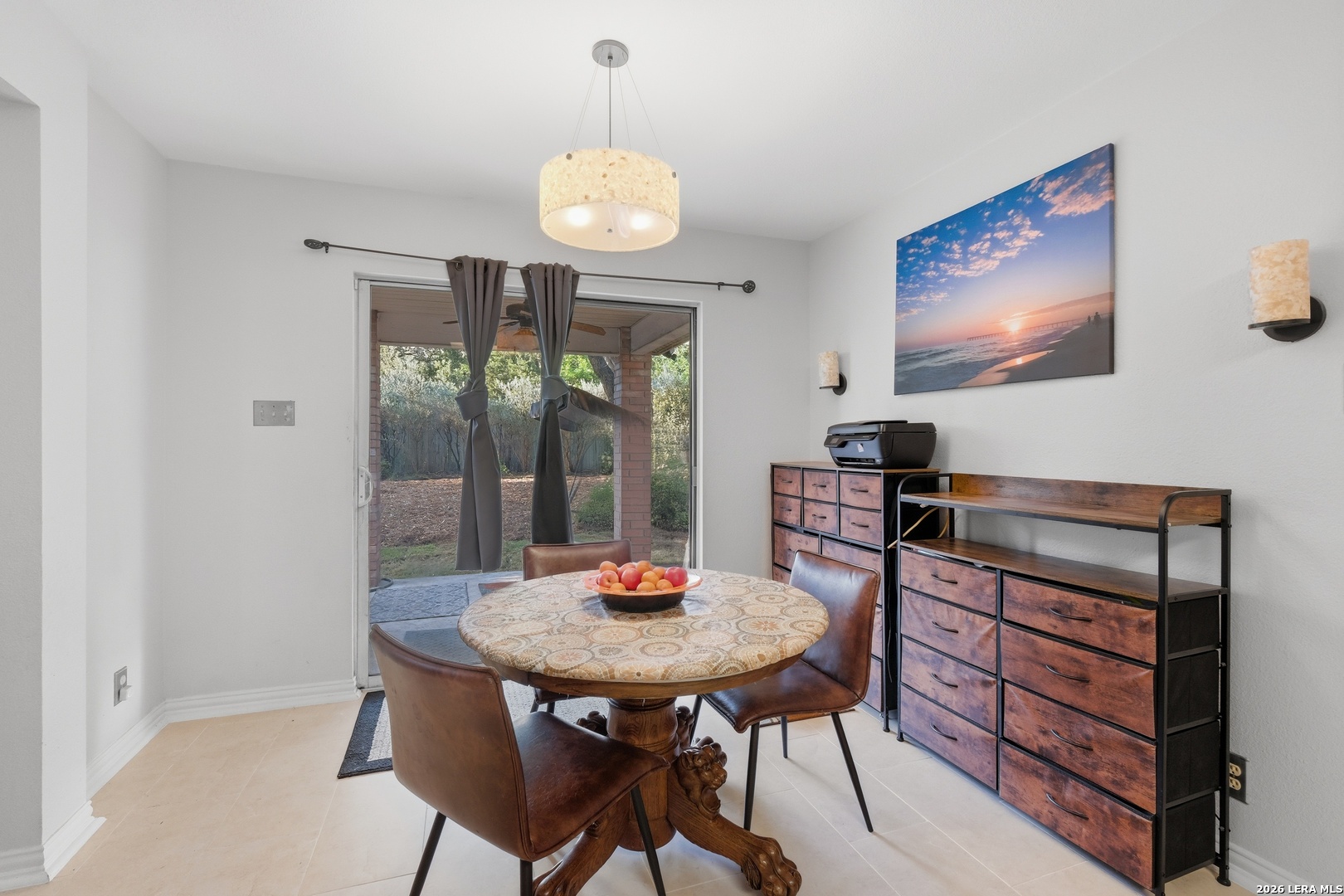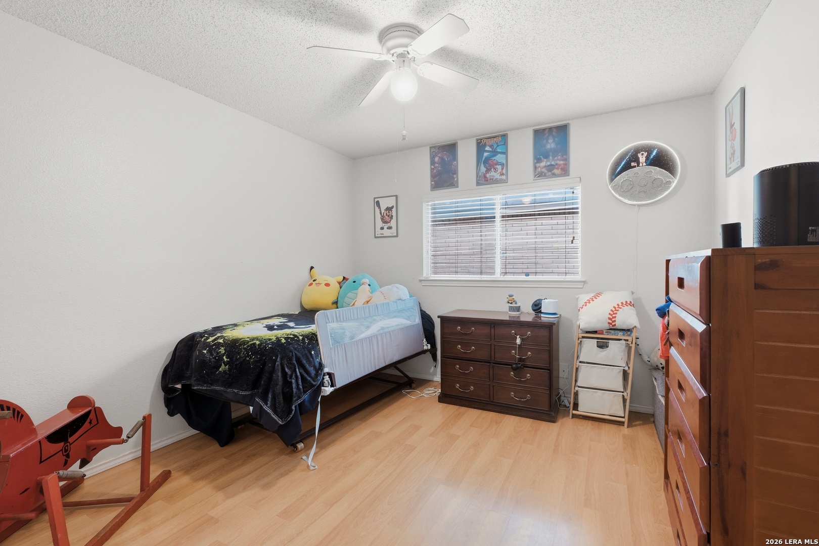 Tucked inside Loop 1604 in San Antonio, this move-in ready home offers a rare combination of location, updates, and privacy with no neighbors directly behind. Conveniently located near state parks, shopping, dining, and award winning Northside ISD schools, this property checks the boxes for both lifestyle and accessibility. The full masonry exterior and mature trees create strong curb appeal as you arrive. Inside, the open floor plan features wood laminate and ceramic tile flooring throughout the main living areas, ideal for durability in high traffic spaces. The kitchen is equipped with stainless steel appliances, a breakfast bar, and overlooks the main living area-perfect for entertaining and everyday living. Natural flow between the kitchen and living space makes this layout highly functional and desirable. Upstairs, a large game room provides flexible space for a second living area, home office, or media room. The primary suite is oversized, with room for a sitting area, and includes a full bathroom with separate vanities. Secondary bedrooms offer comfortable space for family or guests. The backyard is shaded by mature trees and features a covered patio, creating a private outdoor living space with no immediate rear neighbors. Major updates include a roof replaced in 2025, HVAC replaced in 2023, carpet replaced in 2022, and a water heater plus kitchen appliances updated in 2019. An additional highlight: a VA assumable loan may be available at a 5.25 interest rate-an exceptional opportunity for qualified buyers. Located in the Stonefield community, residents enjoy access to neighborhood amenities including a community pool, park, playground, and basketball court. The low annual HOA fee helps maintain the common areas and enhances the overall appeal of the neighborhood.