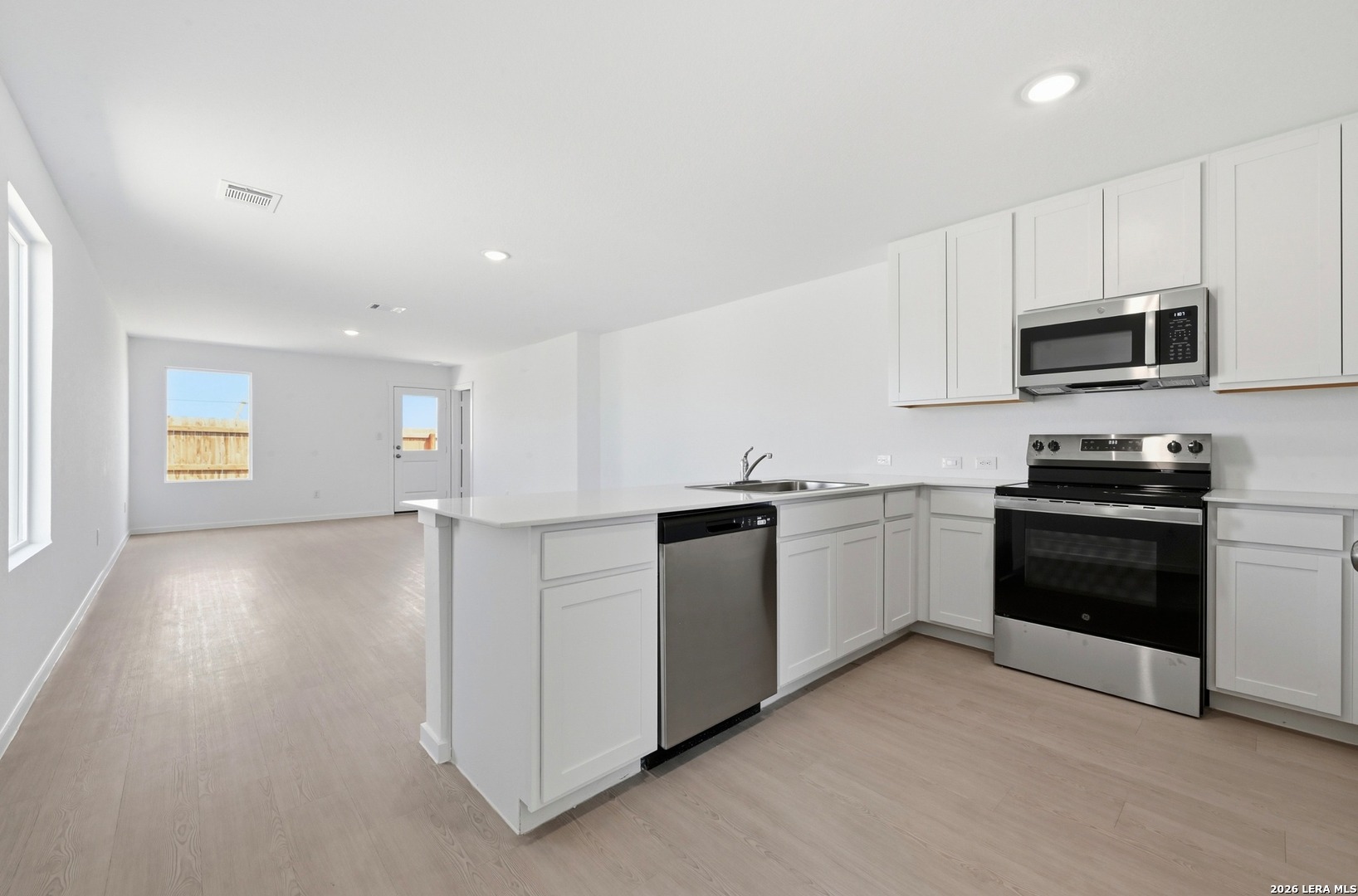 This single-story home with a spacious, open floor plan connecting the kitchen, dining area, and family room ideal for entertaining. Primary suite located at the front of the home, featuring an en-suite bathroom and spacious walk-in closet with 3 generously-sized additional bedrooms. Spacious fully fenced backyard, perfect for private outdoor activities. Located in the master planned Navarro Ranch community with clubhouse, swimming pool, park & playground.