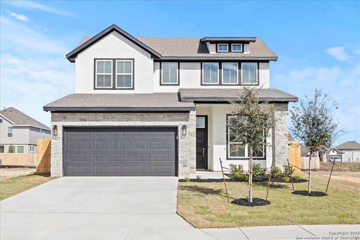 MOVE IN READY!! Welcome home to this stunning 4-bedroom, 3-bathroom home with a dedicated study & a spacious game room. 3 foot extension on the garage. The family room boasts soaring vaulted ceilings and large windows, creating a bright and inviting space. The kitchen island seamlessly overlooks the family room and breakfast area, offering a true open-concept design perfect for gatherings. Enjoy luxurious finishes throughout, including upgraded tile flooring, quartz countertops, and upgraded cabinetry with soft-close drawers. The primary retreat features separate vanities, a large walk-in shower, and an expansive walk-in closet. The thoughtful layout includes a secondary bedroom with a full bath on the main floor, while upstairs, you'll find a spacious game room, two additional bedrooms, and a full bathroom. This home is designed for convenience and comfort with full sod, a sprinkler system, a covered rear patio, and more.