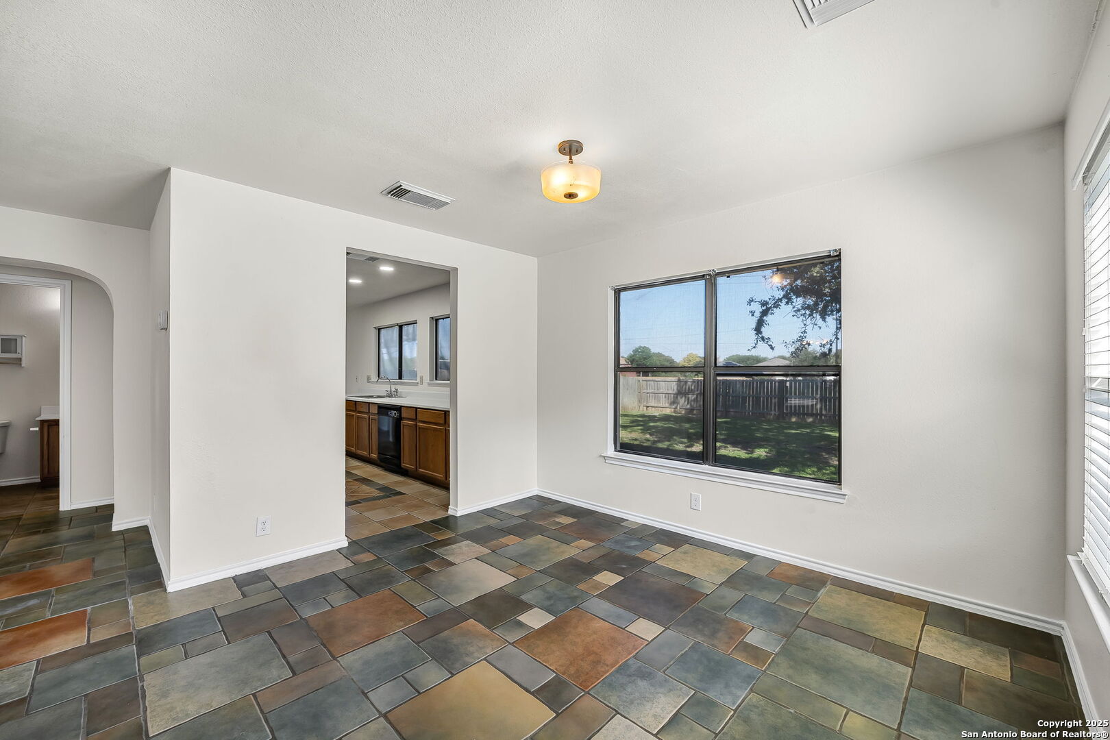Freshly updated with big-ticket improvements, a greenbelt backdrop, and priced to leave room for your vision. This 2,334-sq-ft home in Stanton Run offers four bedrooms, two and a half baths, and a two-car garage on a generous lot that backs to a greenbelt for added privacy. Inside, the updates shine: every ceiling has been refreshed, all popcorn removed, and the interior and exterior have been freshly painted. A brand-new roof with transferable warranty and a new outdoor AC unit mean peace of mind on major systems, while the open layout gives you flexibility to design the interior to your style. The large backyard offers both space and seclusion, perfect for entertaining, play, or future projects. Stanton Run puts you near everything: Old Town Helotes is just minutes away, and Government Canyon State Natural Area offers hiking and fresh air close by. Approximate drive times include 16 minutes to The Rim and La Cantera, 16 minutes to USAA, 12 minutes to Valero and UTSA, 10 minutes to Alamo Ranch, 12 minutes to Bandera Pointe, about 25 minutes to the airport, and roughly 25 minutes to downtown San Antonio. With its updates already in place, a private greenbelt setting, and pricing that leaves room for more improvements, this home delivers flexibility, value, and a location that connects you to both nature and city life.