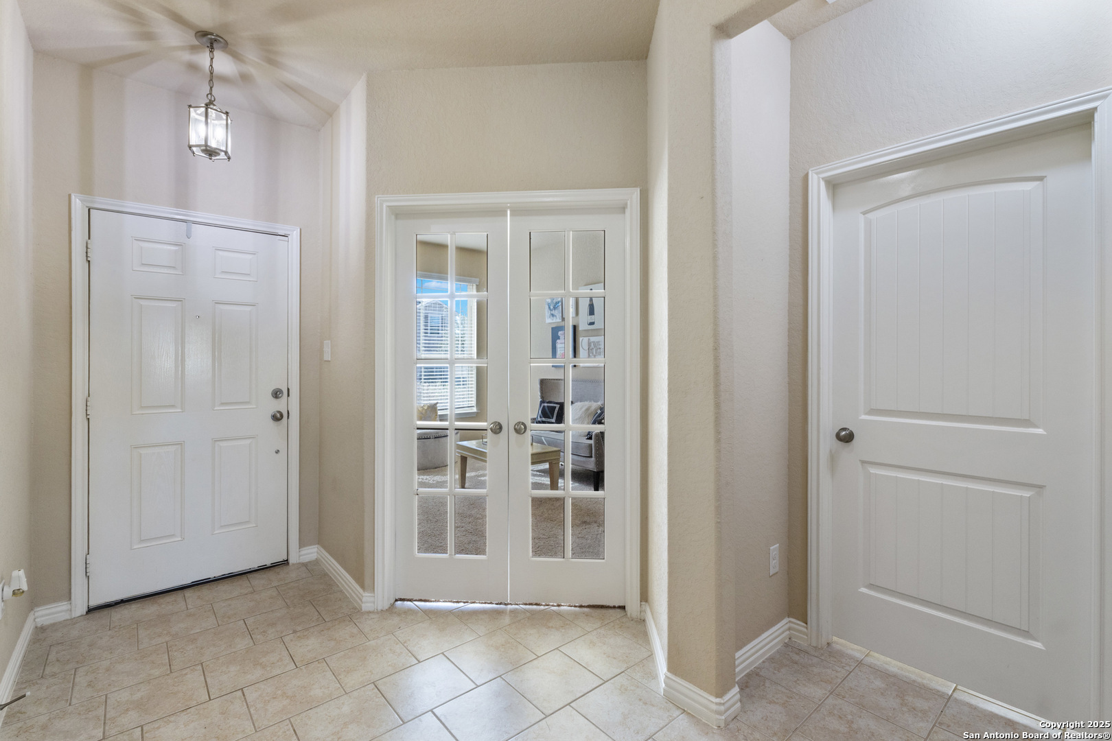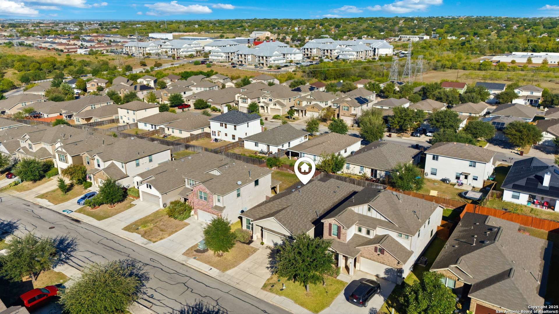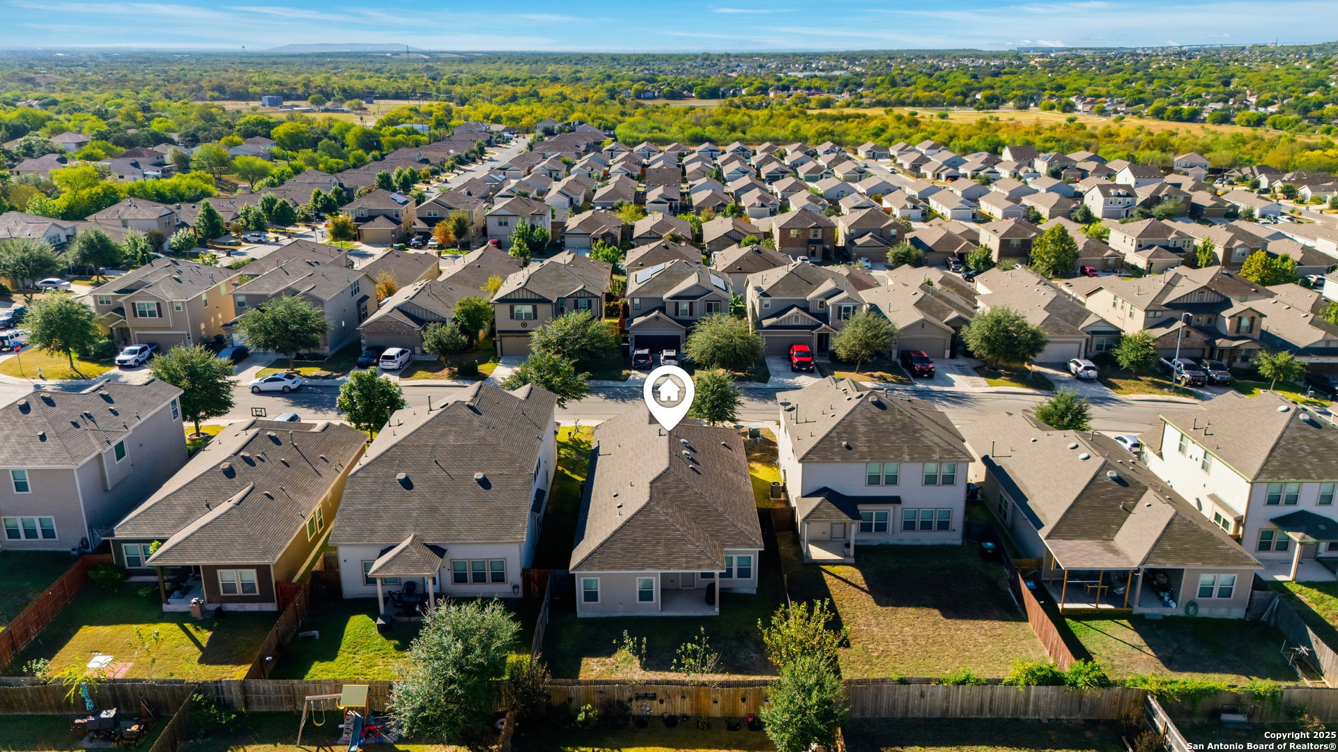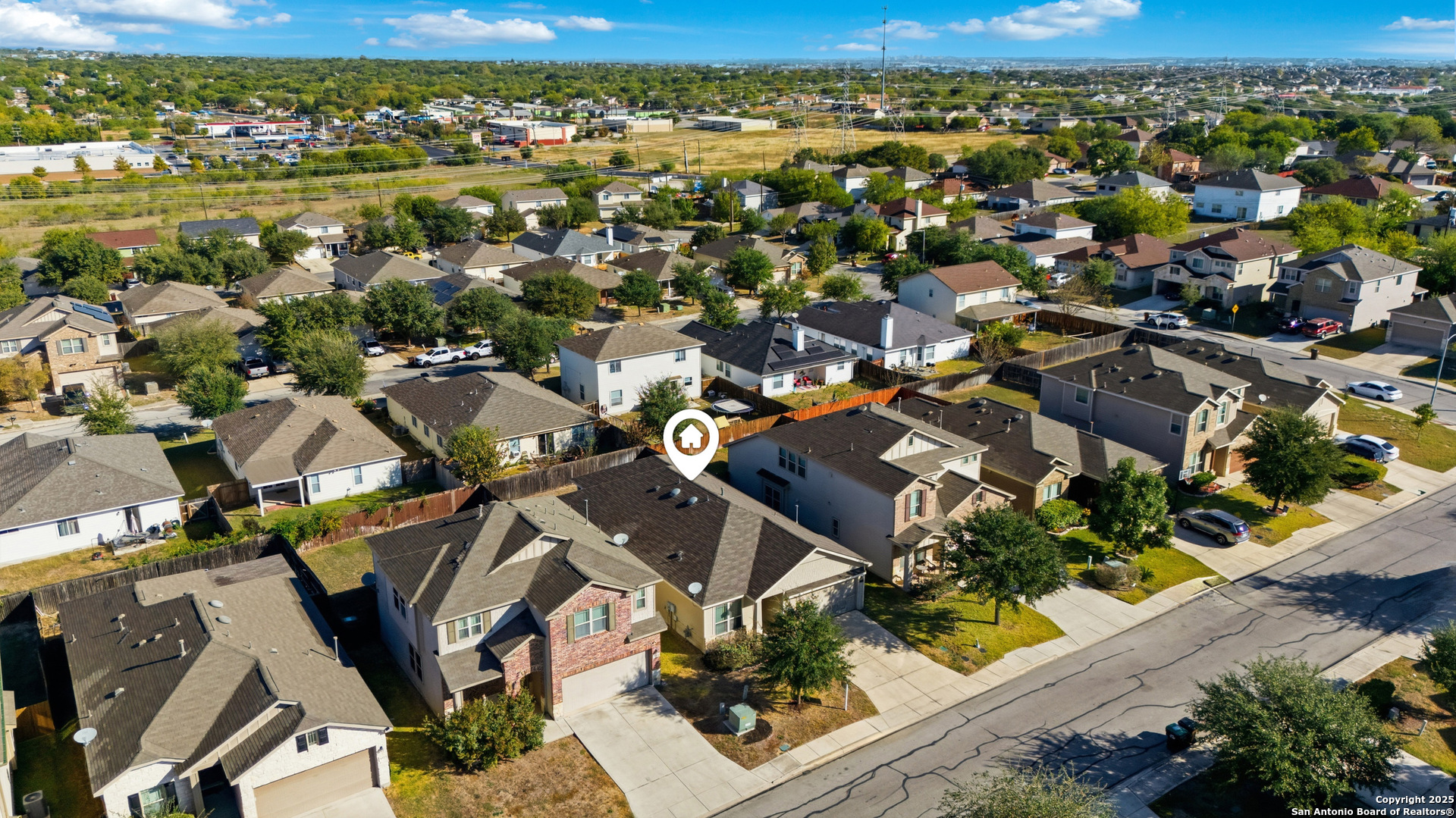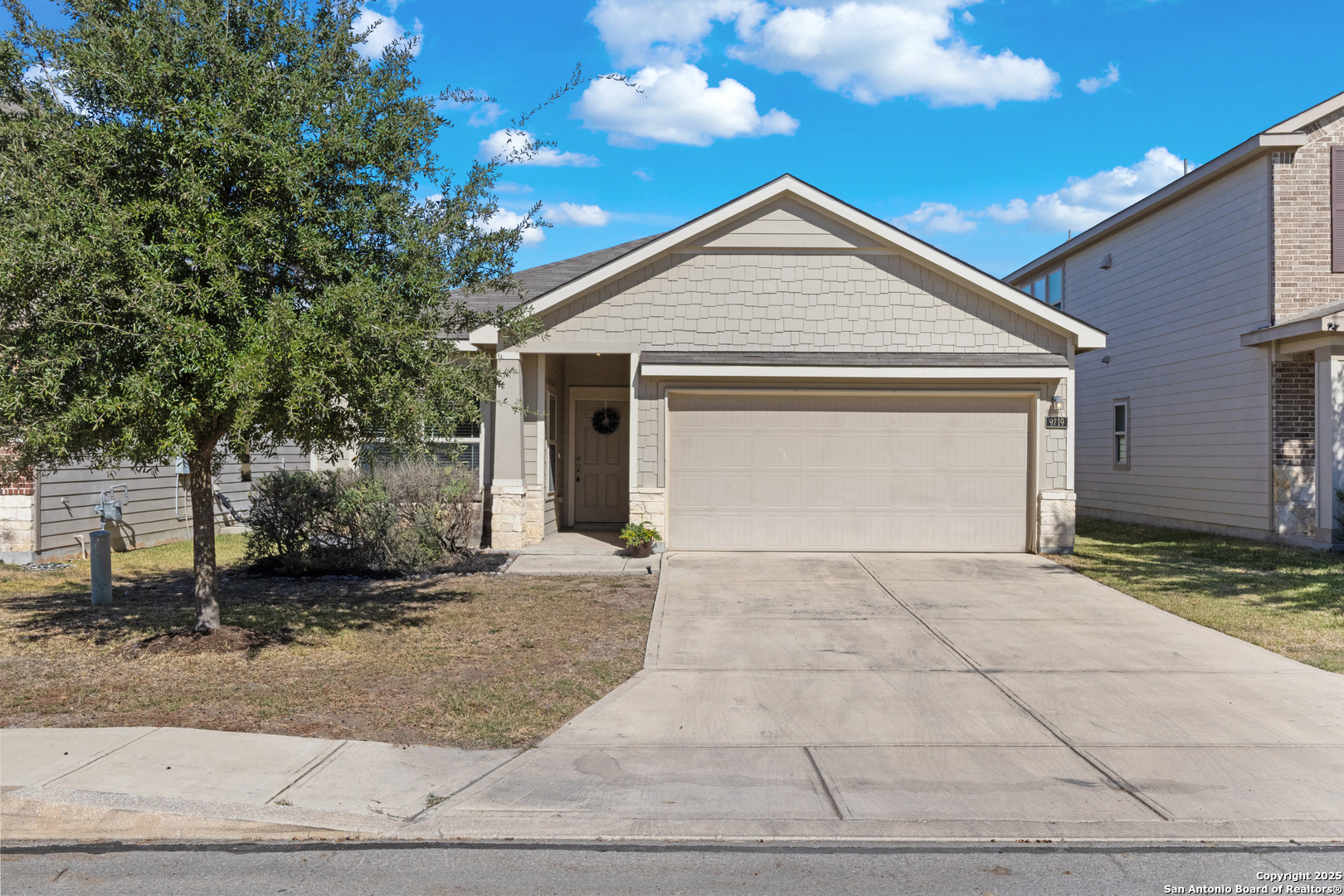 Welcome to this charming one-story San Antonio home and step inside to discover a warm, inviting layout featuring an open-concept kitchen with granite countertops, rich cabinetry, gas cooking, and a spacious island that flows seamlessly into the dining and living areas-perfect for entertaining. A front flex room with double doors offers the ideal space for a home office or sitting area. The primary suite provides a peaceful retreat with a private en-suite bath featuring a separate garden tub and walk-in shower. Two additional bedrooms and a second full bathroom round out the well-designed interior. Step outside to enjoy the covered back patio and a fully fenced yard ready for relaxation or gatherings. Added peace of mind comes with a roof that's just 2 years old and a brand new indoor A/C unit installed 1 year ago. Located near Loop 1604, Hwy 90, and Lackland AFB, this home combines comfort, efficiency, and location in one neat package.