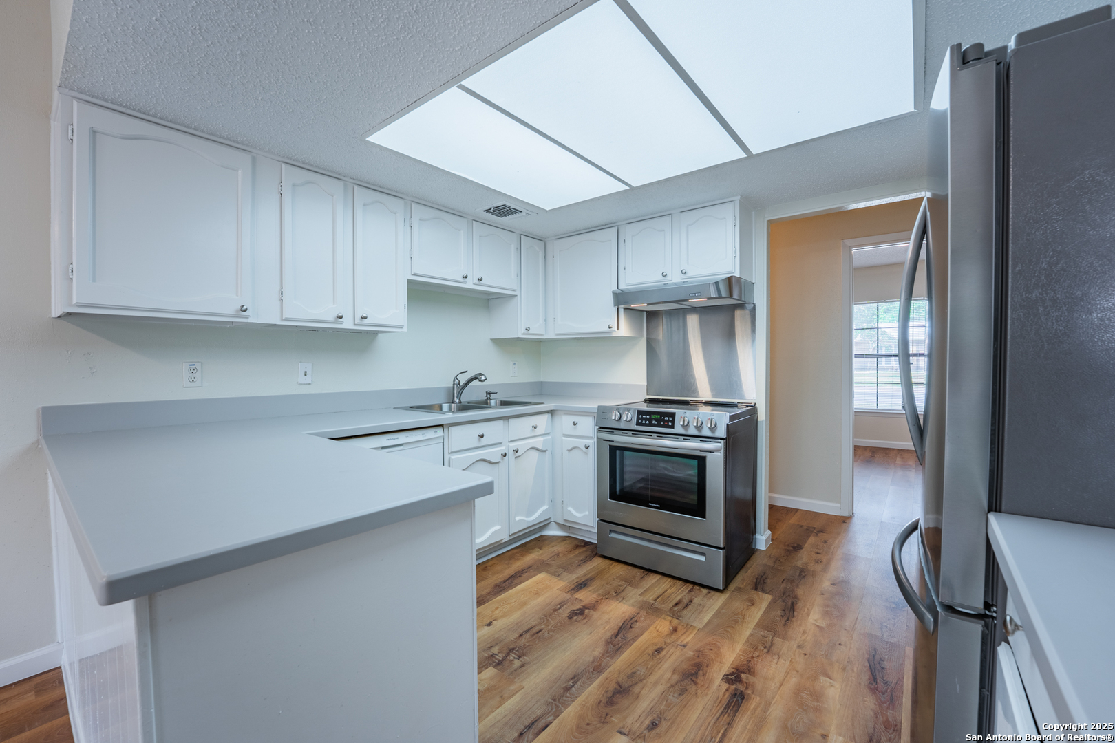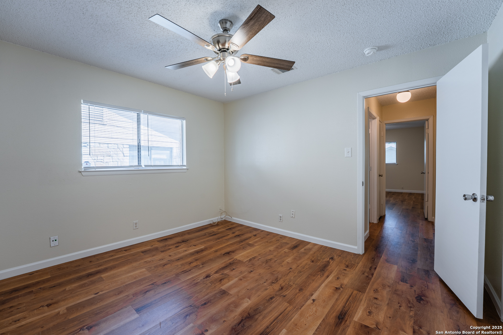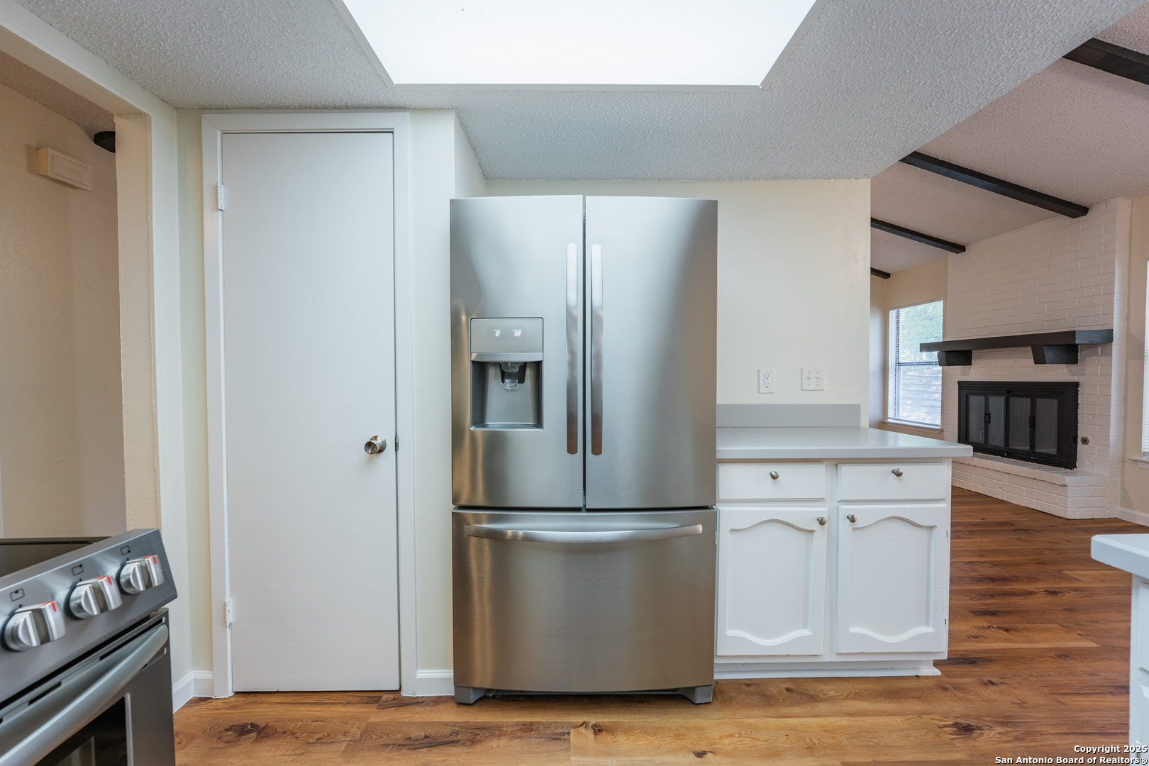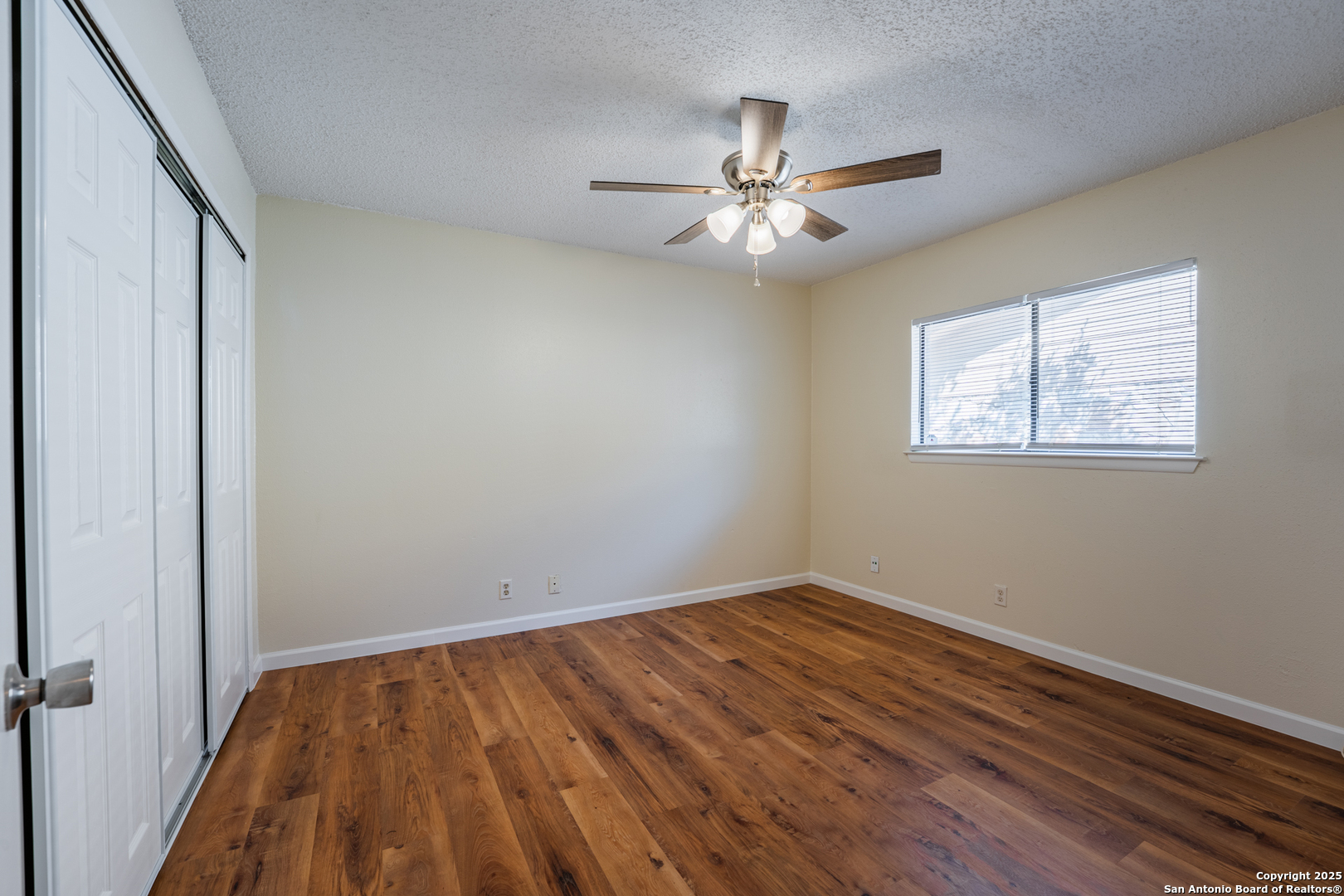 Tucked into a tree-lined neighborhood in Converse, this beautifully updated single-story home blends rustic charm with timeless Texas appeal. Step inside, and you're instantly welcomed by soaring vaulted ceilings and exposed wooden beams that bring warmth and character to both the living and dining areas. A classic gas brick fireplace anchors the living room with cozy charm. Brand new luxury vinyl plank flooring runs throughout the home, paired with fresh interior paint to create a clean, modern canvas that's ready for your personal touch. While the kitchen and living room are divided, the layout still maintains a comfortable sense of flow with the living room connecting to a casual dining area, and a second living or dining space just off the front entry, giving you the flexibility to make the home work for your lifestyle. Privately positioned on one side of the home, the primary bedroom offers a peaceful retreat, complete with those same vaulted ceilings and rustic beam details. The en-suite bath includes a shower-tub combo and space to relax. On the opposite side, you'll find two additional bedrooms and a second full bathroom - ideal for guests, a home office, or flexible living. Step outside, and the charm continues. The large backyard is shaded by mature trees and features a covered patio - perfect for weekend lounging, evening dinners, or quiet morning coffee. A full two-car garage provides plenty of room for parking or storage. And with no HOA, you'll enjoy the freedom to truly make this space your own. With nearby parks, shopping, dining, and entertainment - plus quick access to the city's major highways - this location keeps daily life easy and well-connected. If you're looking for a move-in-ready home that offers character, space, and flexibility - 9726 Cylburn Park is ready to welcome you.