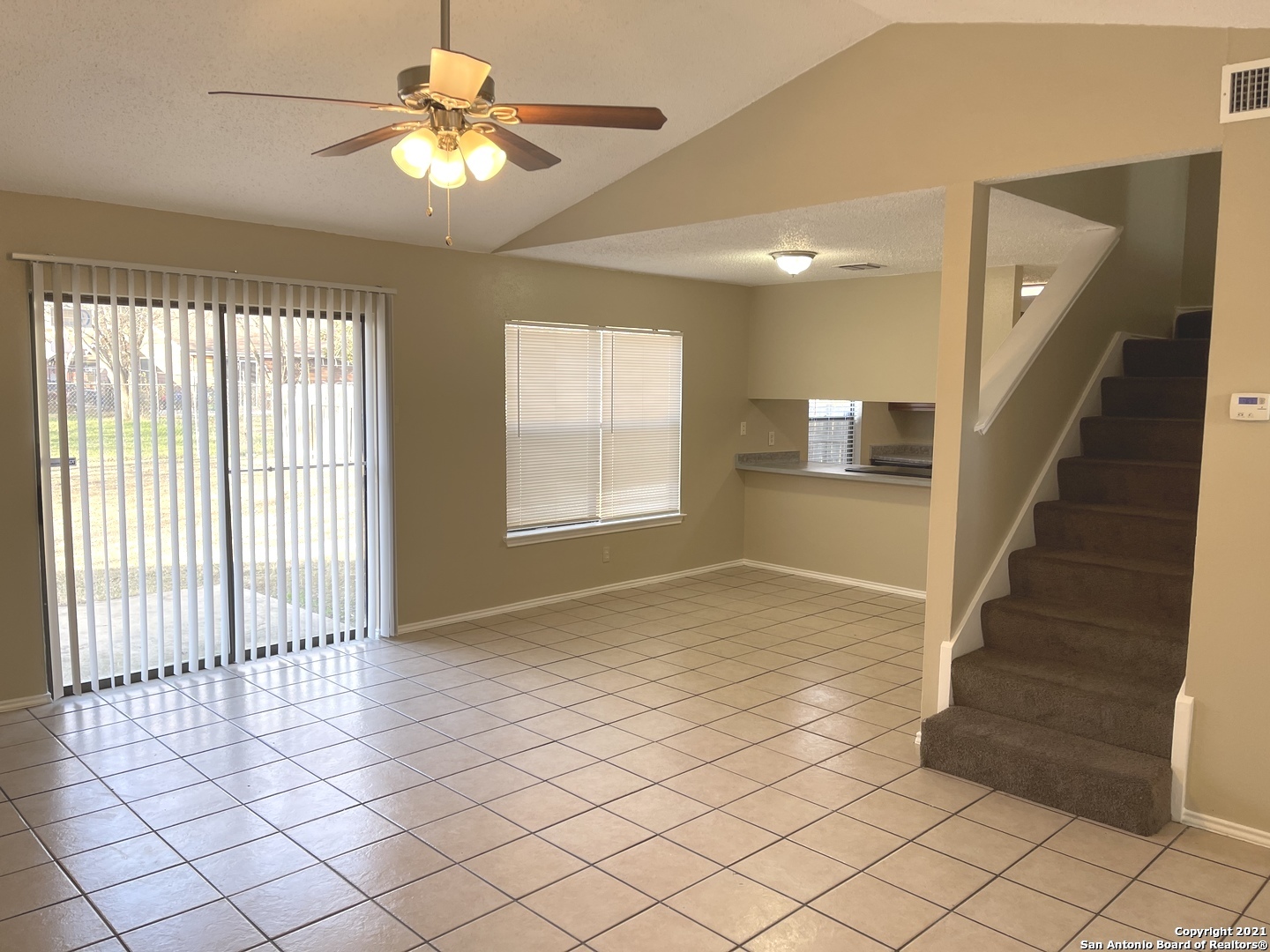 Come see this lovely 3 bedroom home with 2 1/2 bathrooms! Open the front door to a large inviting living room with a vaulted ceiling and a fireplace too. The large windows in the living room and adjoining dining area, accompanied with sliding glass door let in a lot of natural light. The galley kitchen has a new glass topped stove/oven, lots of counter space and a double sink with a garbage disposal. The laundry room is next to the kitchen and has a door that leads to the oversized 2 car garage. Upsta