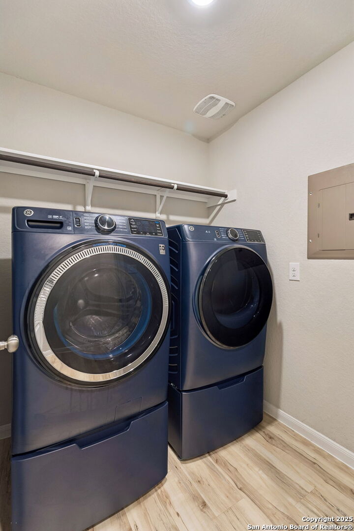 This home just works. Single-story living on a corner lot with a flexible bonus space you can shape around your life. The layout flows, the light feels right, and the washer, dryer, and refrigerator are already here. Garage workbench and shelving convey, and the home is equipped with a tankless water heater, water softener, and reverse osmosis system. Set in a master-planned community with parks, trails, and BBQ area with H-E-B, shopping, and daily essentials in the area. Move-in ready.