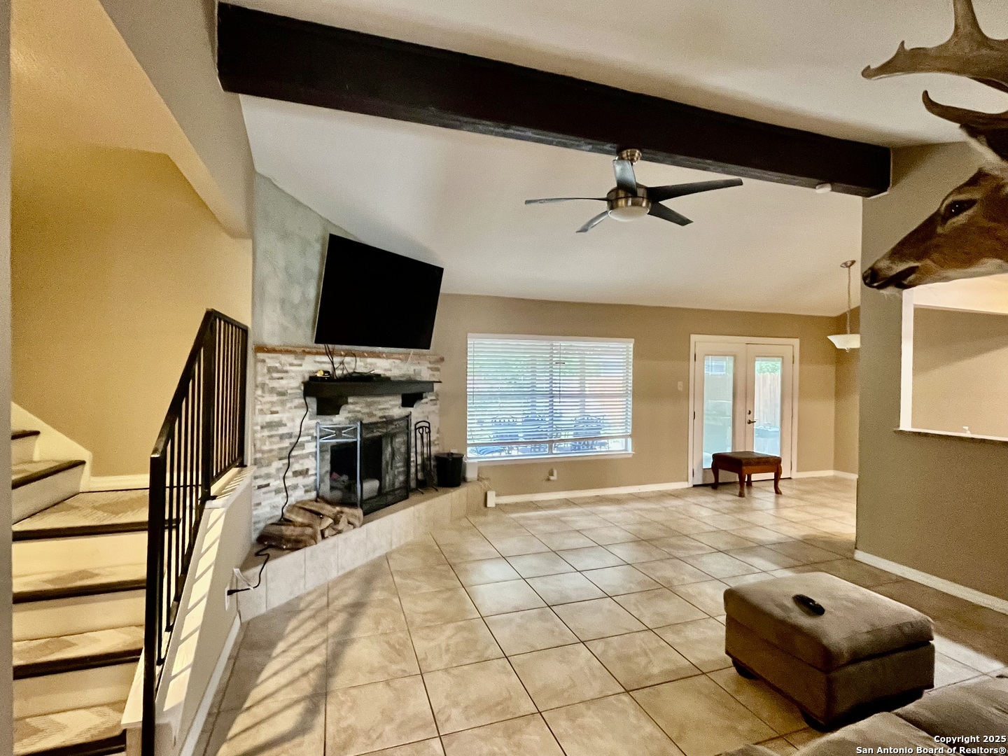 Discover the charm of this beautifully updated 3-bedroom, 2-story home nestled in the delightful Heritage Northwest subdivision of Bexar County. This residence boasts a versatile layout, featuring a primary suite and an office that can also serve as an additional bedroom on the ground floor. Upstairs, you'll find a spacious second living area or bonus space, ideal for family gatherings, a gym or a playroom. This home is strategically located near SeaWorld and Lackland Air Force Base, offering a perfect blend of suburban tranquility with urban accessibility. Enjoy the spacious backyard, ideal for outdoor activities or relaxation. Recent updates include a new AC and water heater installed in 2023, ensuring your comfort. Several valuable items convey to make your move-in seamless: refrigerator, exercise equipment, two televisions, fireplace accessories, patio furniture, and a grill. Don't miss the opportunity to make this your dream home. Come take a look today!