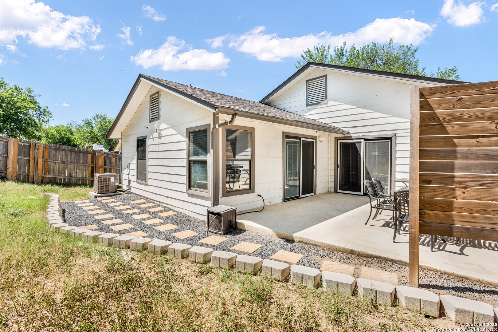 Step into this beautifully updated 3 Bed 2 Bath home featuring a bright, open-concept layout filled with natural light. The spacious primary bedroom includes sliding doors that open directly to the patio-perfect for family cookouts or simply relaxing outdoors. The primary bathroom offers a spa-like experience with a deep soaking tub and separate shower, allowing you to unwind your way. Major updates have already been handled: a brand-new A/C unit (inside and out), a roof just a few years old, and recently updated sliding doors, windows, and patio. Additional features include gravel pavers and fresh paint in the kitchen and living areas. Ideally located just minutes from Duck Pond Park, shopping centers, restaurants, HEB Plus, and Costco, this home offers the perfect blend of comfort, convenience, and charm. Don't miss your opportunity to tour this inviting, move-in ready property. Fridge, Washer, Dryer, Vivant system, back room TV is negotiable with an acceptable offer. Living room TV and accessories to it will not convey. 5k buyer incentive with an acceptable offer.