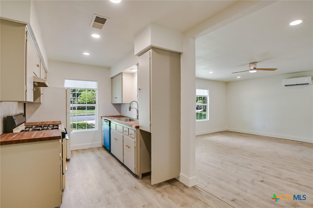 Location, location, location! This wonderful single story, 3 bedroom 2 bath home is situated close to IH 35, Hwy 183, Hwy 290 and the 130 tollway. Near shopping, retail, medical and hospitals. Oversized backyard with a concrete pad ready for an additional living area or workshop. Nice size patio for BBQs or morning coffees. Additional interior living area with an HVAC splitter would make a great family or media room. Kitchen includes subway tile backsplash, butcher block countertops, stainless steel single bowl sink and stainless steel dishwasher. Both primary and secondary bathrooms have been updated to include walk in showers. Large oversized laundry with space for an office, craft room or work out area.