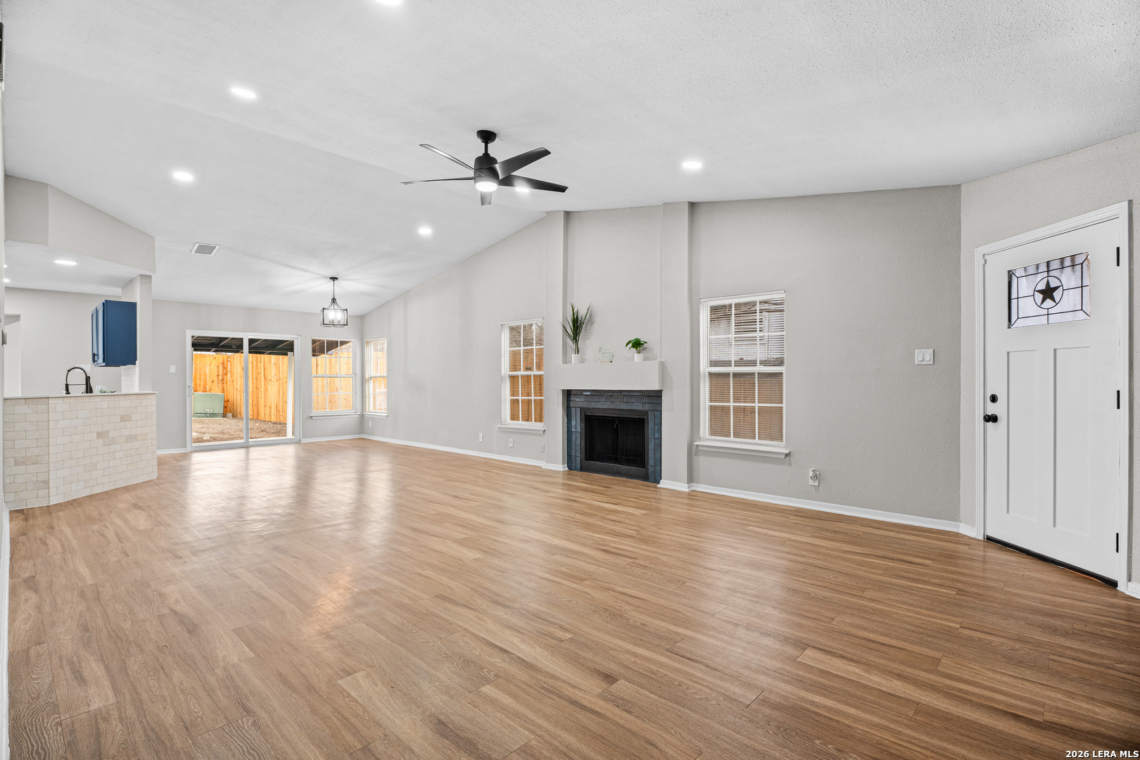 Beautifully updated 3-bedroom, 2-bath home offering 1,867 sq ft in a quiet Converse neighborhood just a few blocks from Miller's Point Elementary. Features include a new roof, fresh interior & exterior paint, luxury vinyl plank flooring, recessed can lighting on dimmers in the living room, kitchen, & primary bedroom, updated fixtures throughout. The kitchen features quartz countertops, a custom backsplash, & brand-new stainless steel appliances. The oversized primary suite includes a walk-in closet & an impressive primary bath with quartz countertops, a large double-sink vanity, extra storage, lighted mirrors, & both bathrooms feature stunning blue tile shower/tub combinations with new fixtures and new toilets. Enjoy the covered back patio, new privacy fence, & new sidewalk. Conveniently located near Live Oak, I-35, Randolph AFB, shopping, dining, and parks. Move-in ready and a must-see!