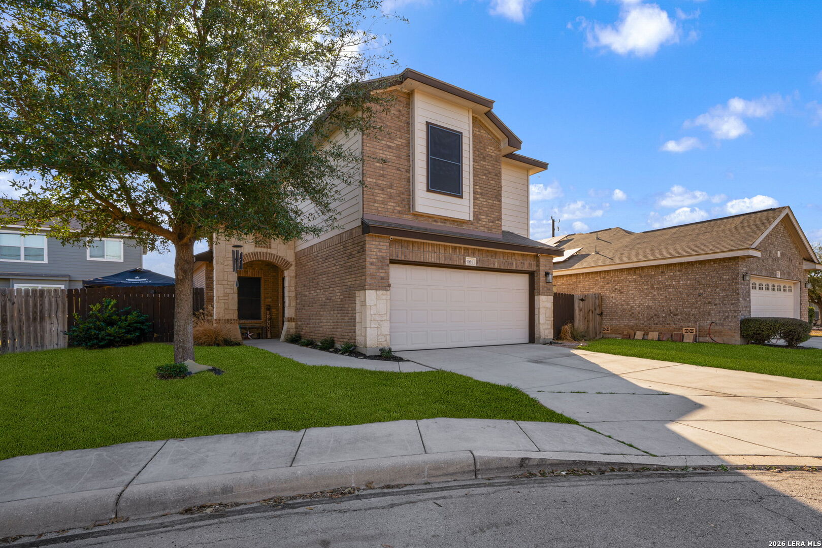 Welcome to comfortable Hill Country living in the established community of Braunridge. Built in 2012 and thoughtfully designed for everyday functionality, this two story home offers approximately 1,450 square feet of well planned living space with three bedrooms and two and a half baths, all nestled on a quiet cul de sac lot. The main level features an open floor plan with a spacious living area that flows seamlessly into the eat in kitchen and breakfast space, creating an ideal setting for both daily living and casual entertaining. The kitchen is equipped with solid countertops, an island with breakfast bar seating, ample cabinetry, and convenient access to the covered patio for effortless indoor outdoor living. A generously sized primary suite complete with a walk in closet and full bath with expansive shower. An upstairs laundry room adds practical convenience, and thoughtful features such as ceiling fans, solar screens, a sprinkler system, privacy fencing, and a water softener enhance comfort and efficiency. Ideally located with easy access to Loop 1604, this home offers quick connectivity to shopping, dining, and entertainment in Helotes. Residents enjoy neighborhood jogging trails and proximity to top rated schools within Northside Independent School District, including O'Connor High School. This home presents an excellent opportunity to enjoy a well maintained property in a convenient, established community with strong long term value and accessibility.