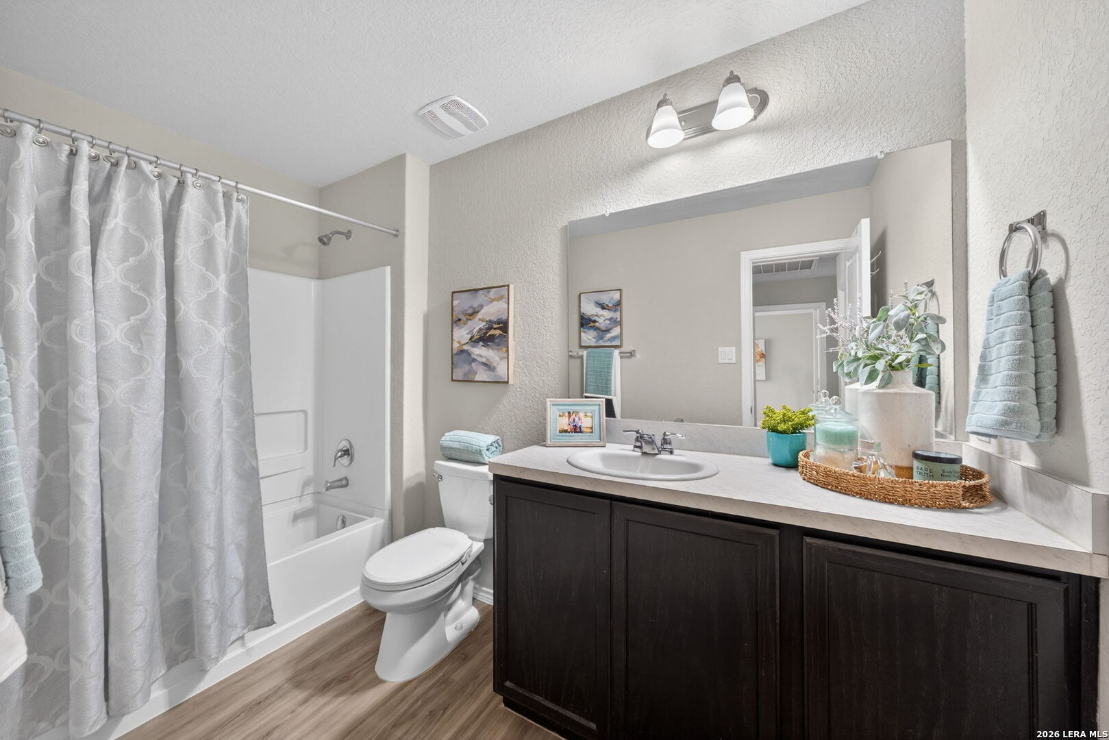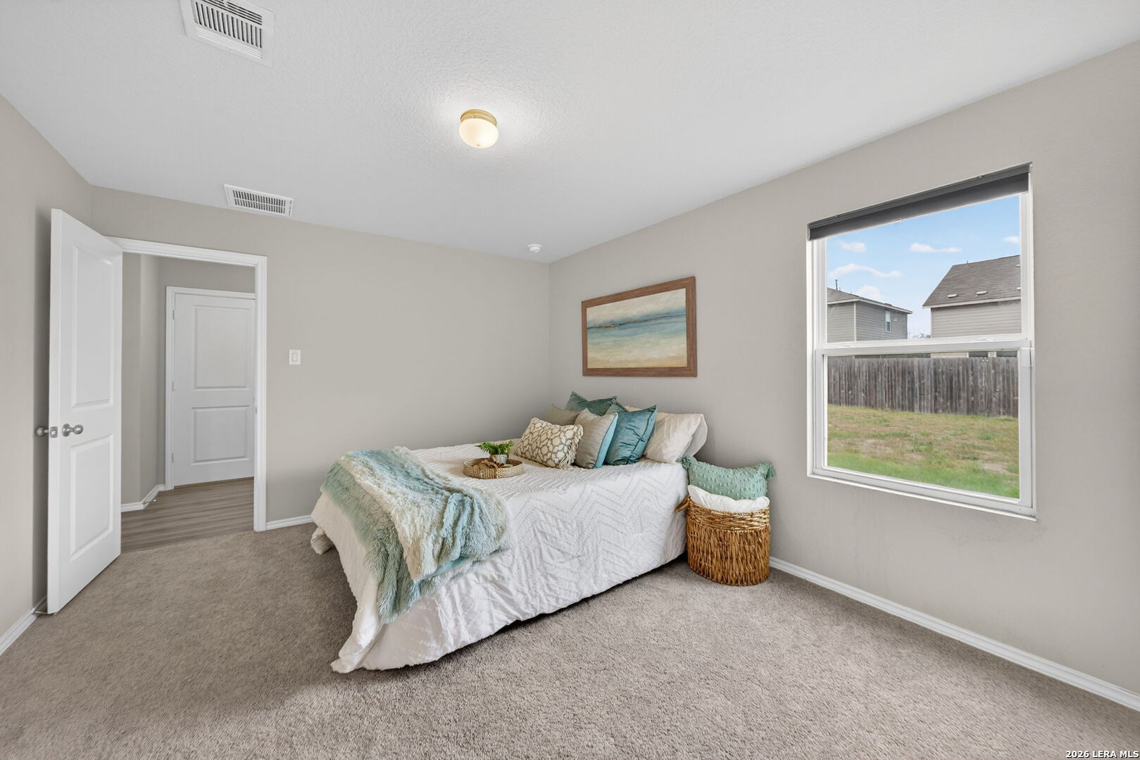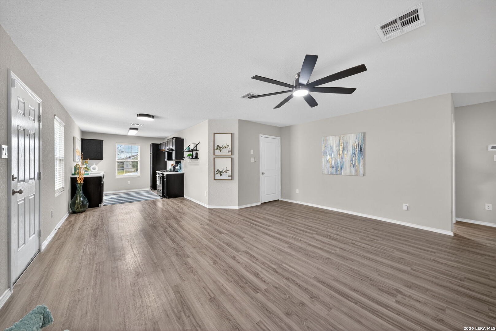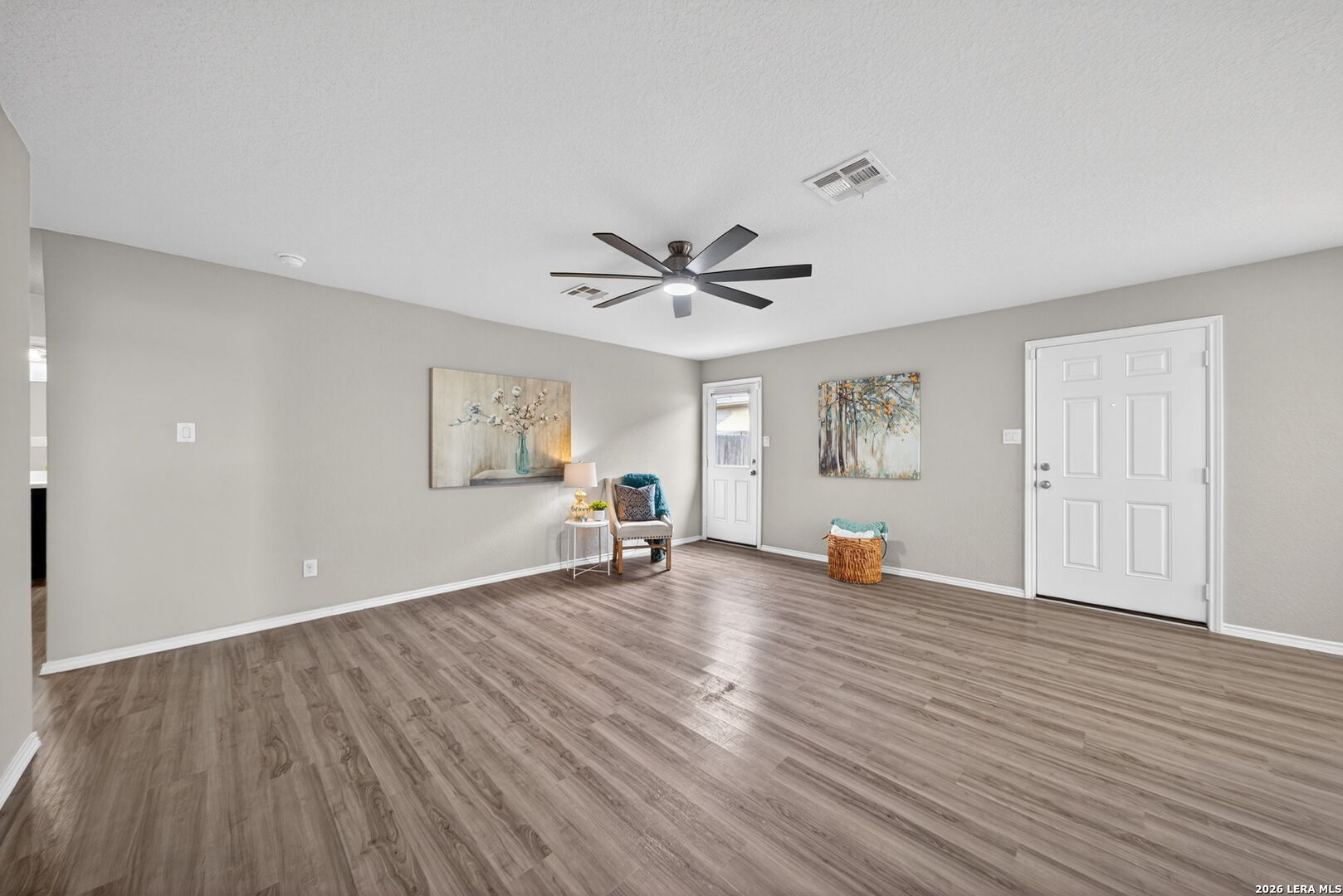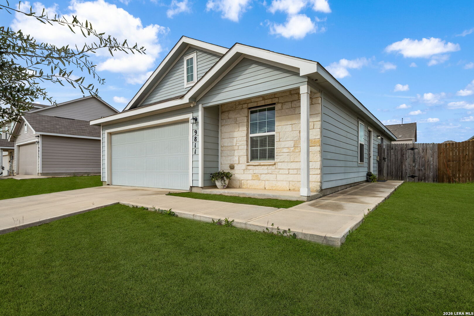 This like-new, single-story starter home is truly move-in ready and thoughtfully updated for modern living. Recent improvements include brand-new bedroom carpet (2025), updated lighting and ceiling fans in the kitchen and living areas, and a garage door opener with battery backup for added peace of mind. The home offers desirable gas features throughout, including a tankless water heater for endless hot water, gas central heating, and gas cooking. Energy efficiency is enhanced with radiant barrier in the attic with pull-down stairs, while a Ring Alarm Security System adds everyday convenience and security. Both bedrooms feature walk-in closets, and the open-concept living area flows seamlessly into the kitchen, creating a bright and welcoming space. The oversized backyard-larger than most in the neighborhood-provides plenty of room to relax, play, or entertain. USDA financing is available with NO DOWN PAYMENT for qualified buyers. Ideally located inside Loop 1604 with no city taxes, this home is just minutes from Lackland AFB, shopping, and dining, offering exceptional value and convenience. Come take a look today!